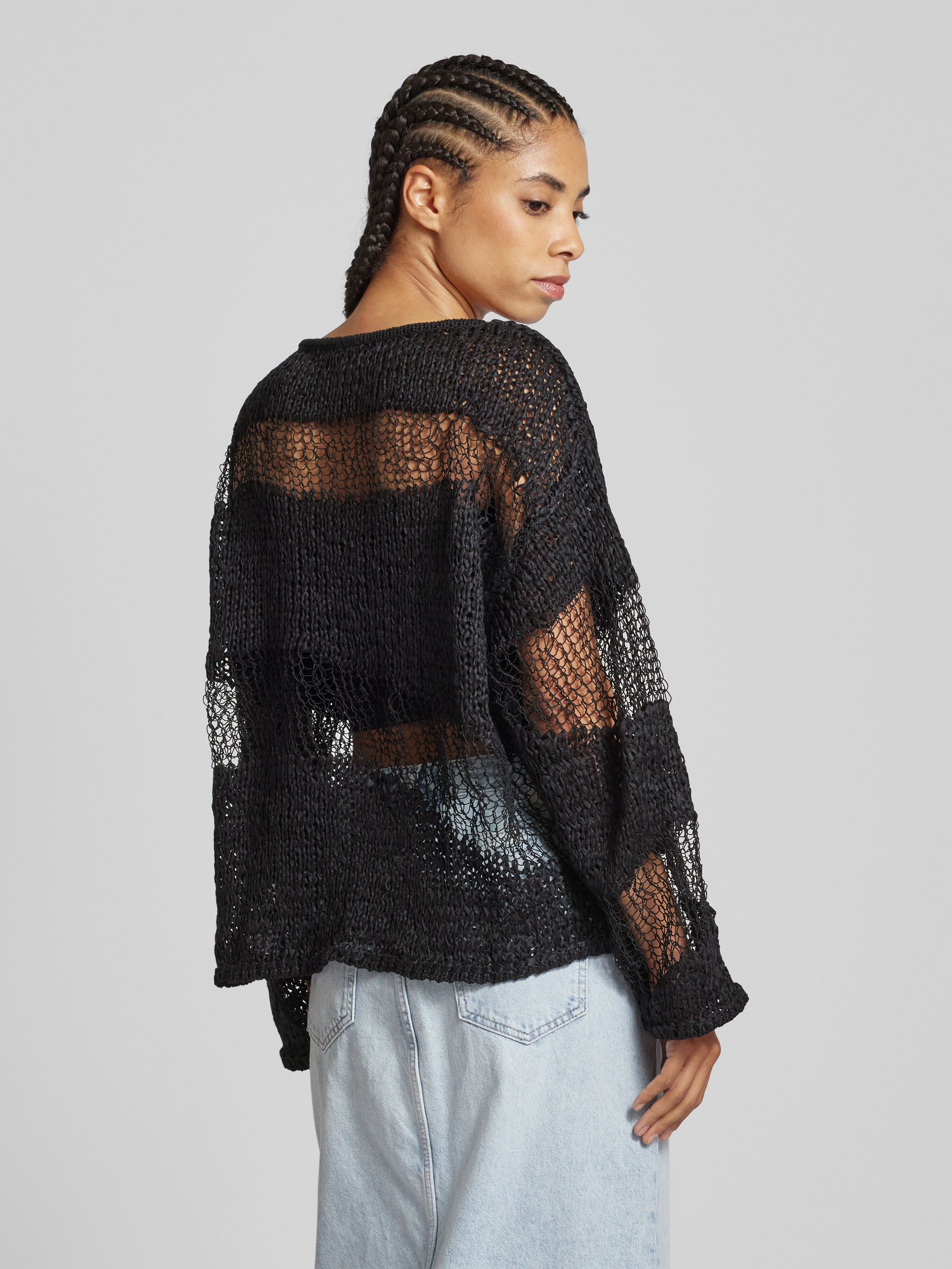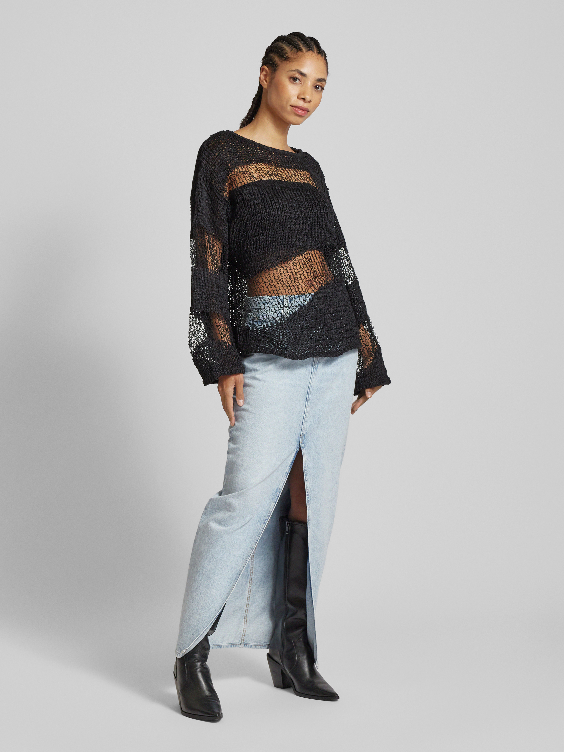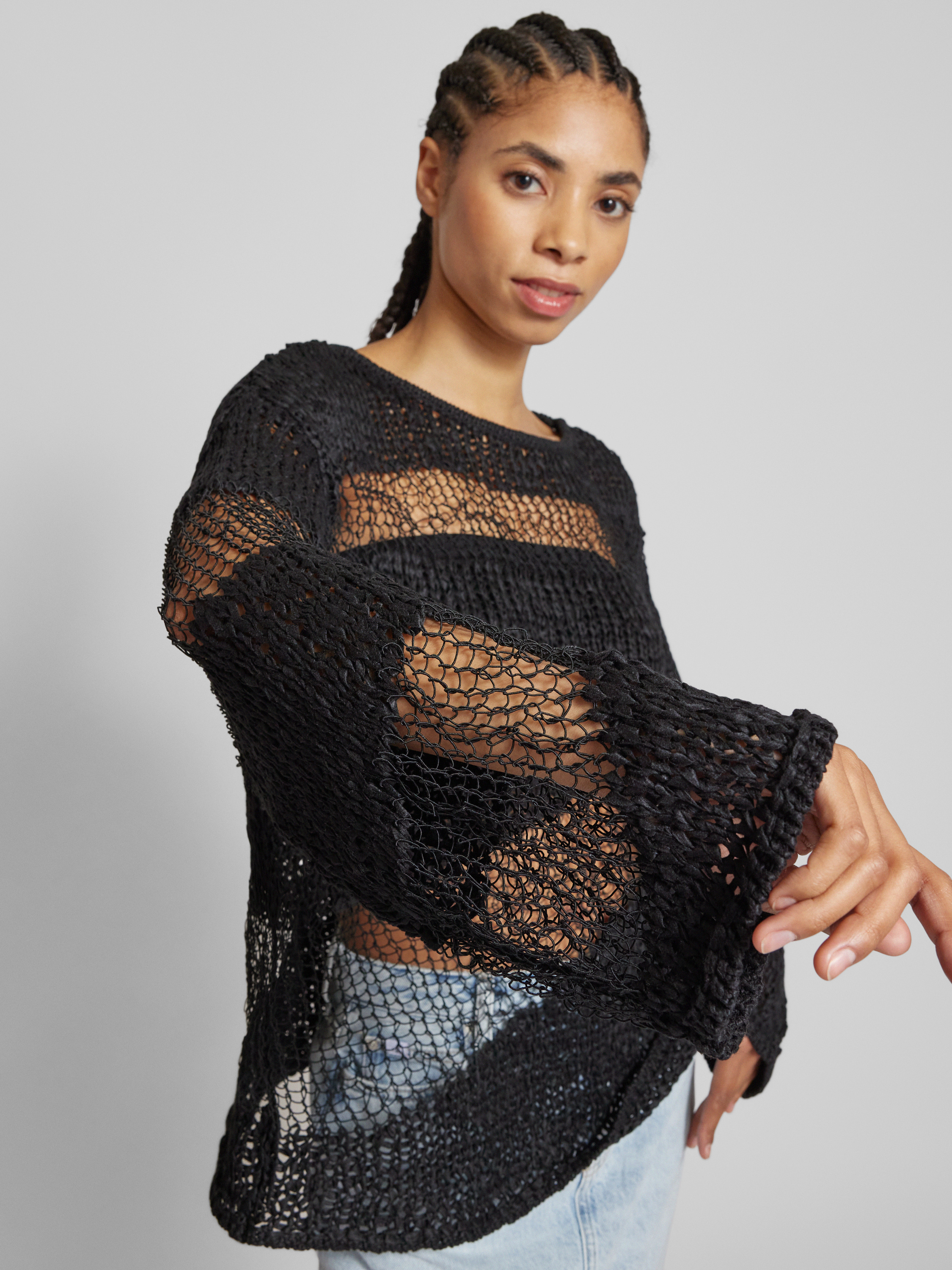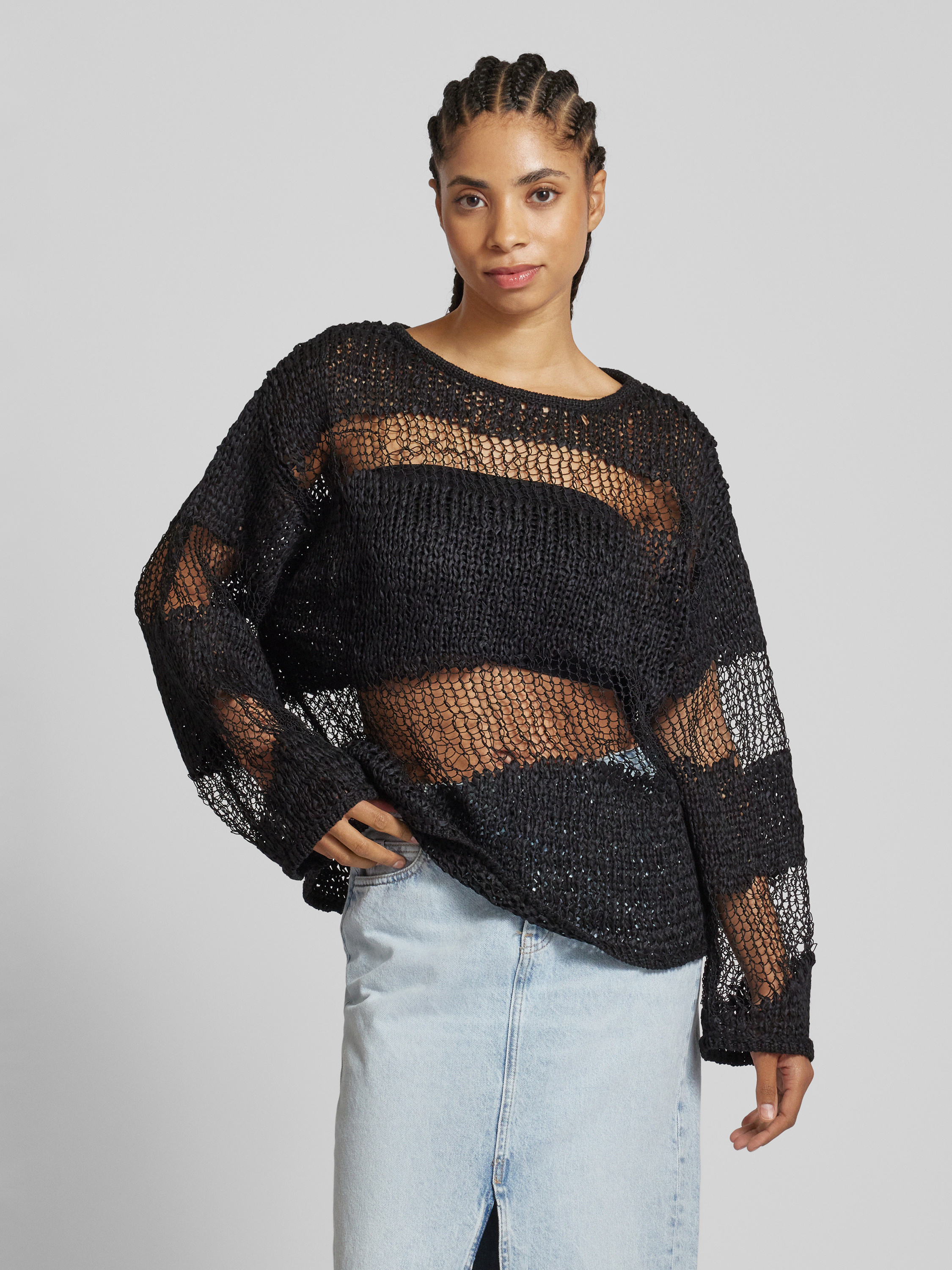 Sweter z dzianiny o luźnym kroju model ‘Frantje’ - czarny