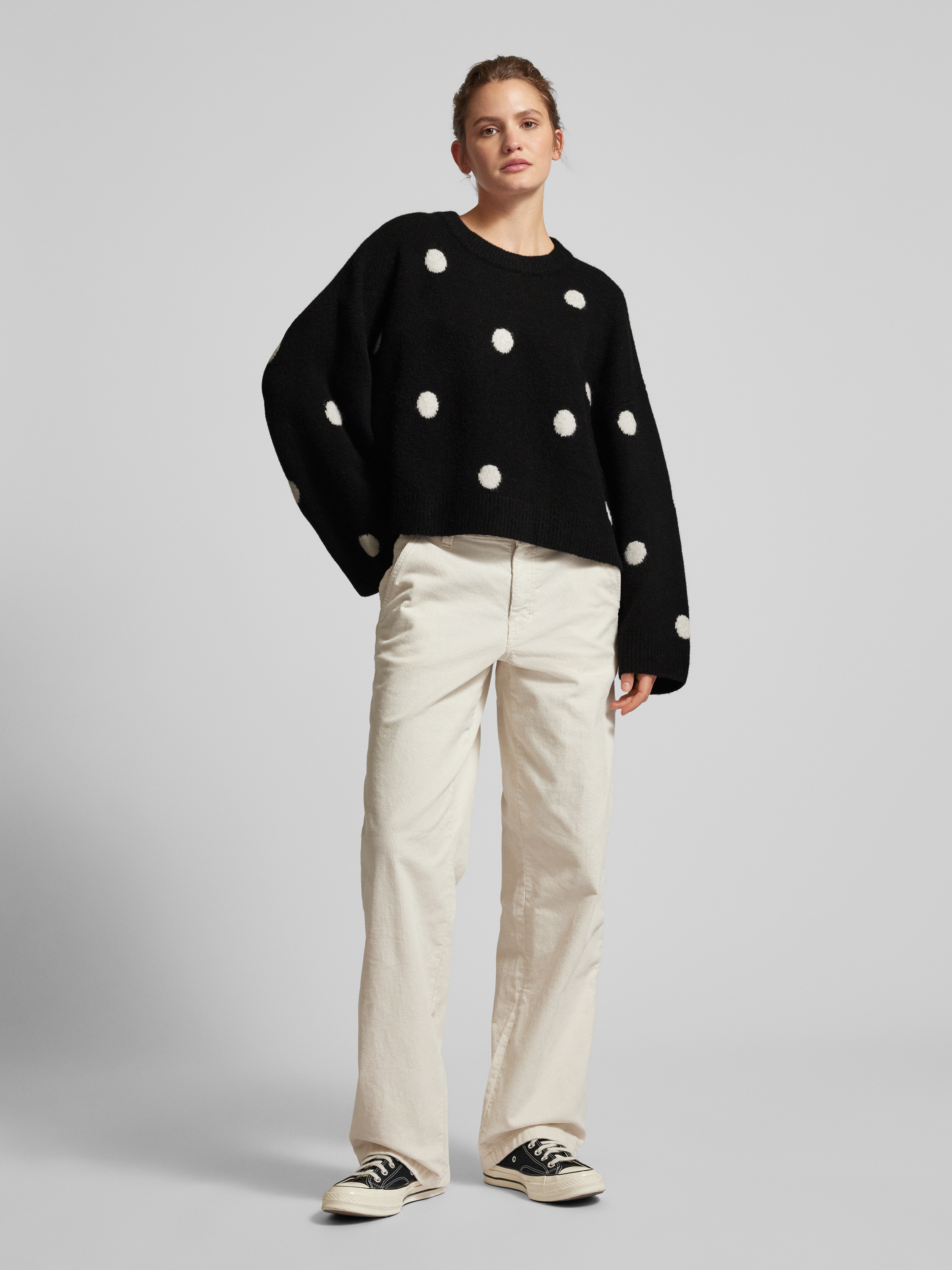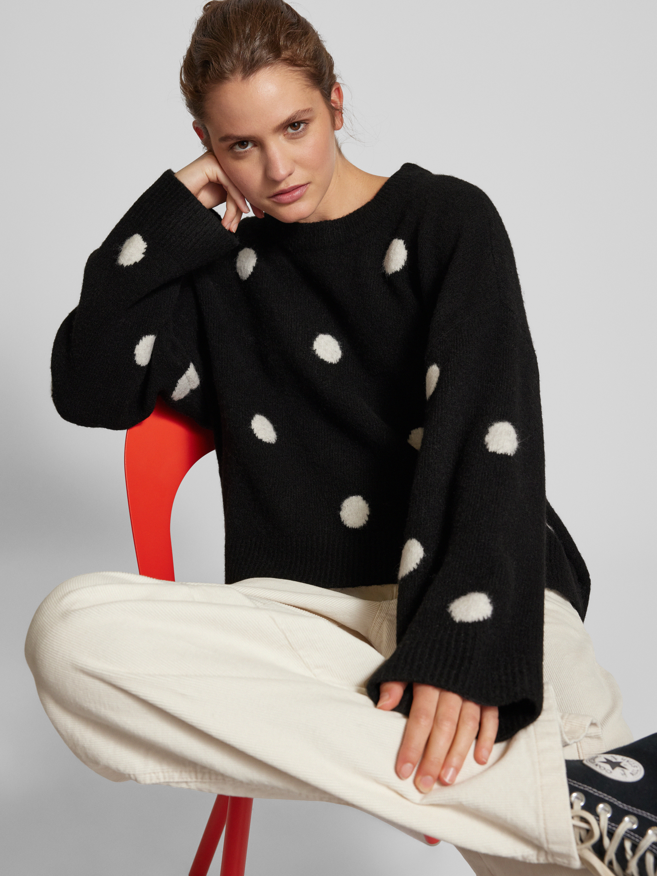 Sweter z dzianiny z obniżonymi ramionami model ‘Floriane’ - czarny