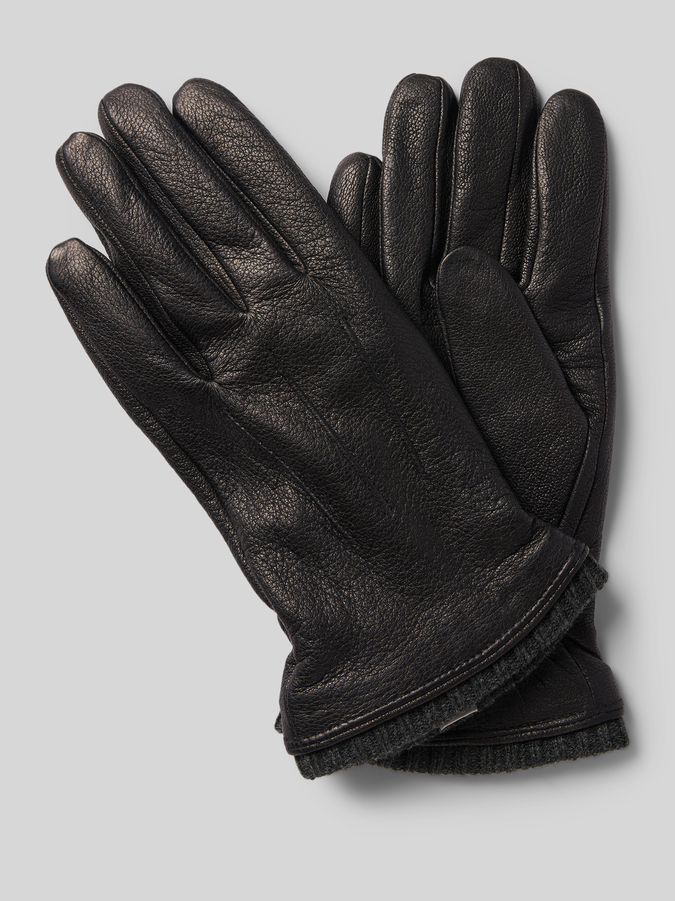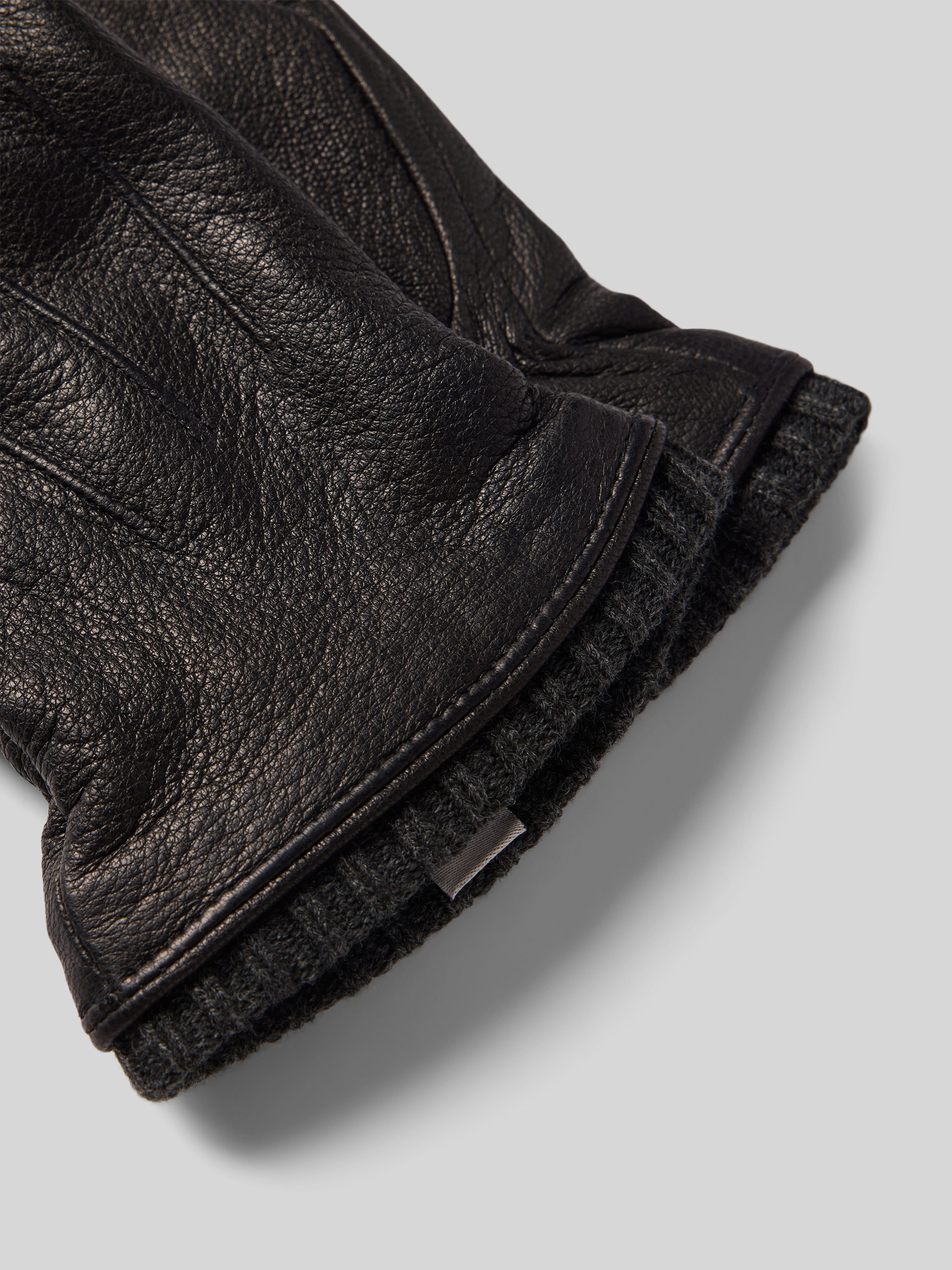 Rękawiczki z koziej skóry z rękawiczkami bez palców z dzianiny - czarny