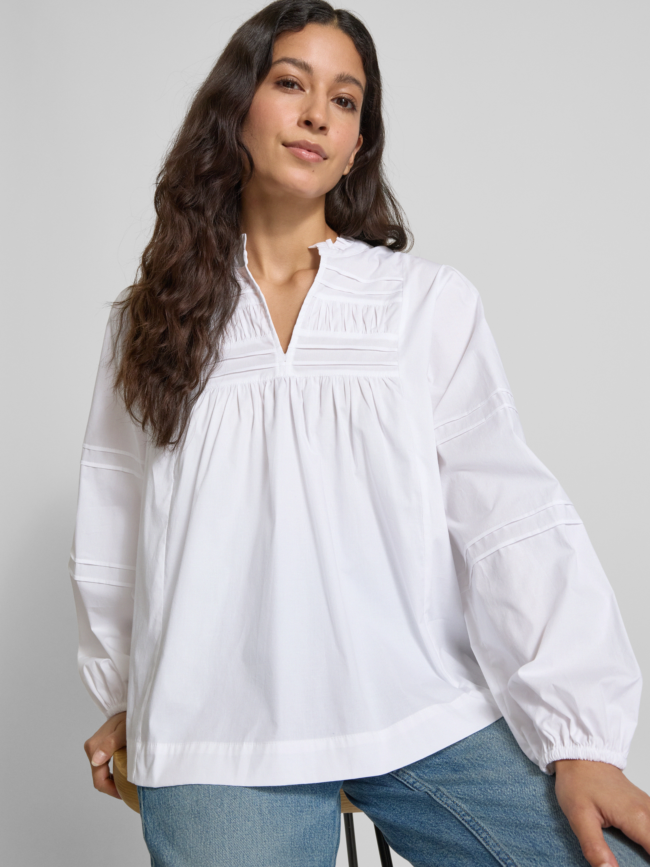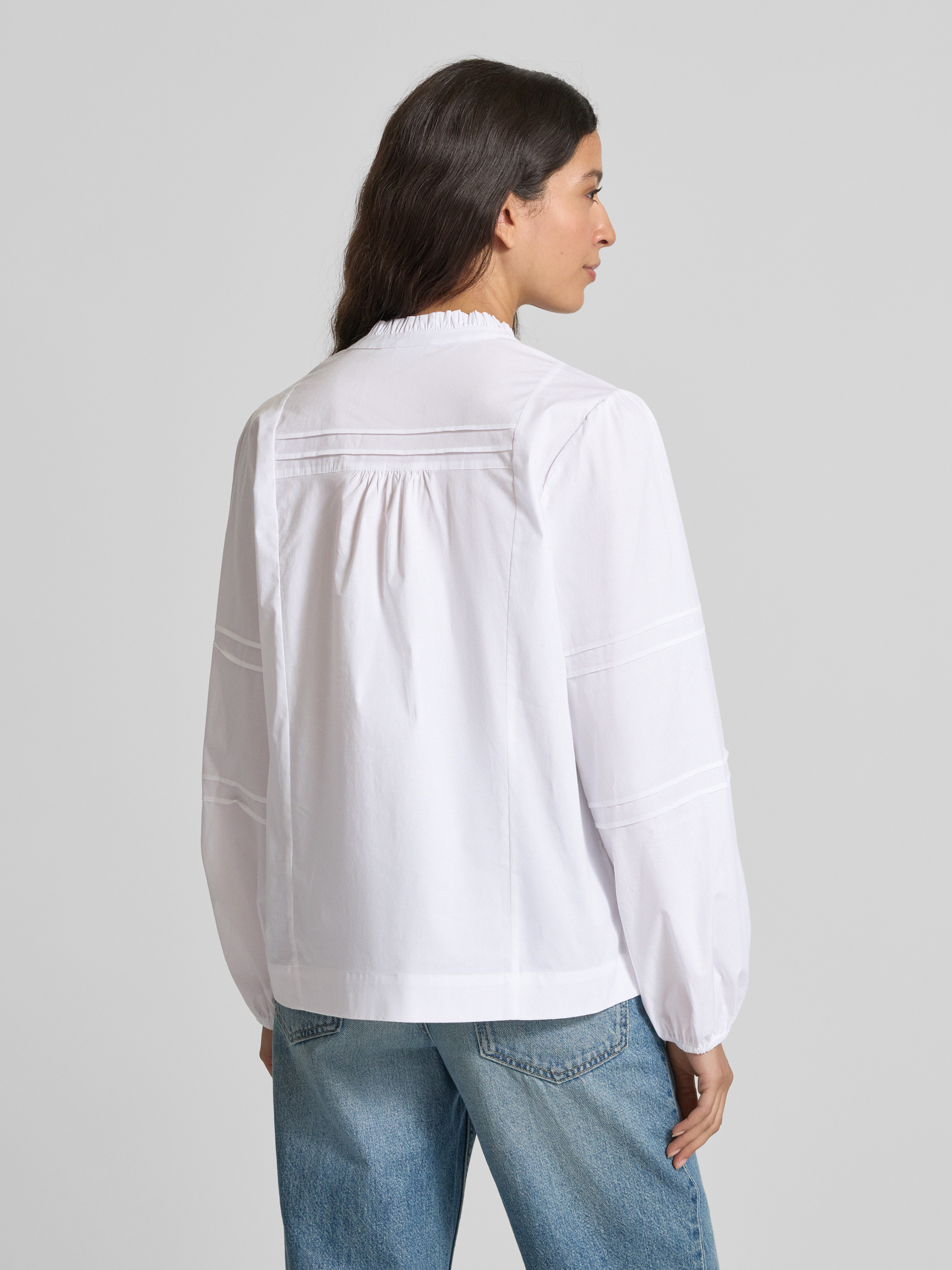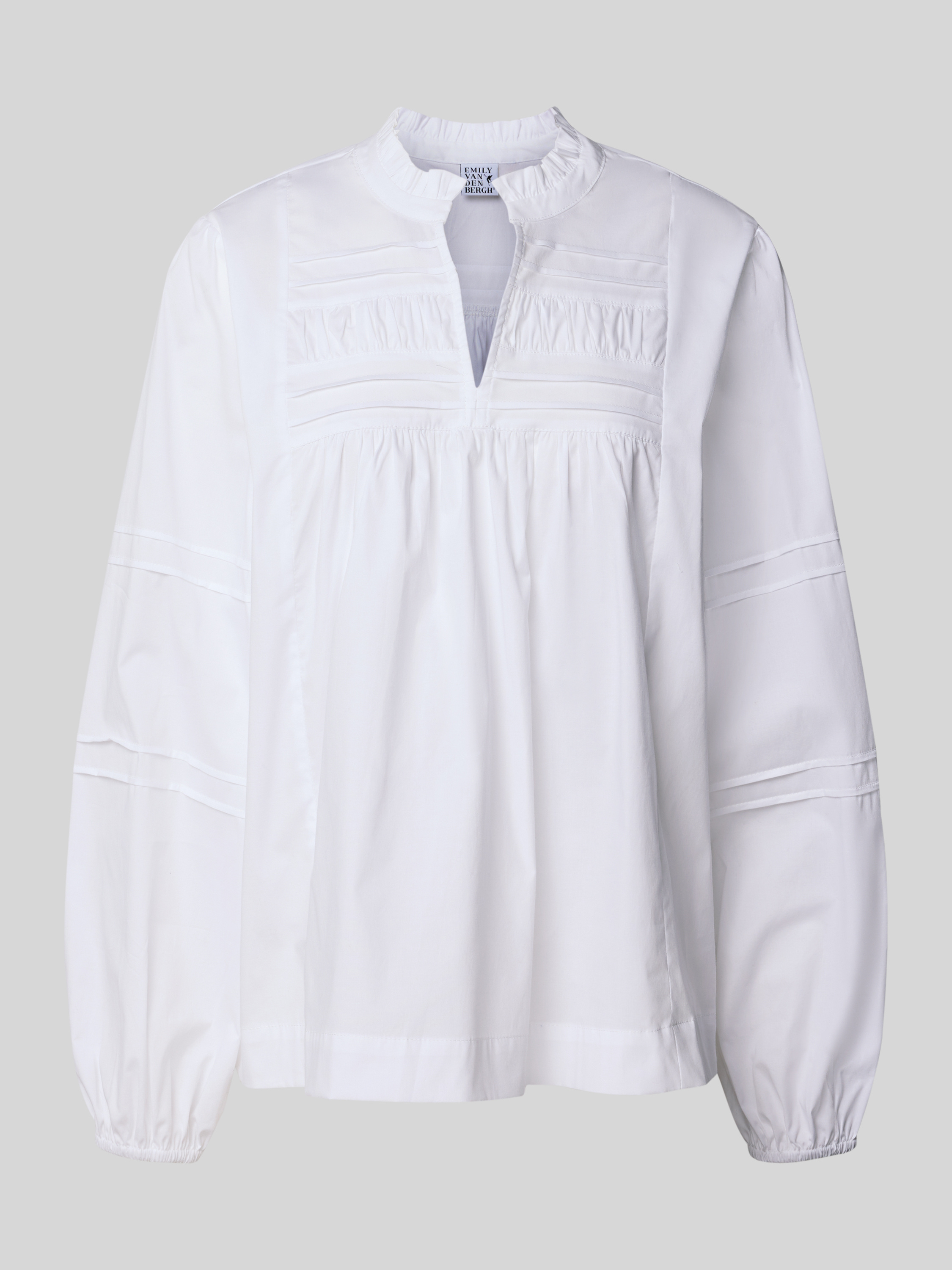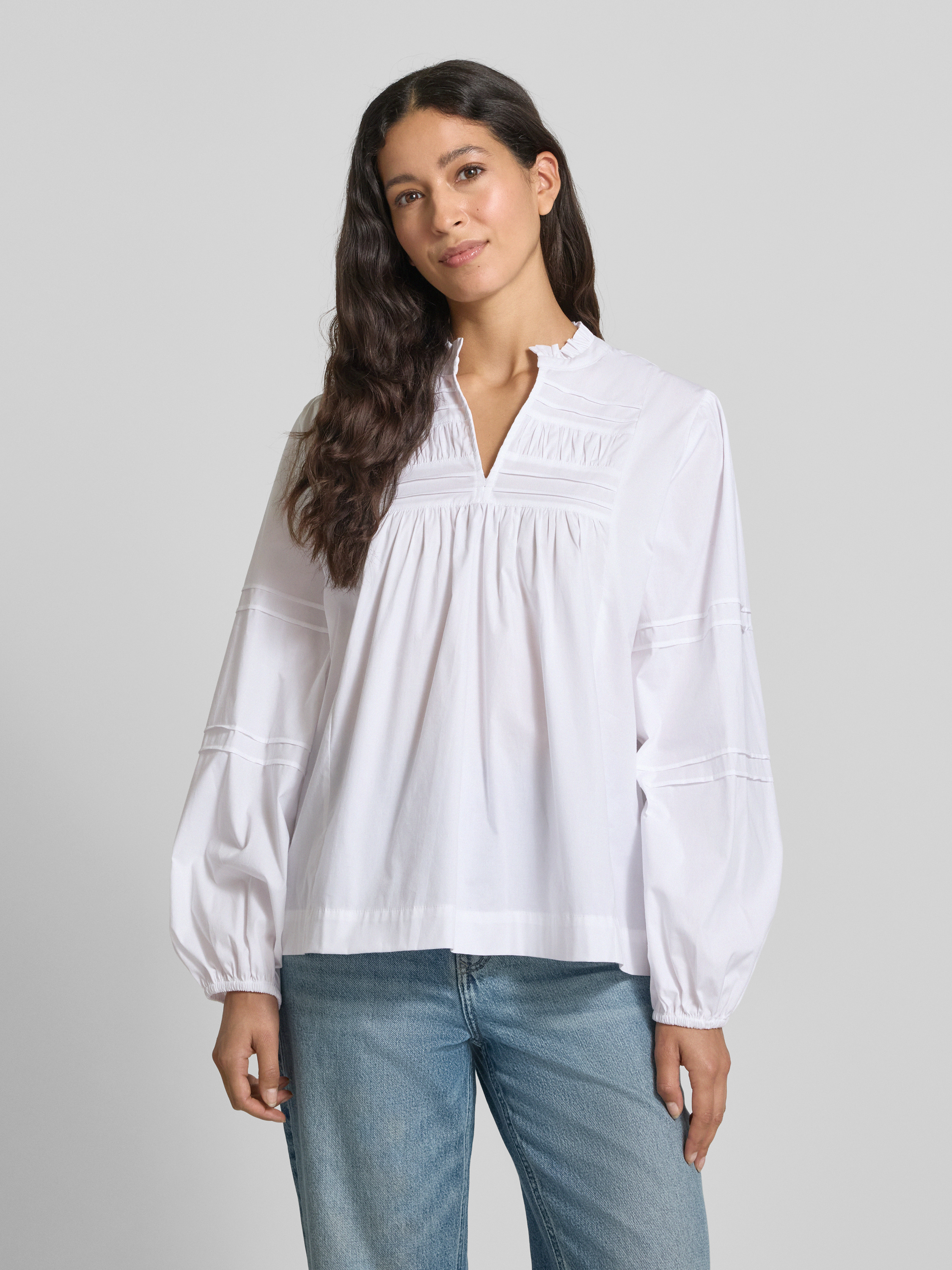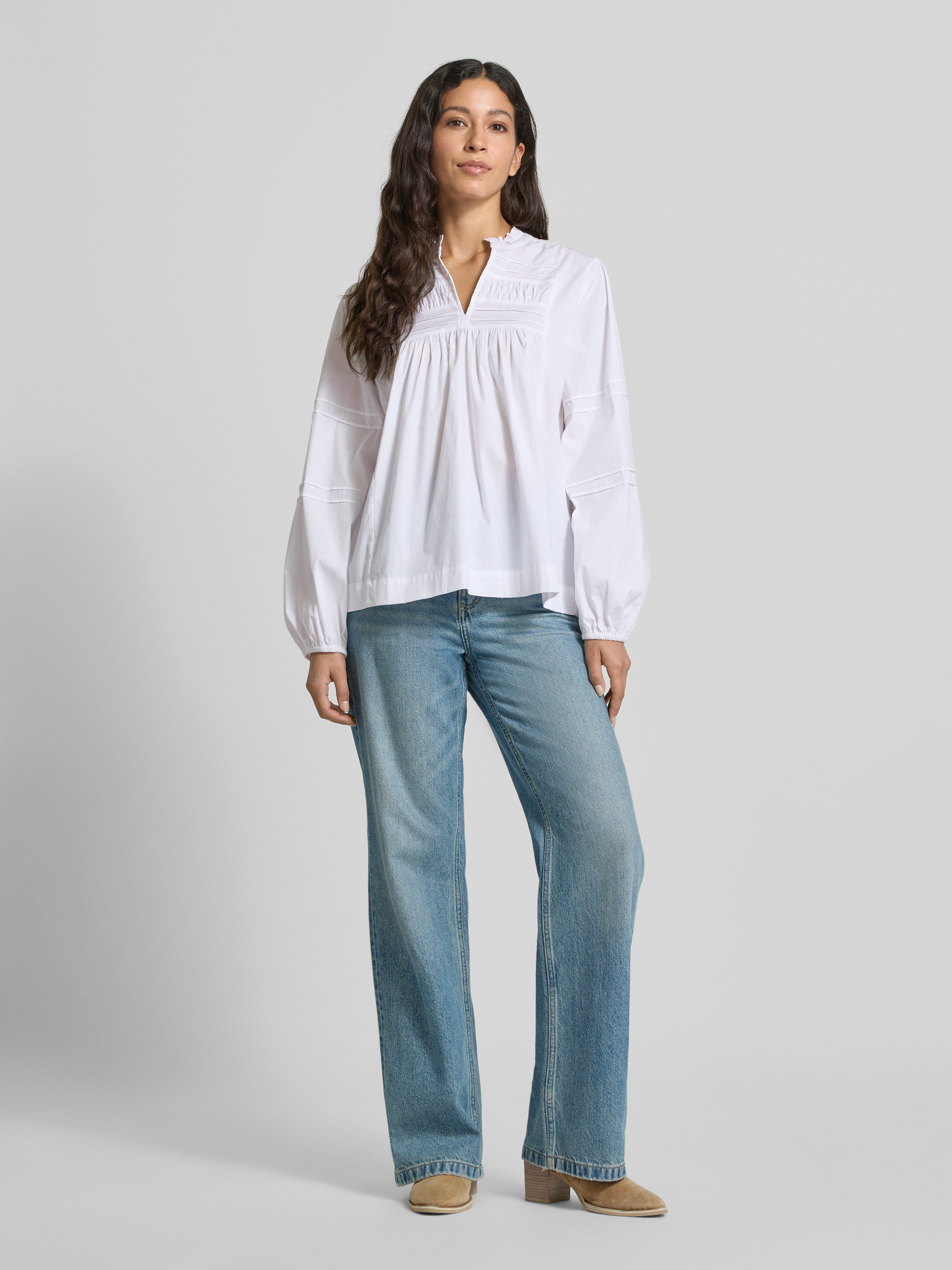 Bluzka o kroju regular fit z kołnierzem z lamówką - biały