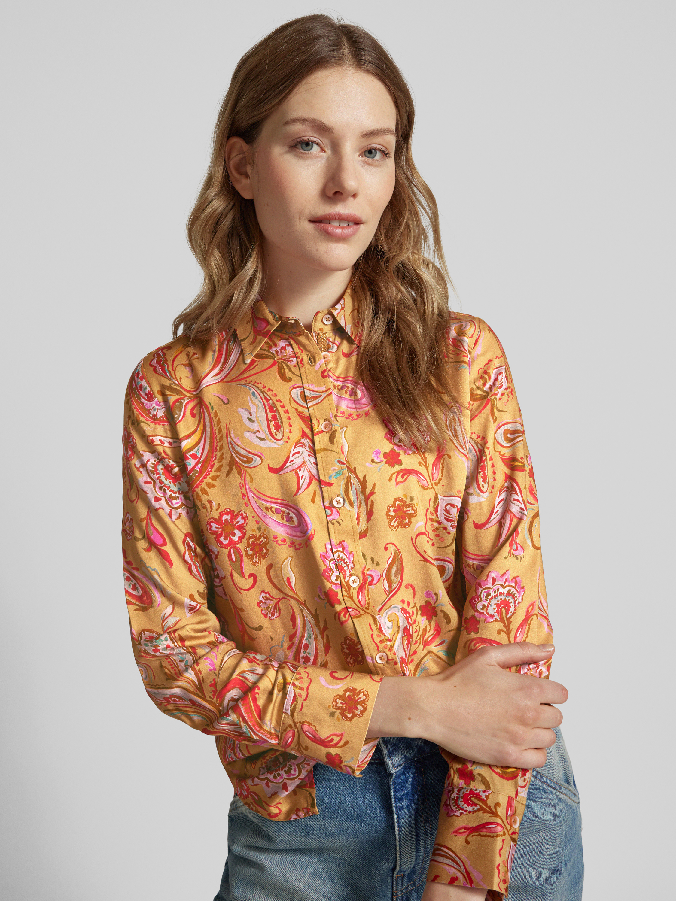 Bluzka o kroju regular fit z kołnierzykiem koszulowym - beżowy