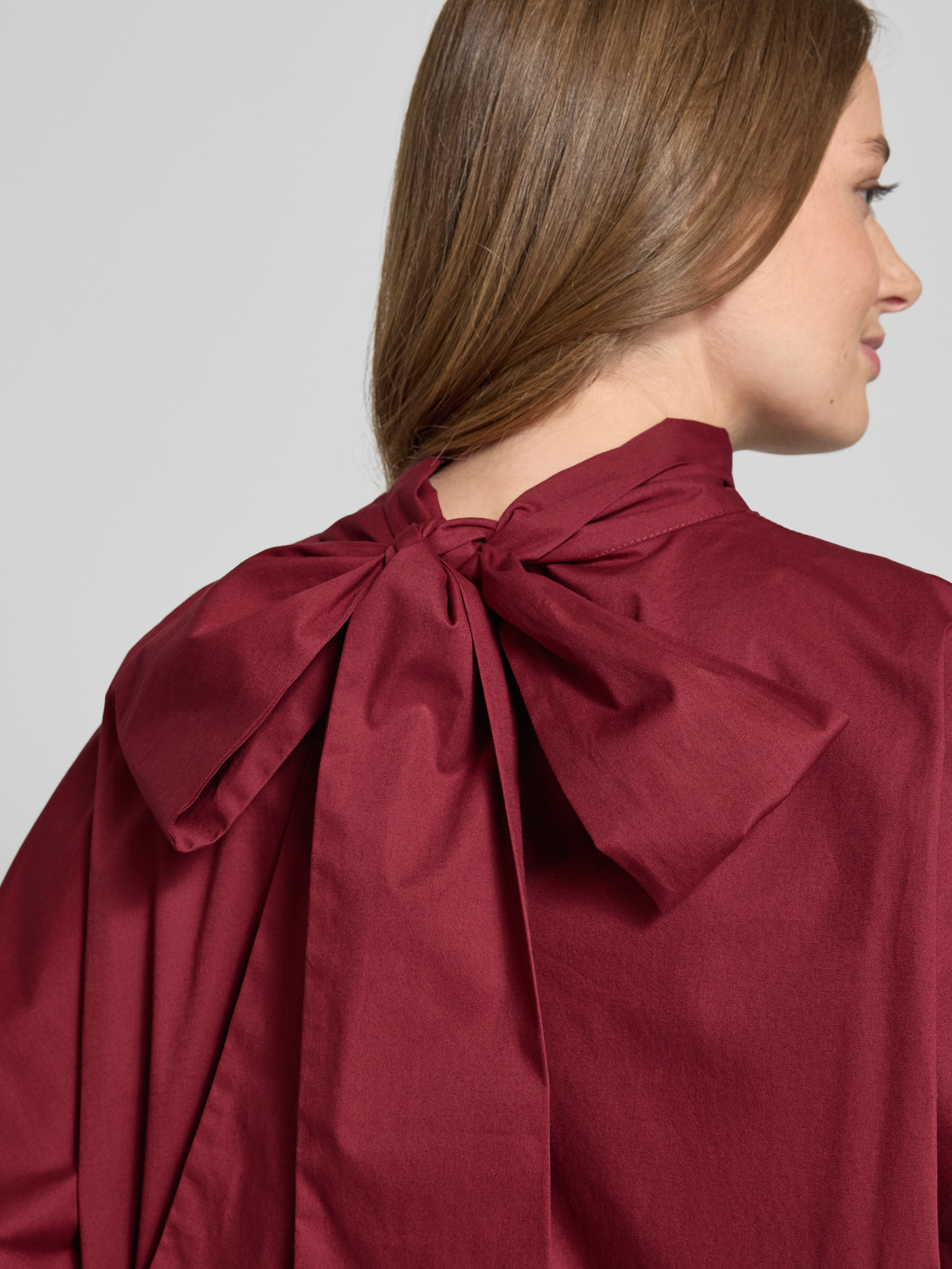 Bluzka o kroju regular fit z wiązaniem pod szyją i rękawem o dł. 1/2 - bordowy