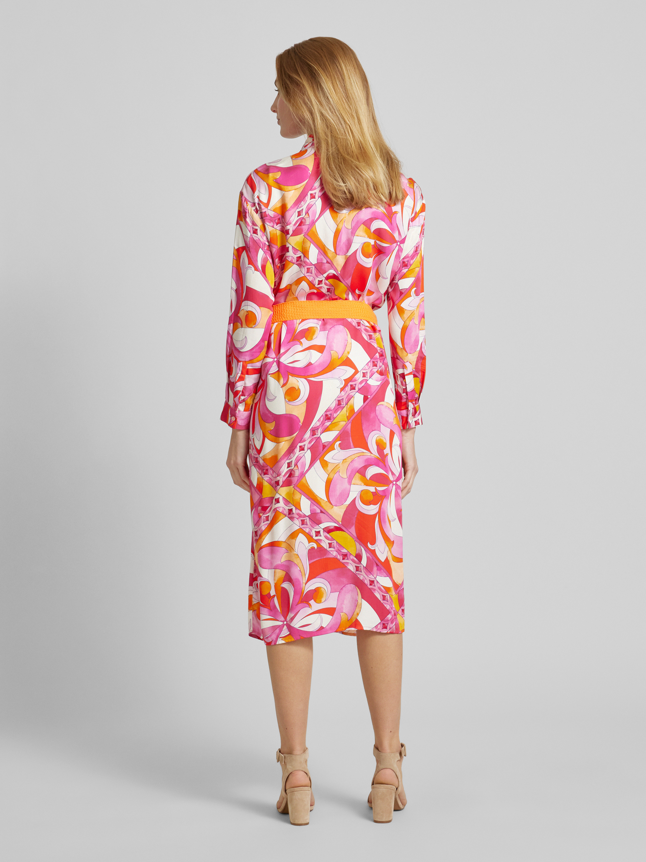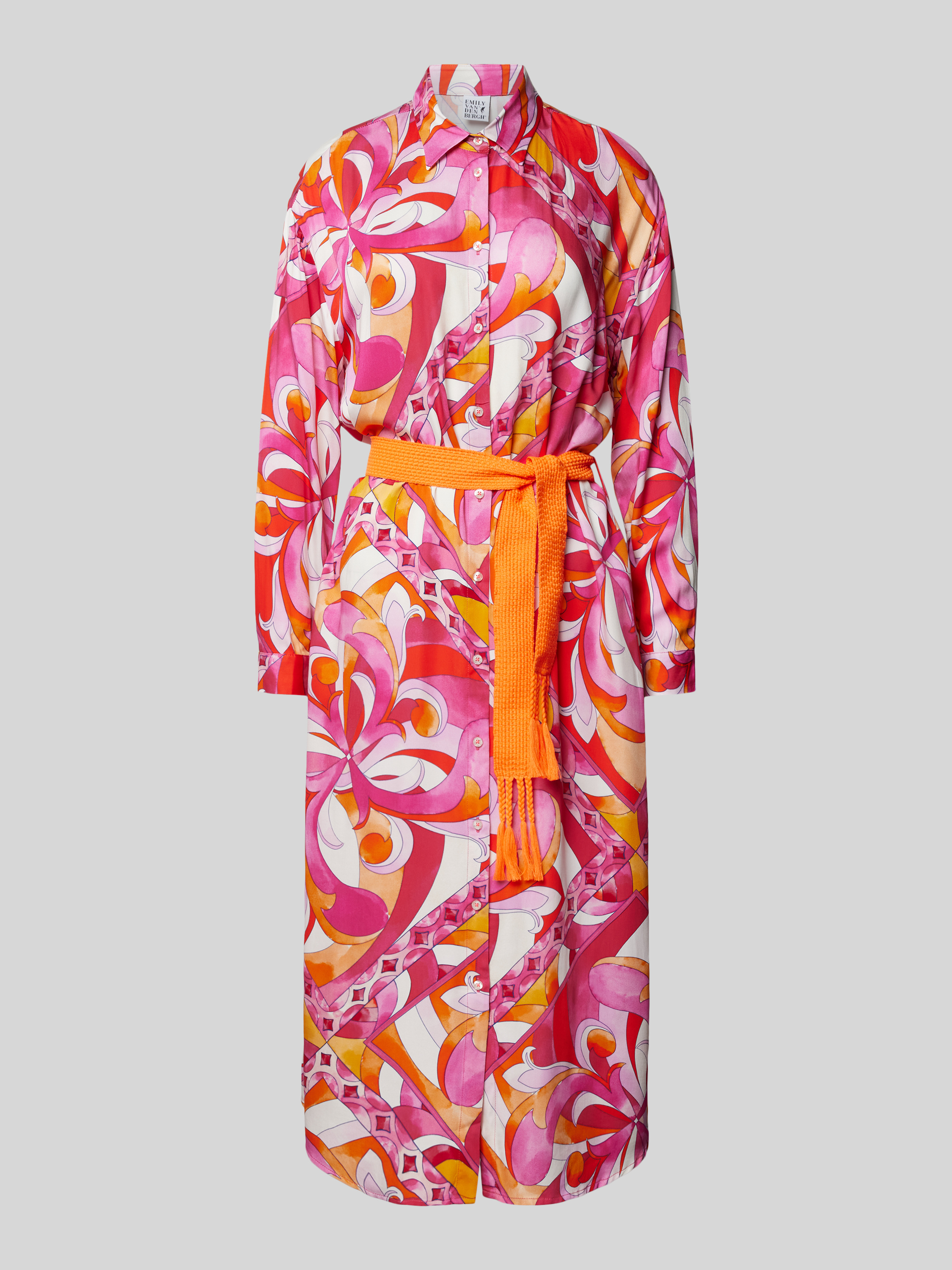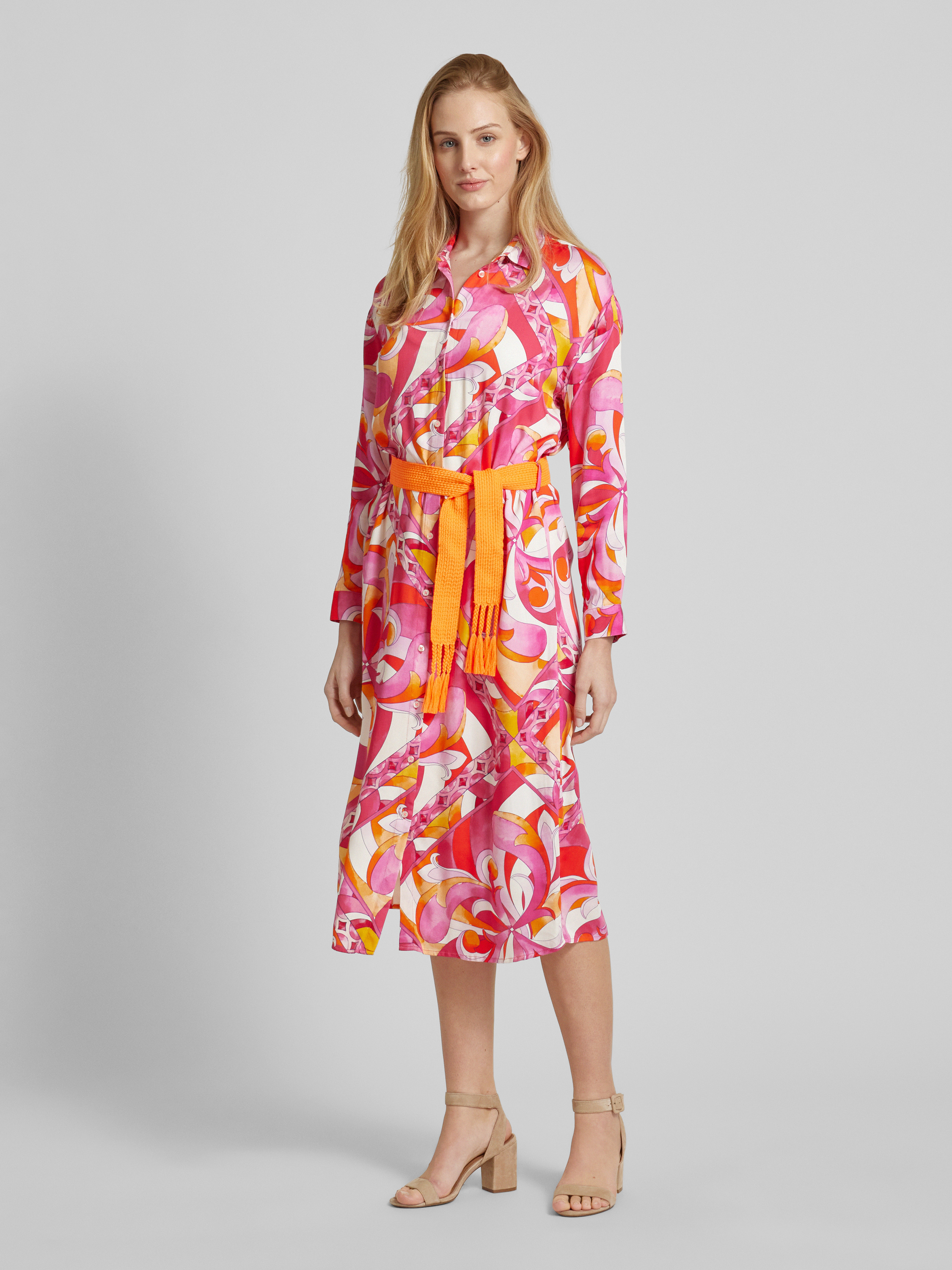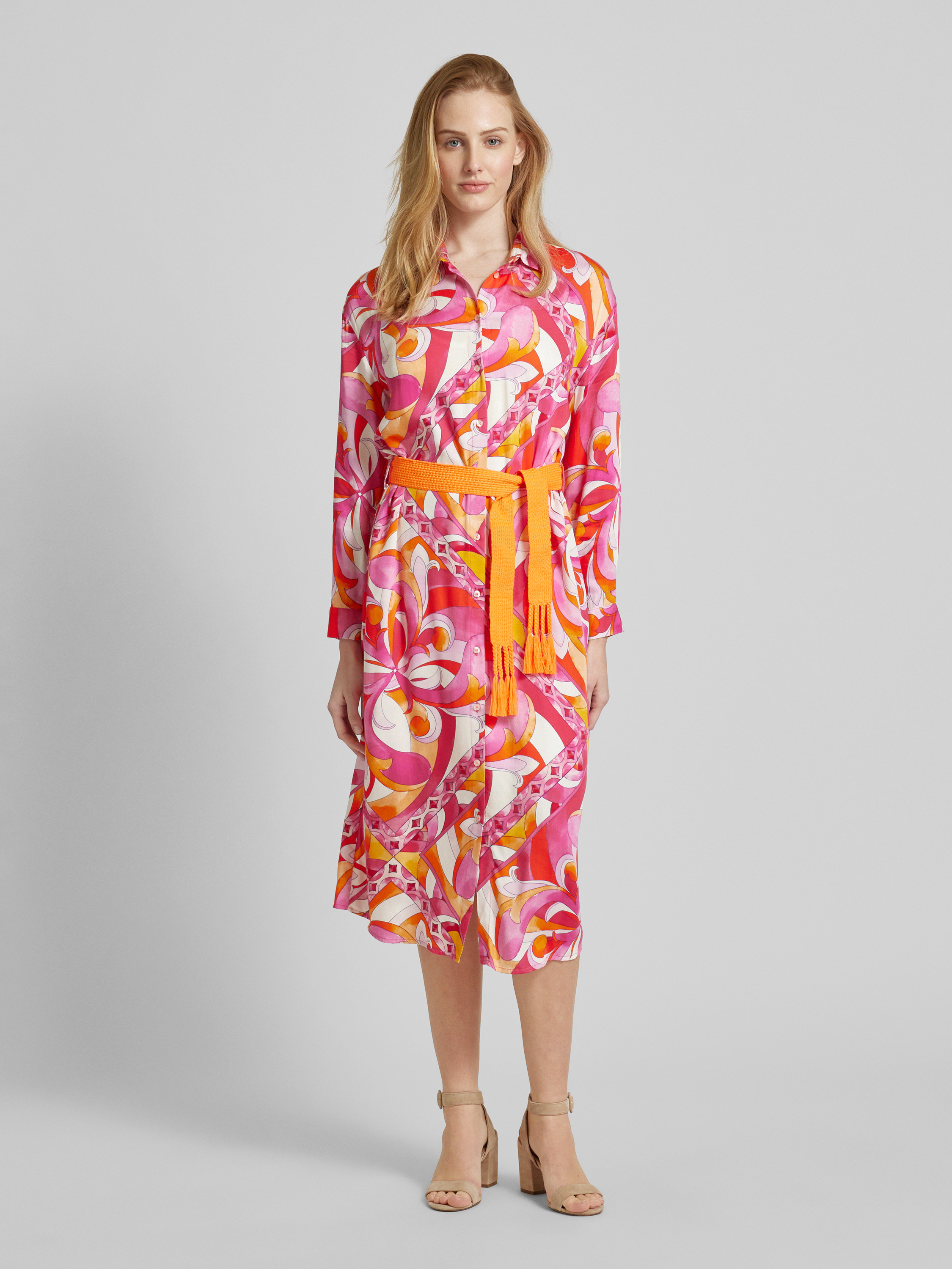 Sukienka koszulowa z wiskozy z wiązanym paskiem - mocnoróżowy