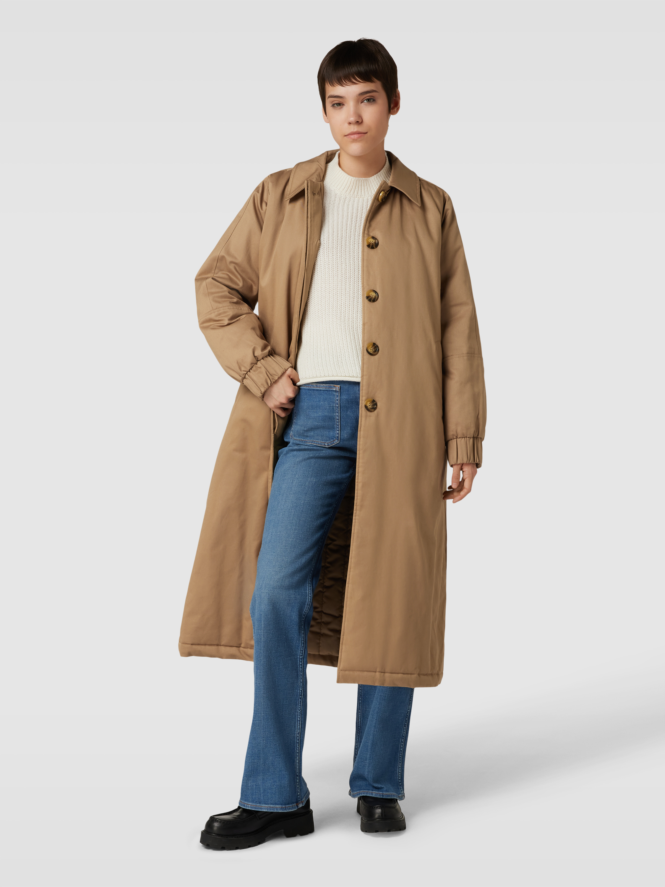 Płaszcz z krytą listwą guzikową model ‘Meghan’ - beżowy