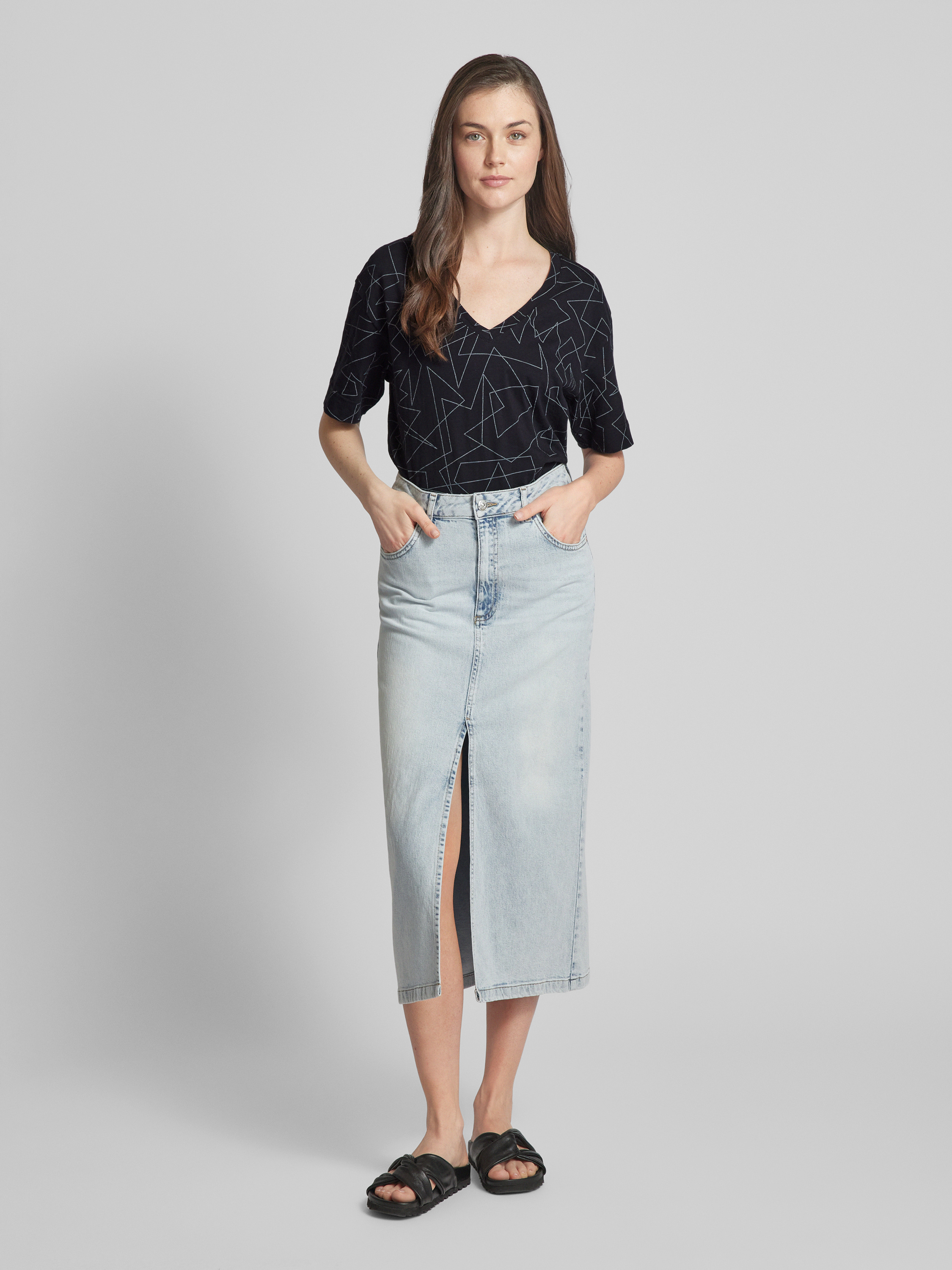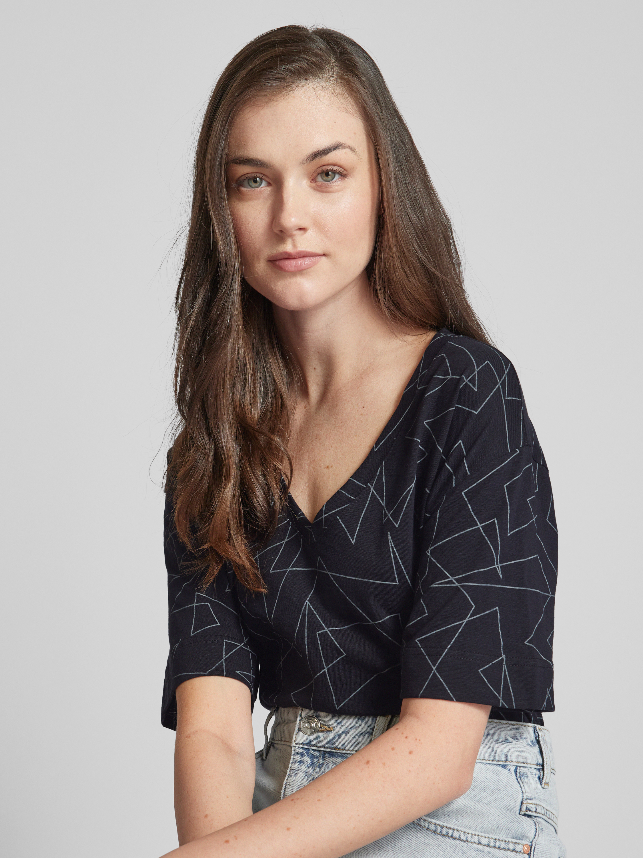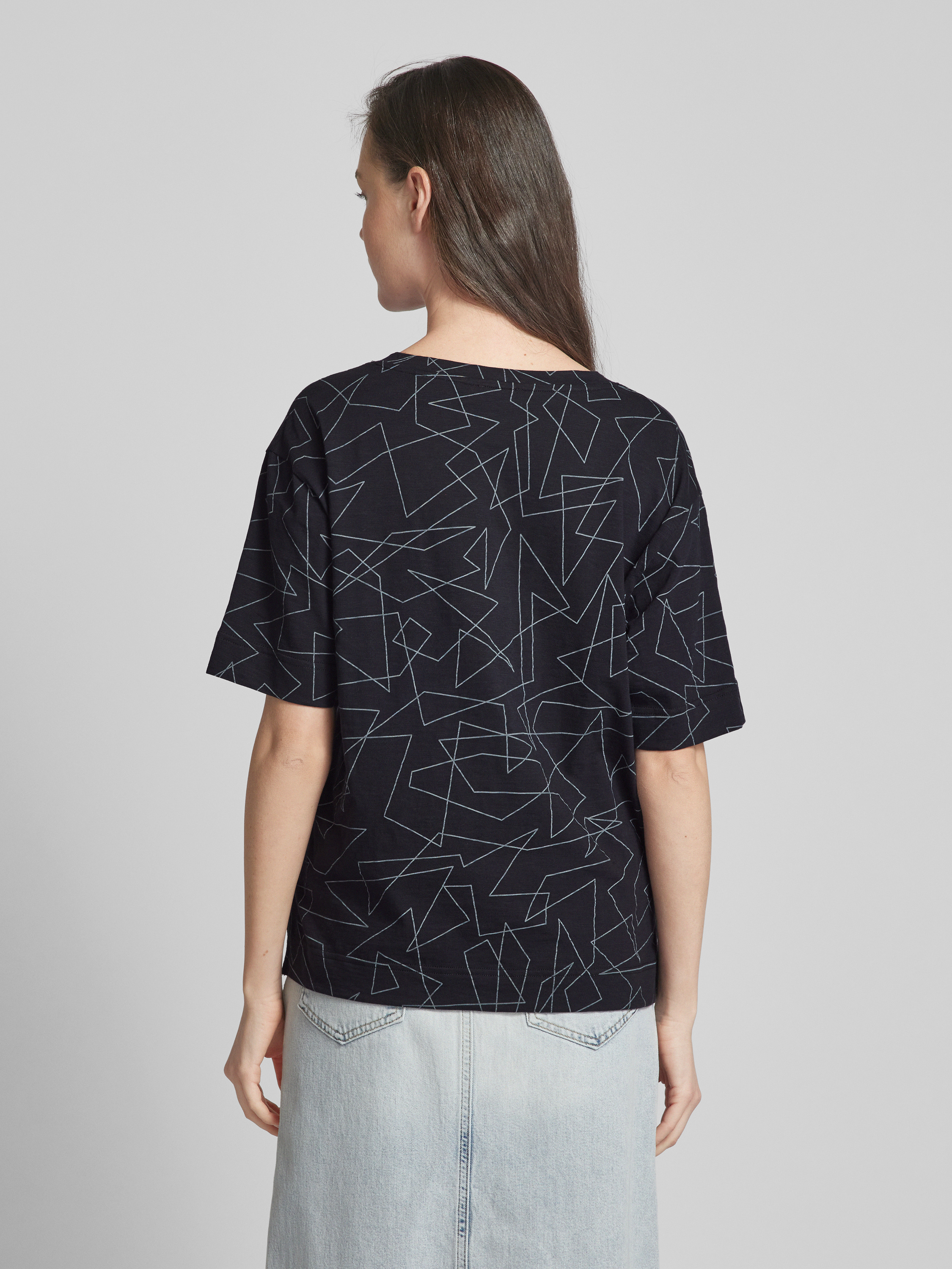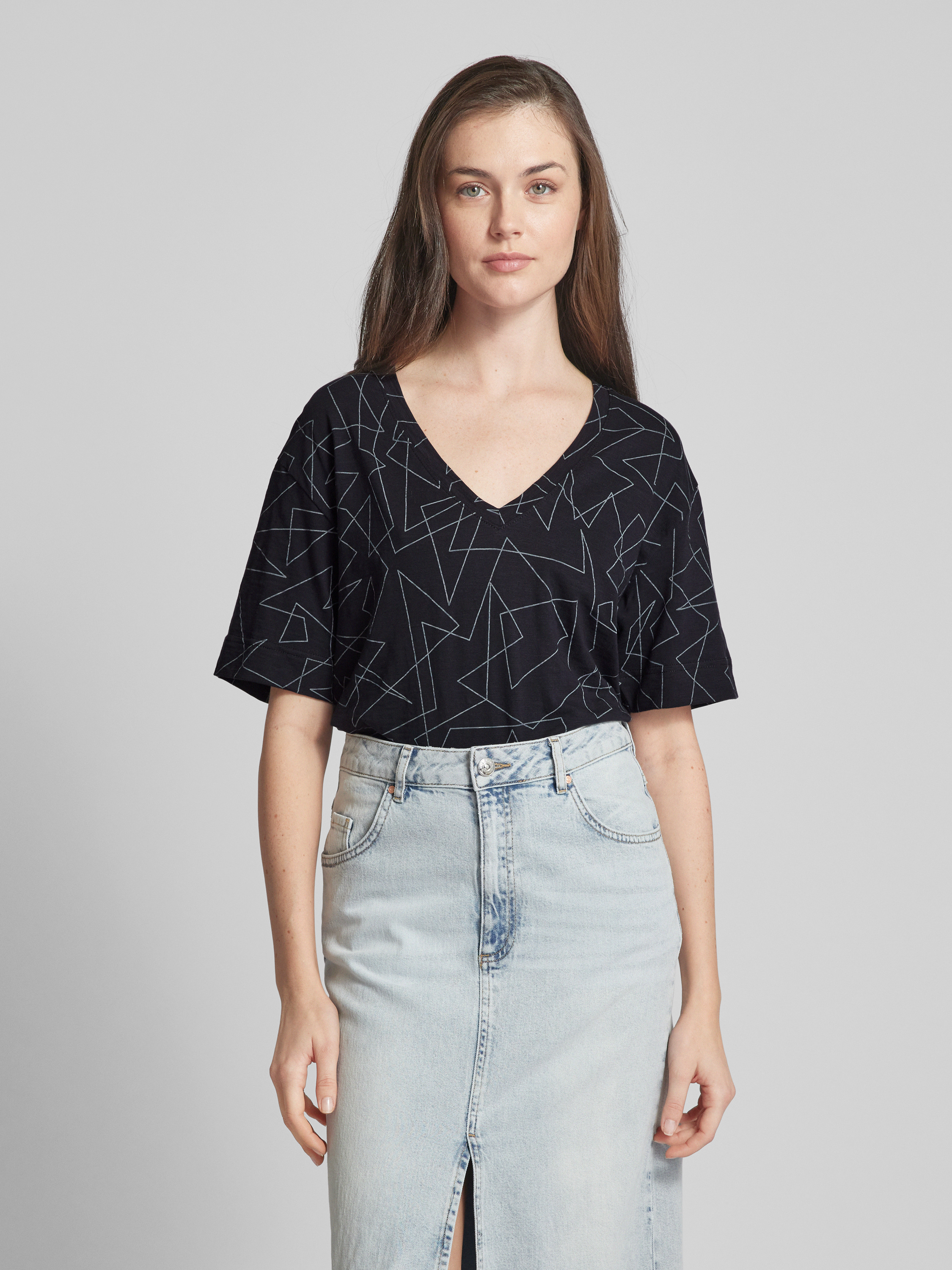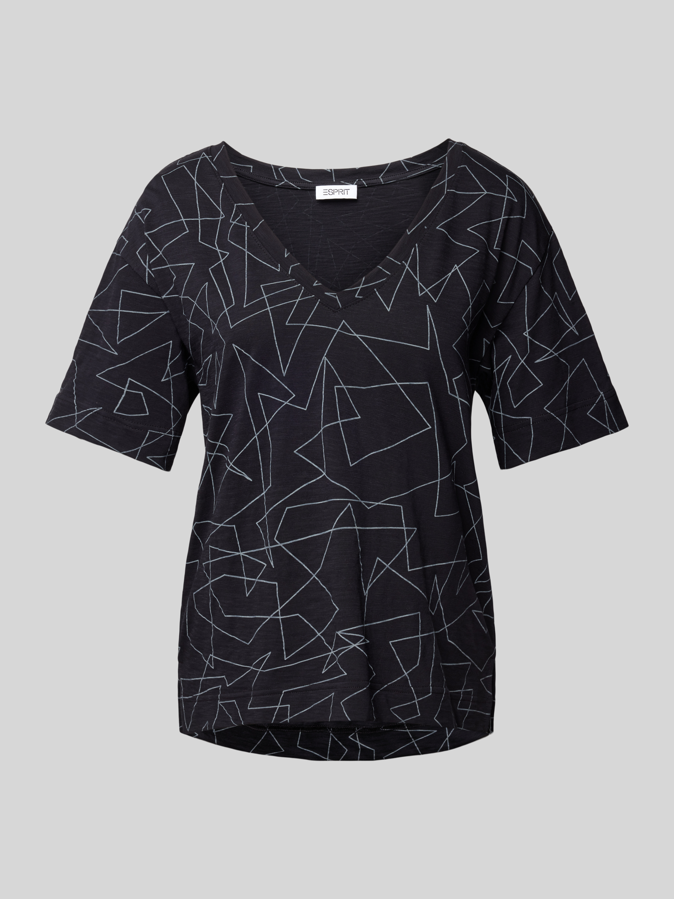T-shirt z graficznym wzorem i dekoltem w serek - czarny