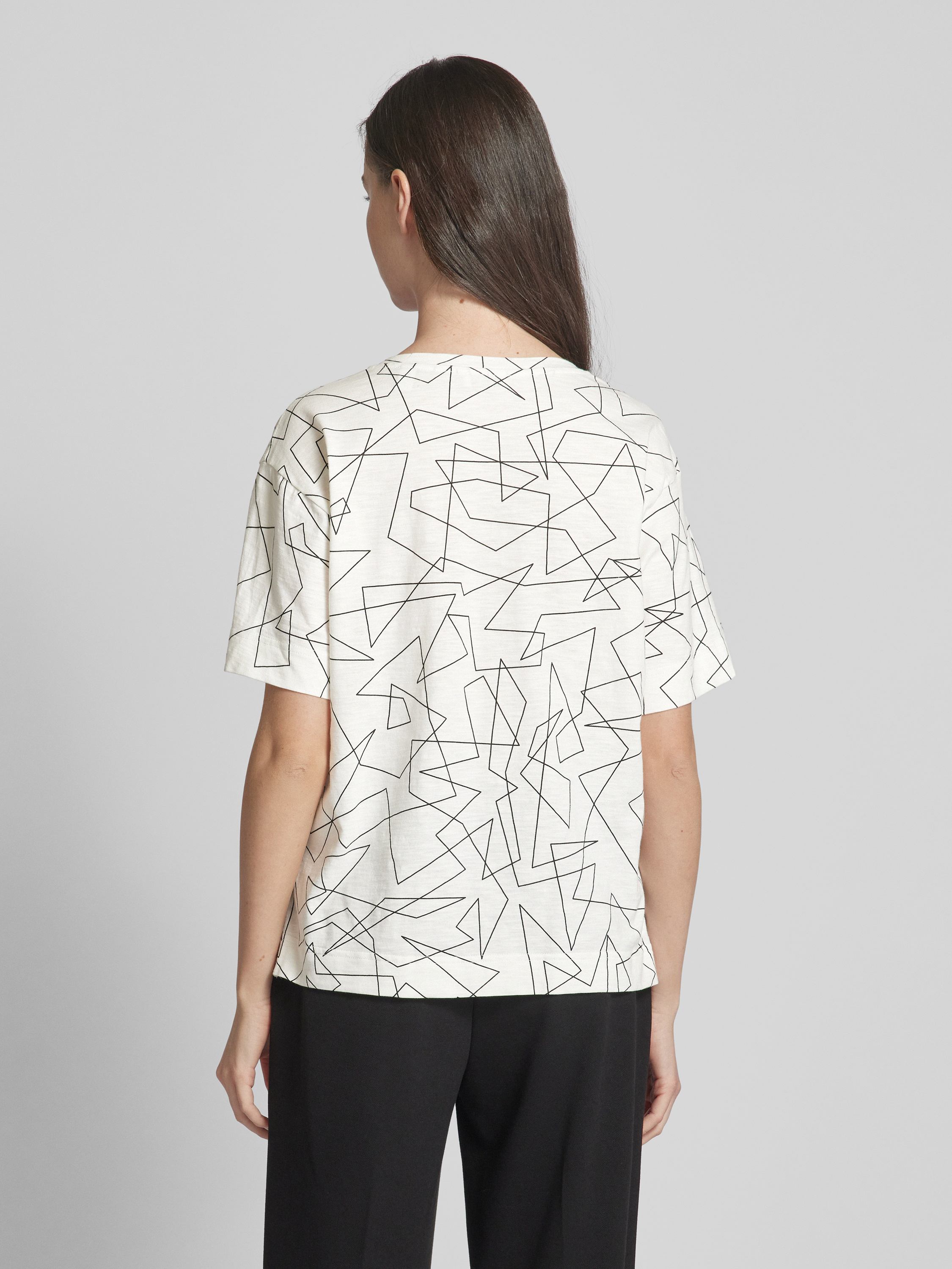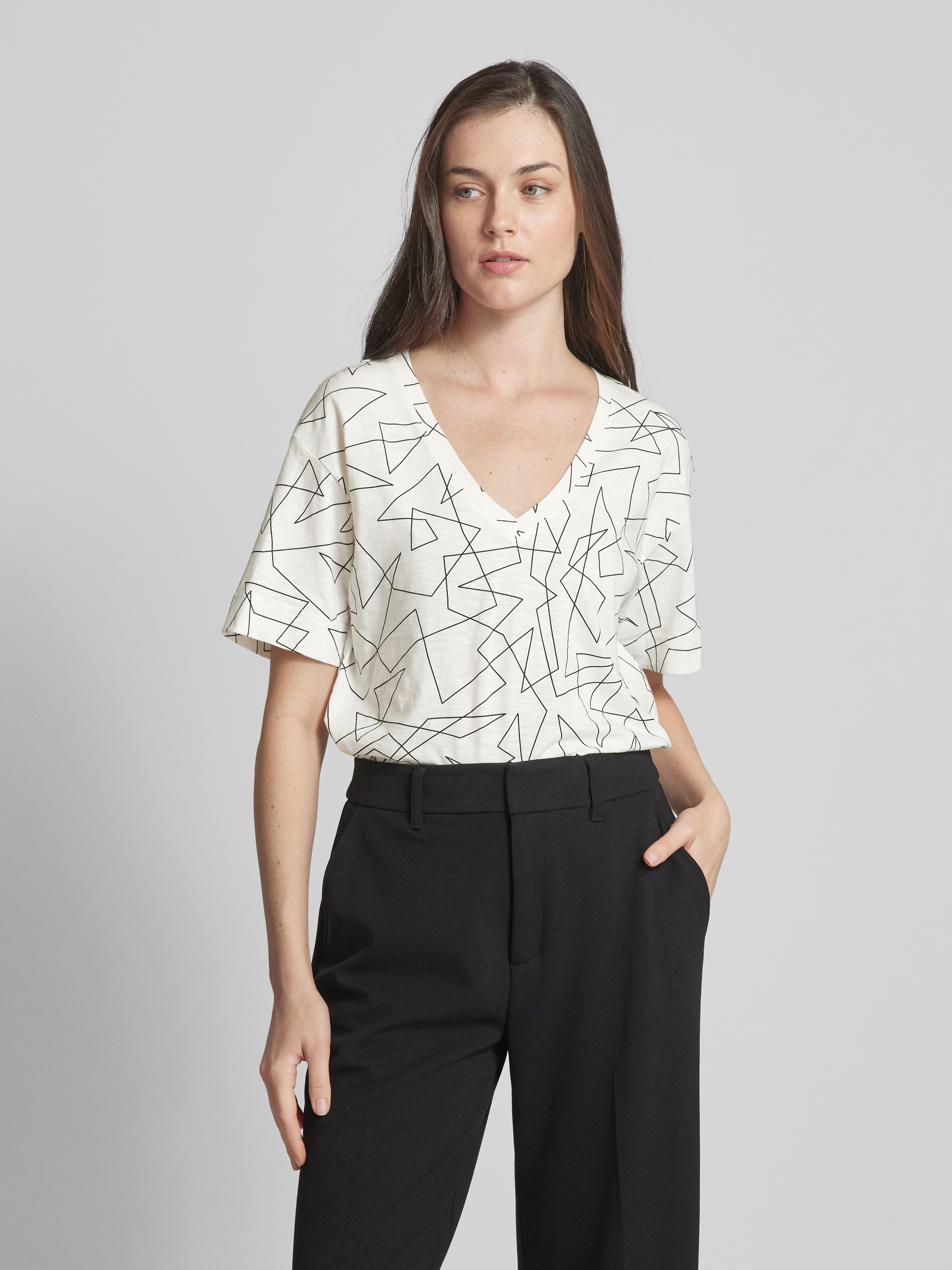 T-shirt z graficznym wzorem i dekoltem w serek - złamany biały