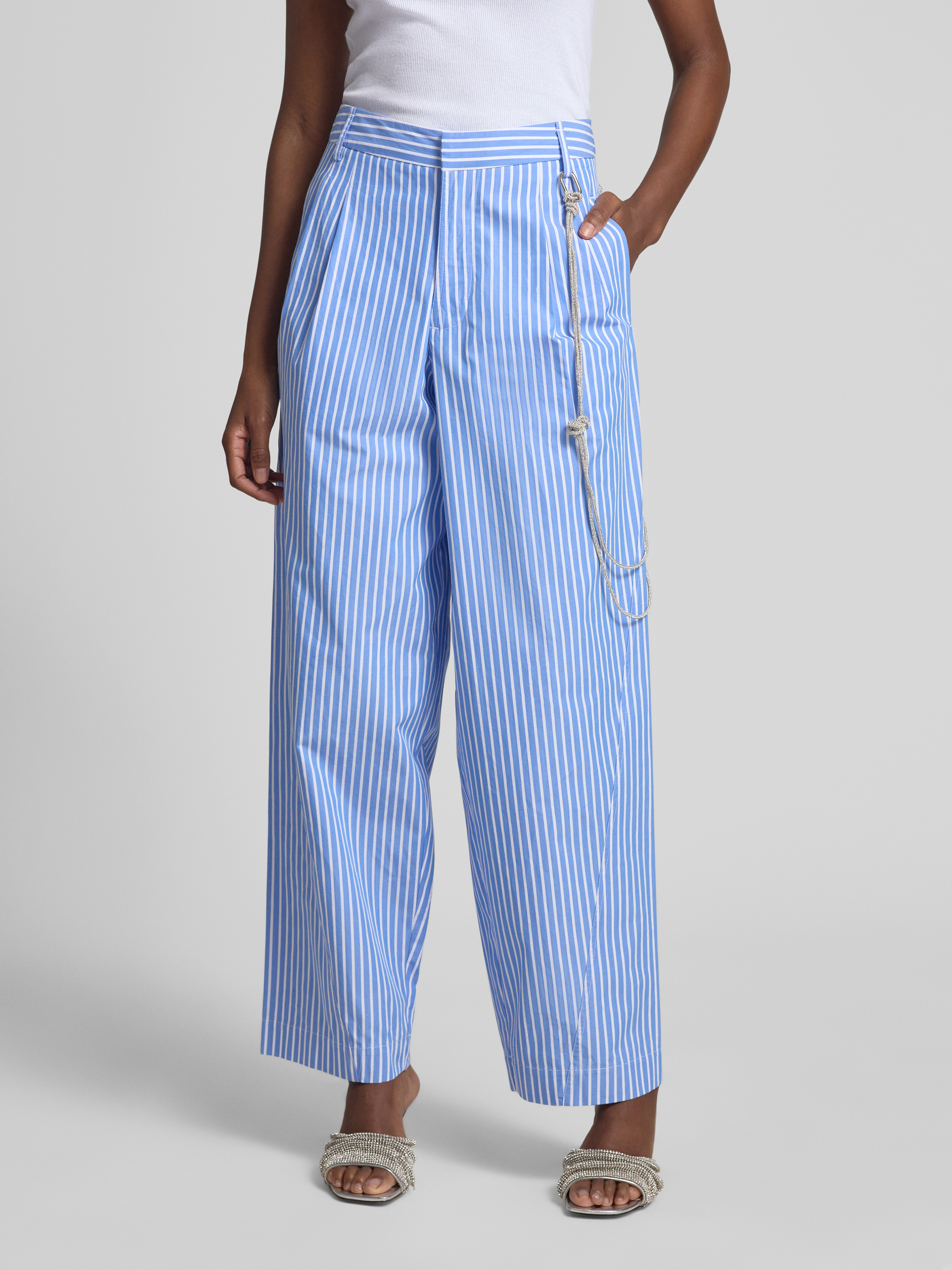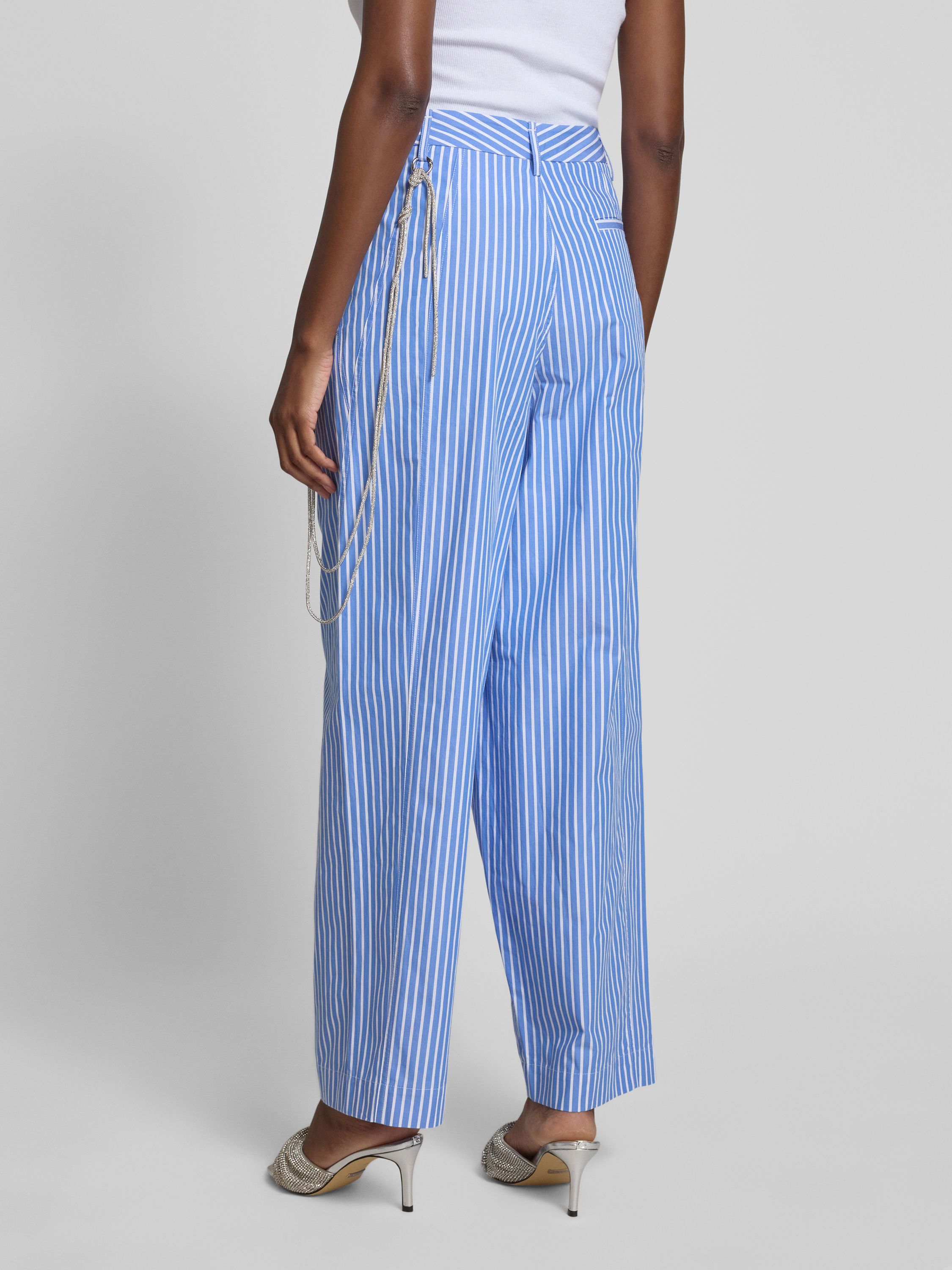 Spodnie carrot o luźnym kroju z paskiem z kamieniami stras model ‘HOEK’ - jasnoniebieski