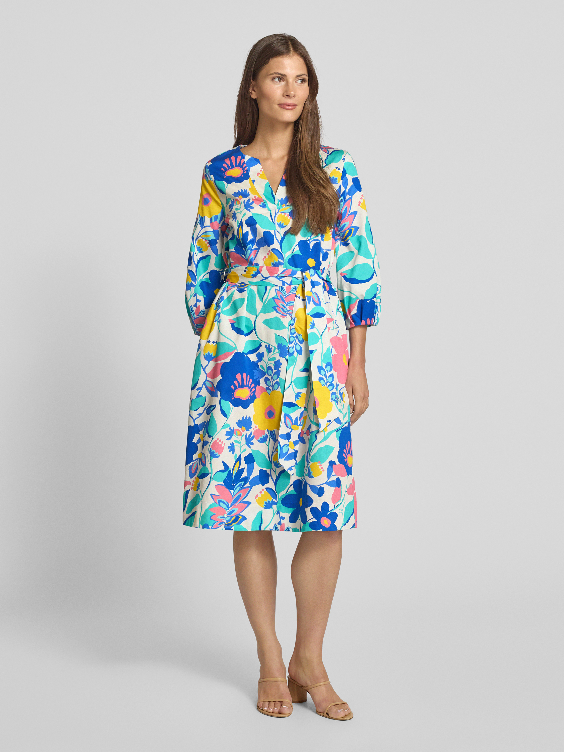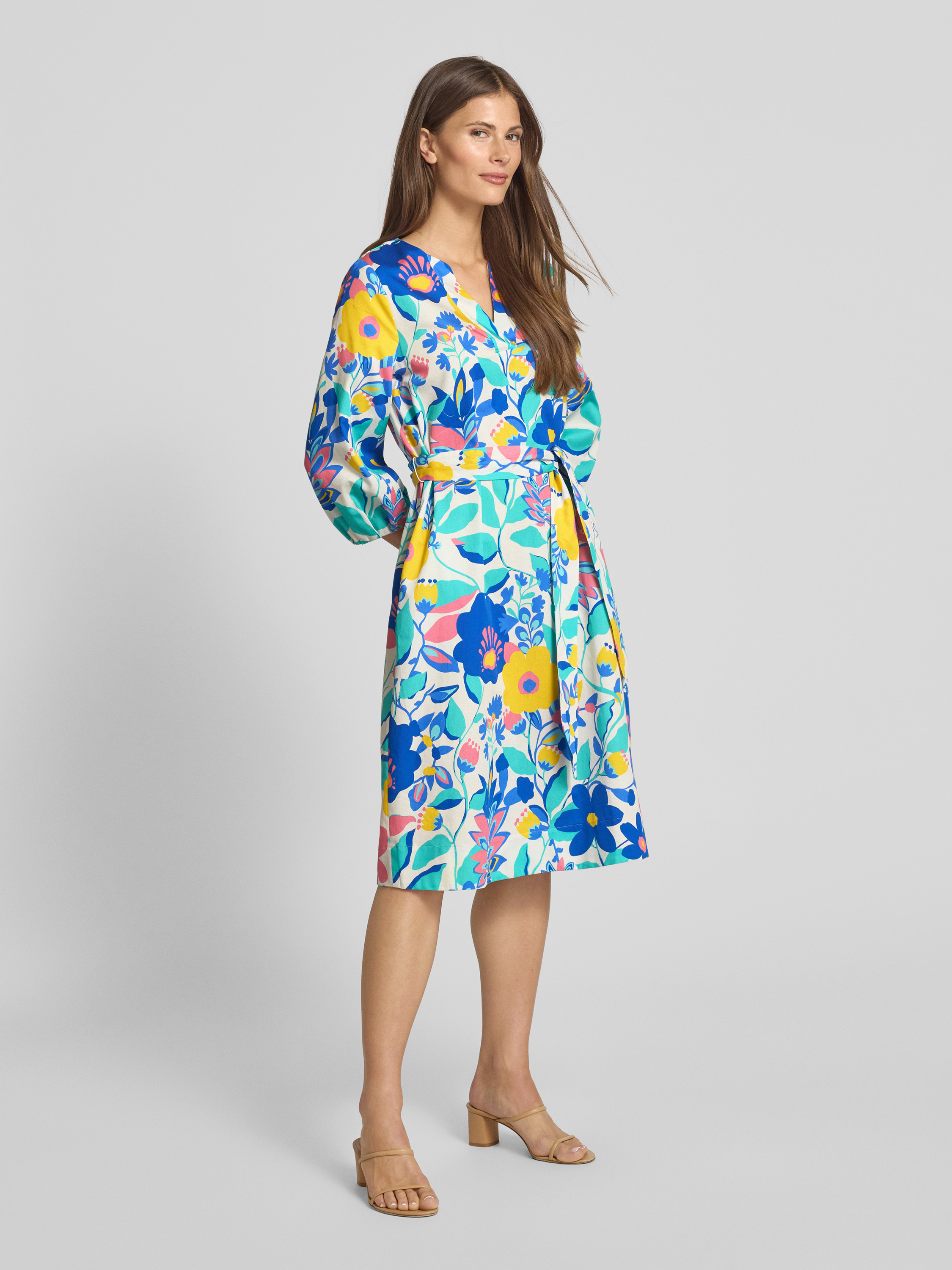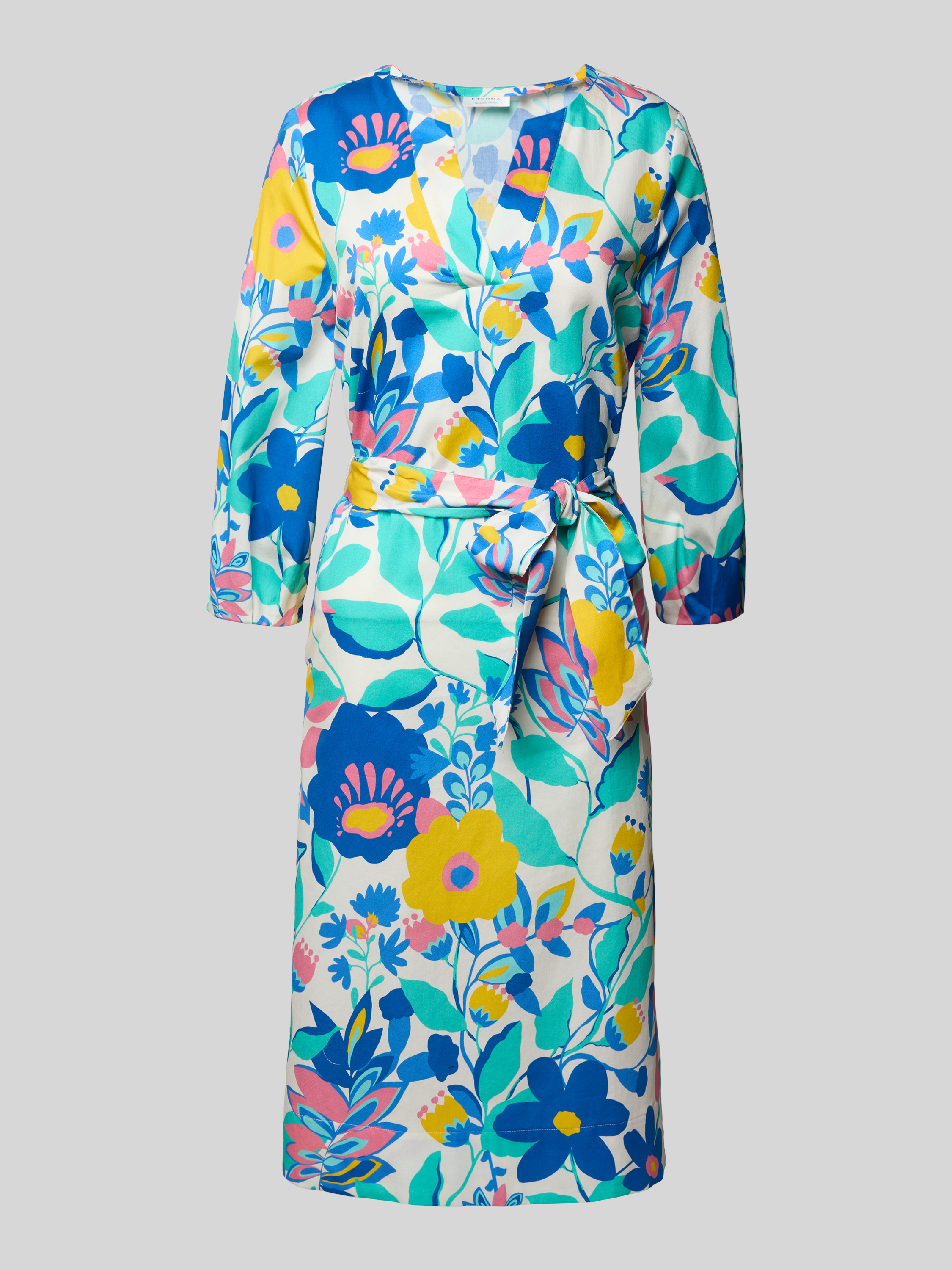 Sukienka o długości do kolan z wiązanym paskiem - turkusowy