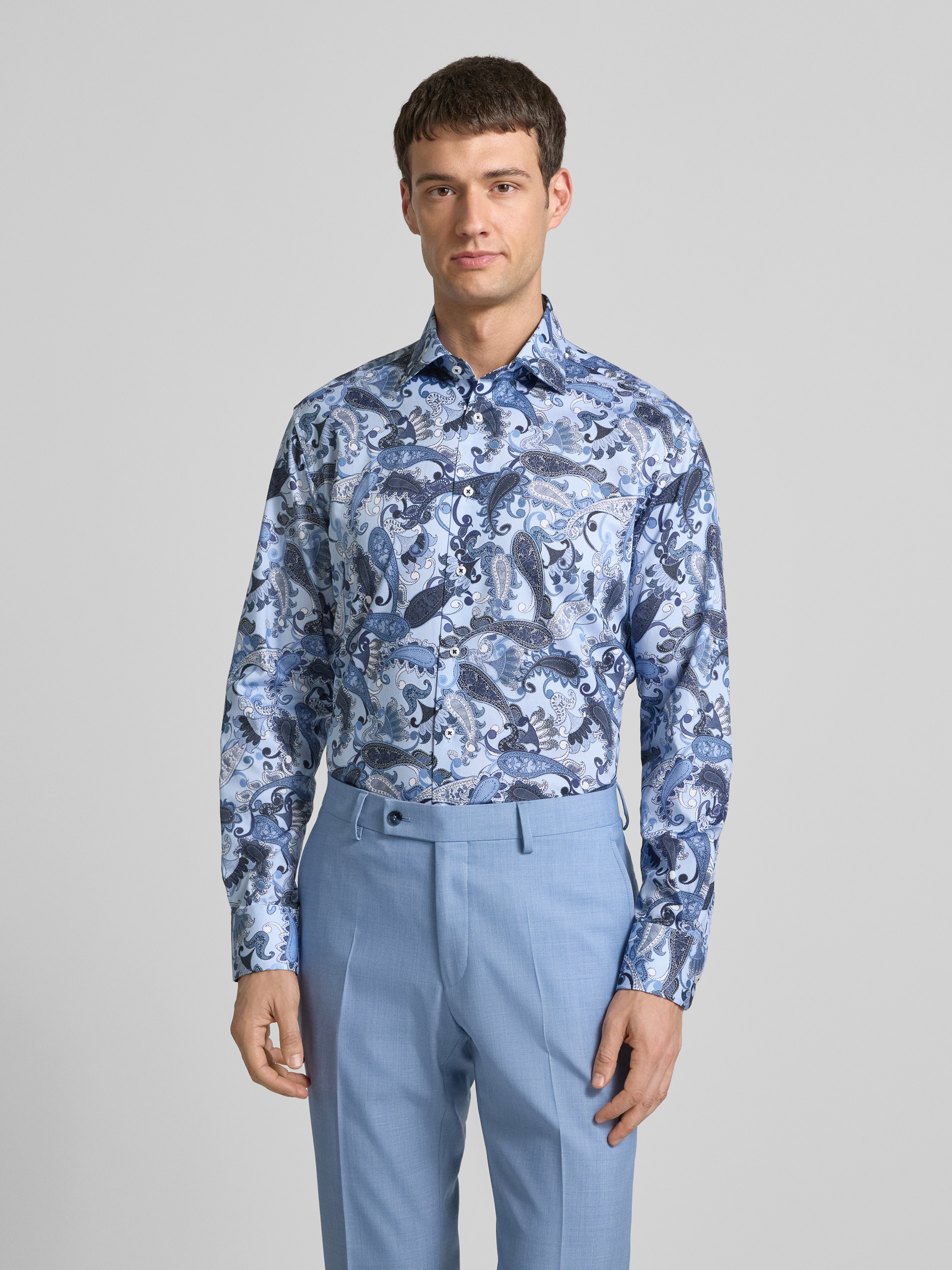 ETERNAKoszula biznesowa o kroju modern fit z listwą guzikową - błękitny