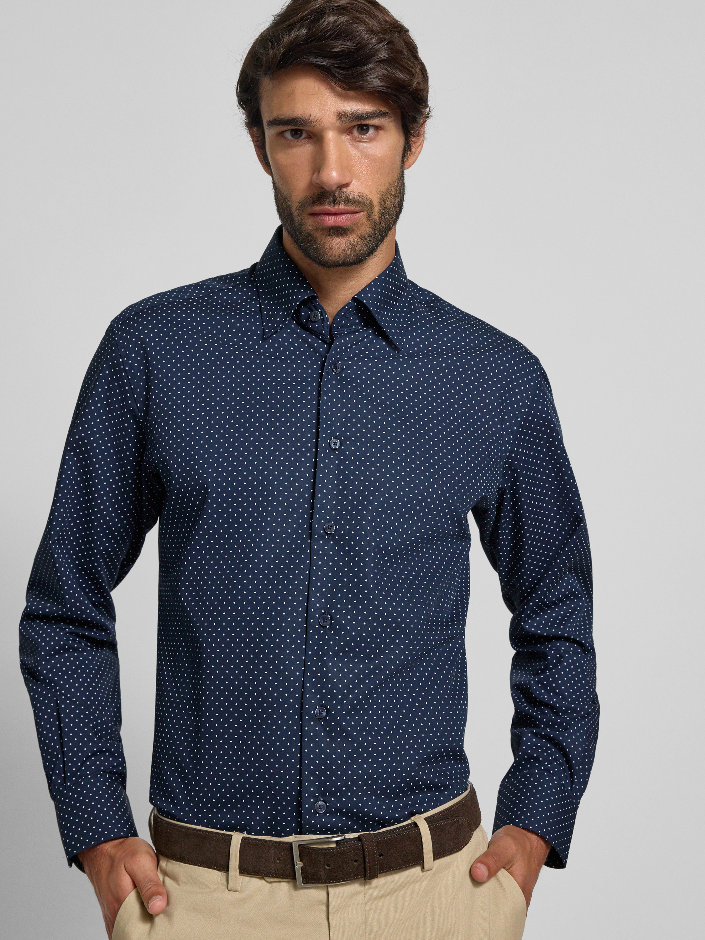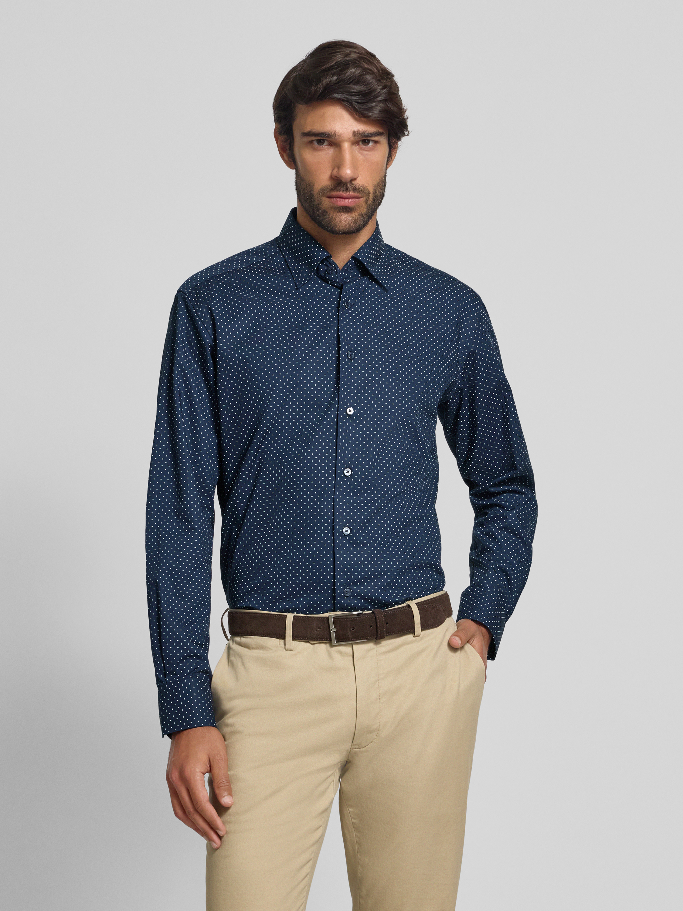 ETERNAKoszula casualowa o kroju regular fit z czystej bawełny z kołnierzykiem typu kent - granatowy