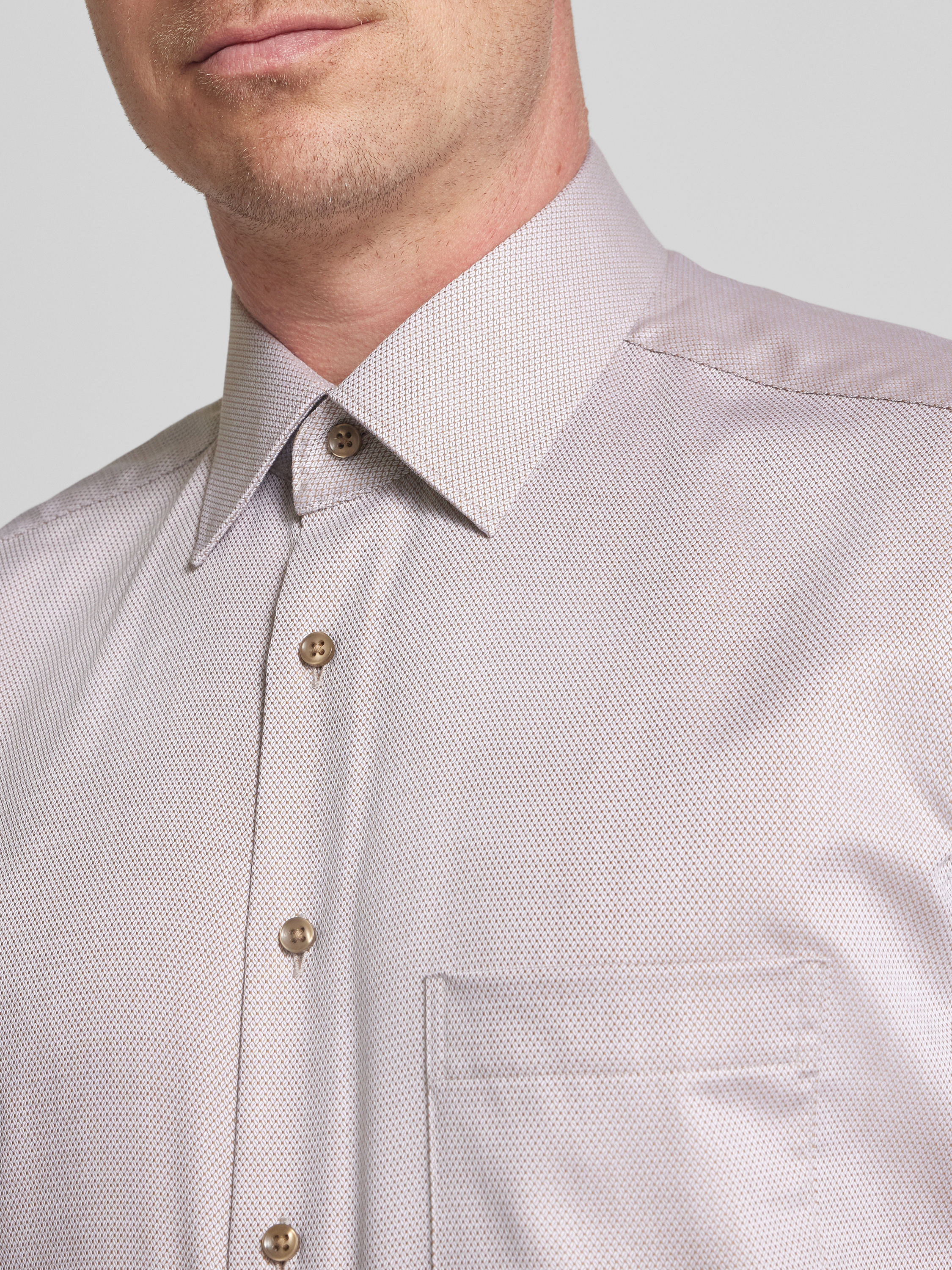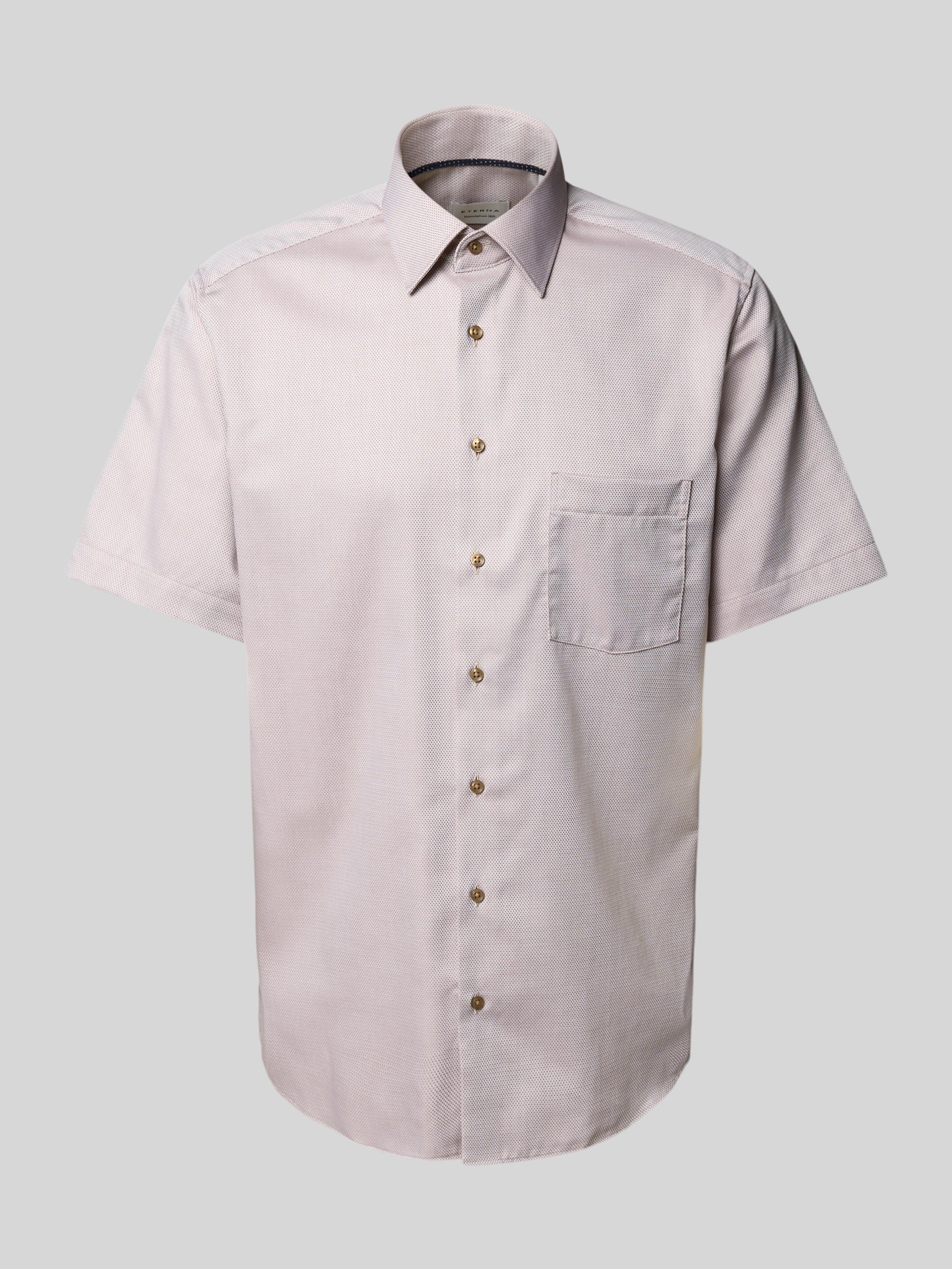 ETERNAKoszula o kroju modern fit z krótkim rękawem i listwą guzikową - piaskowy