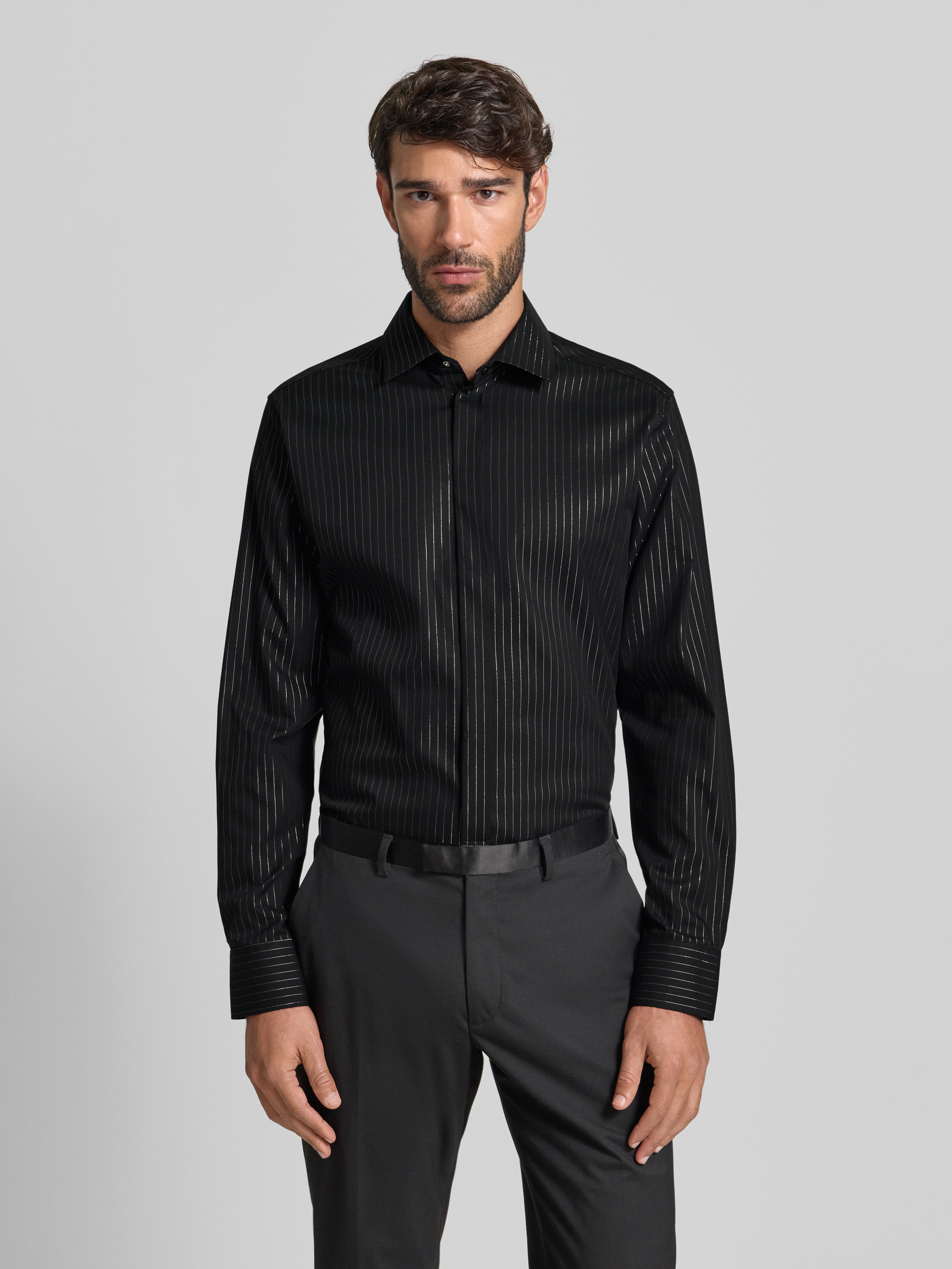 ETERNAKoszula biznesowa o kroju slim fit z kołnierzykiem typu kent - czarny