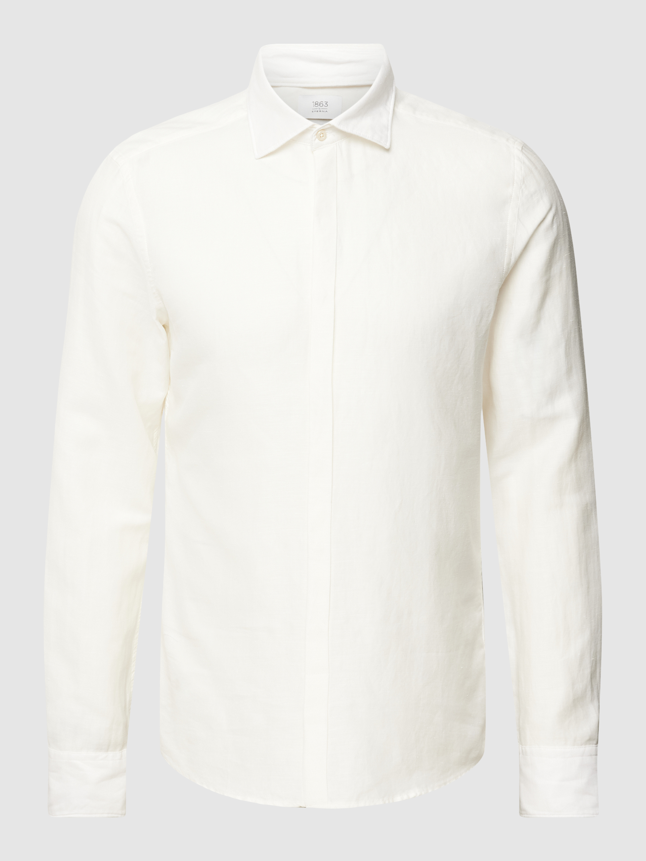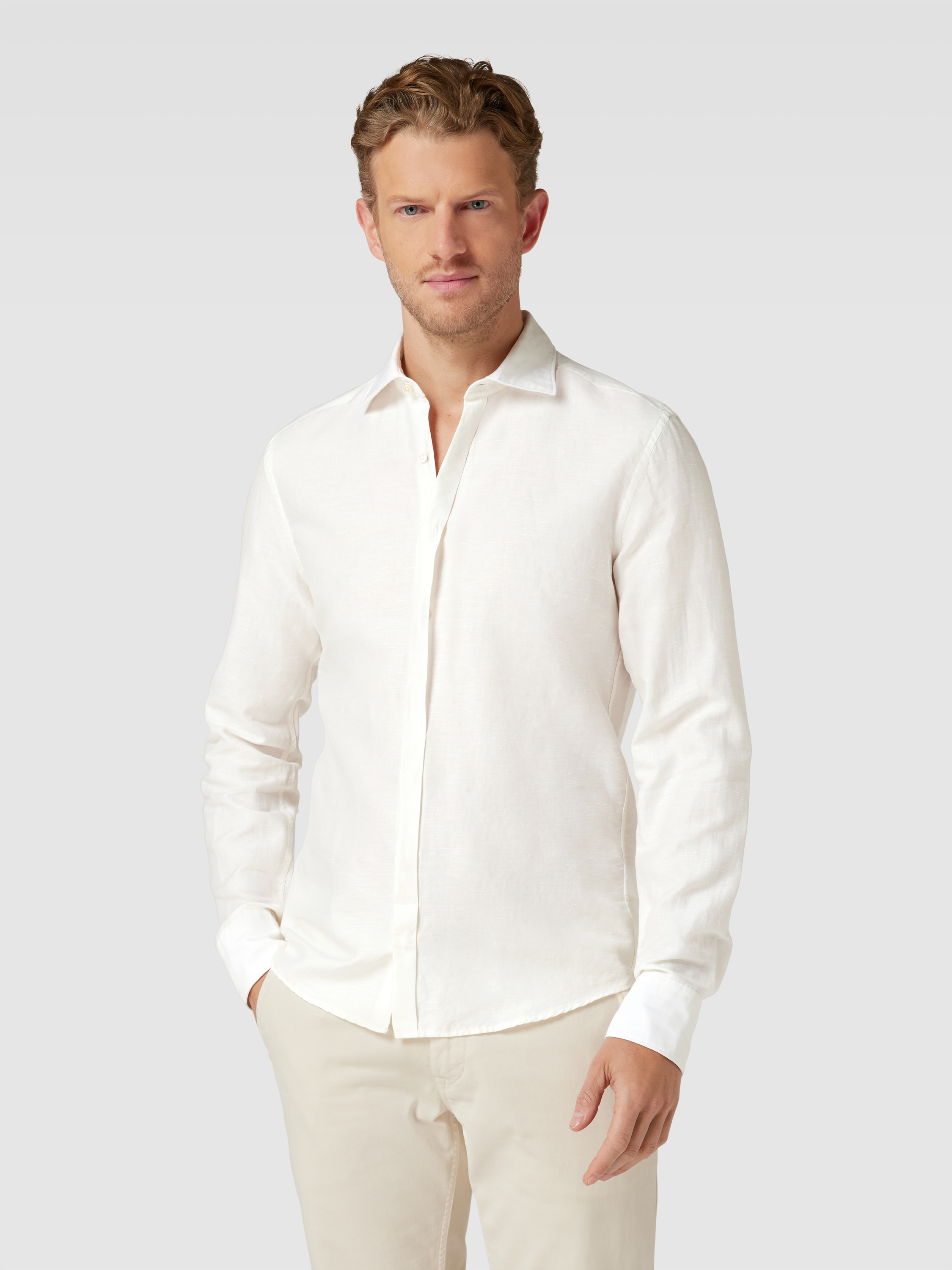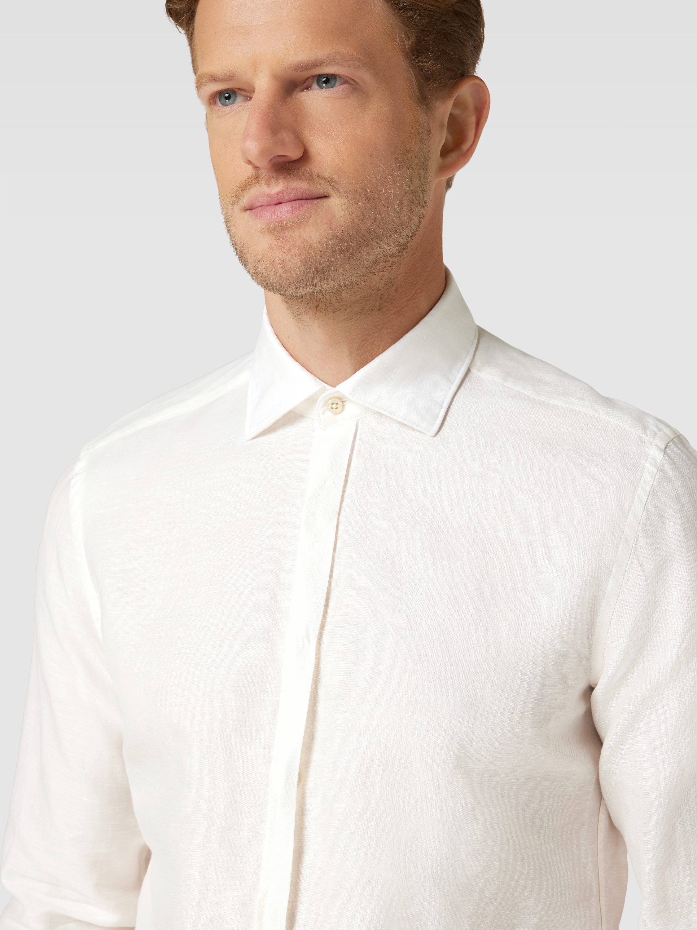 ETERNAKoszula smokingowa premium o kroju slim fit z domieszką lnu - beżowy