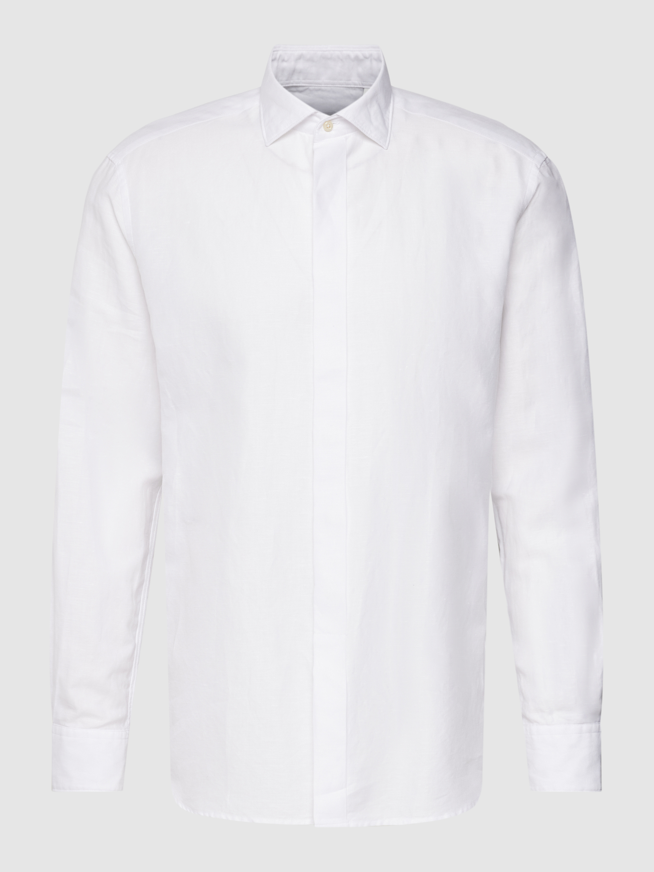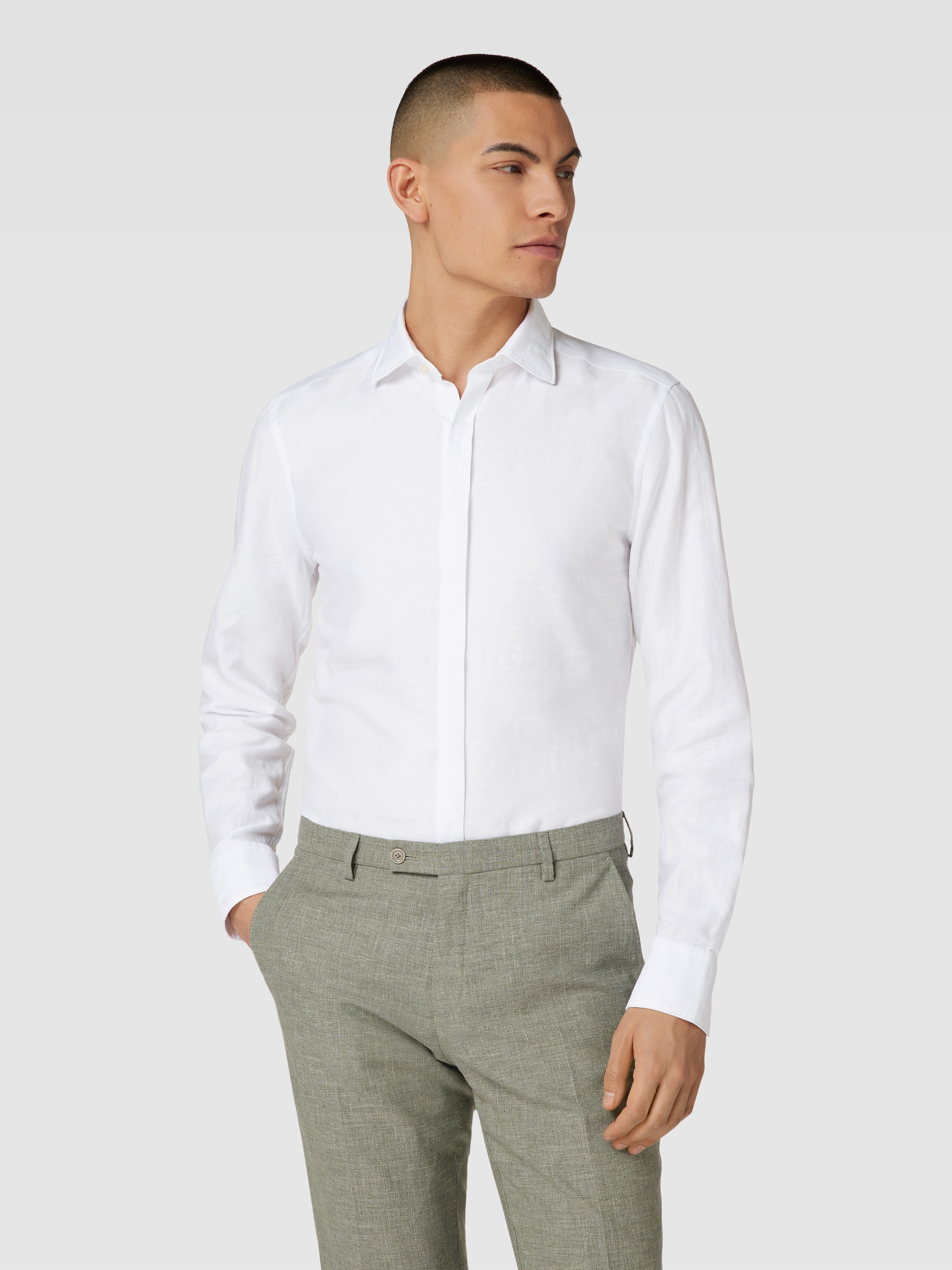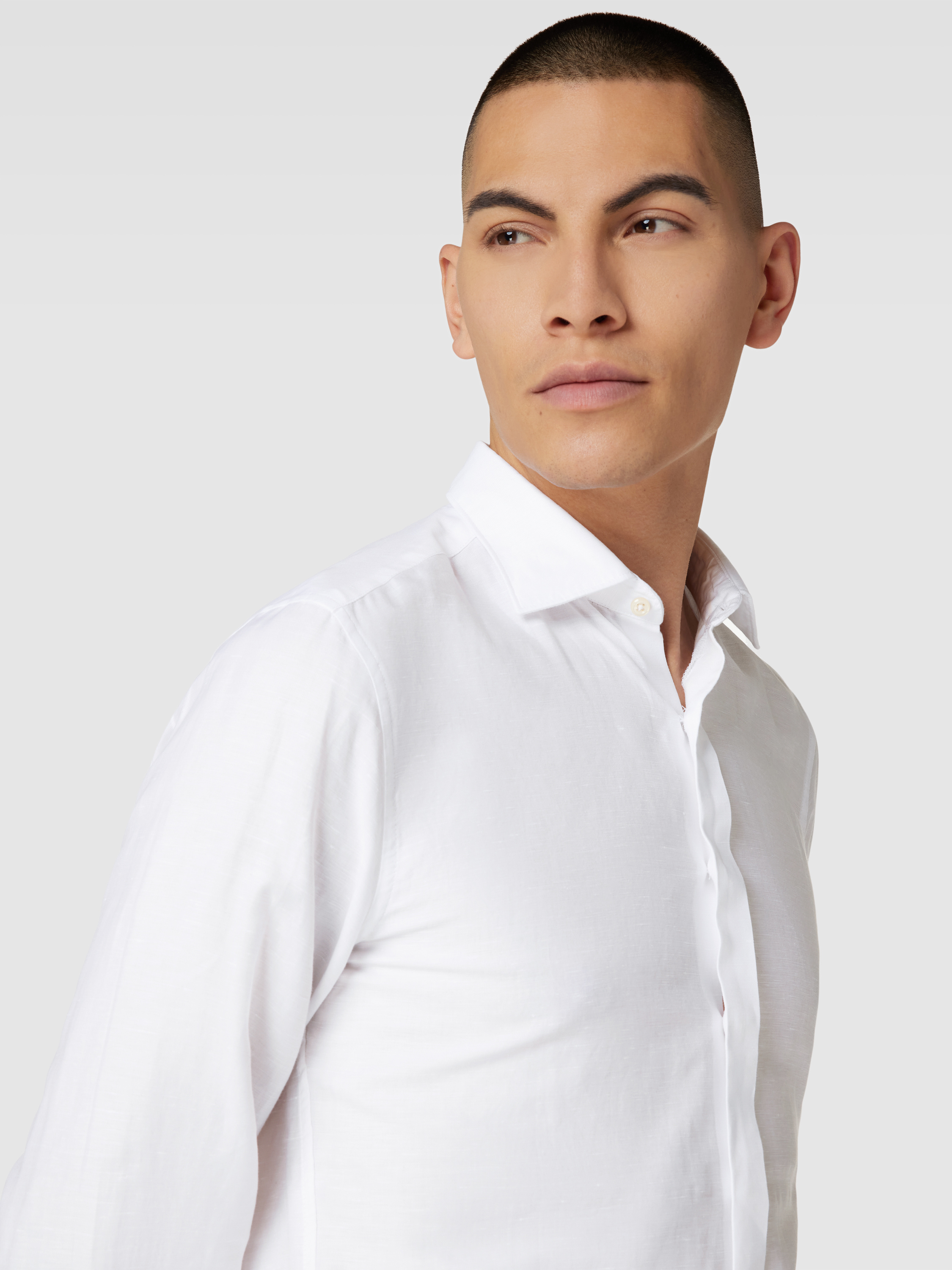 ETERNAKoszula smokingowa premium o kroju slim fit z domieszką lnu - biały