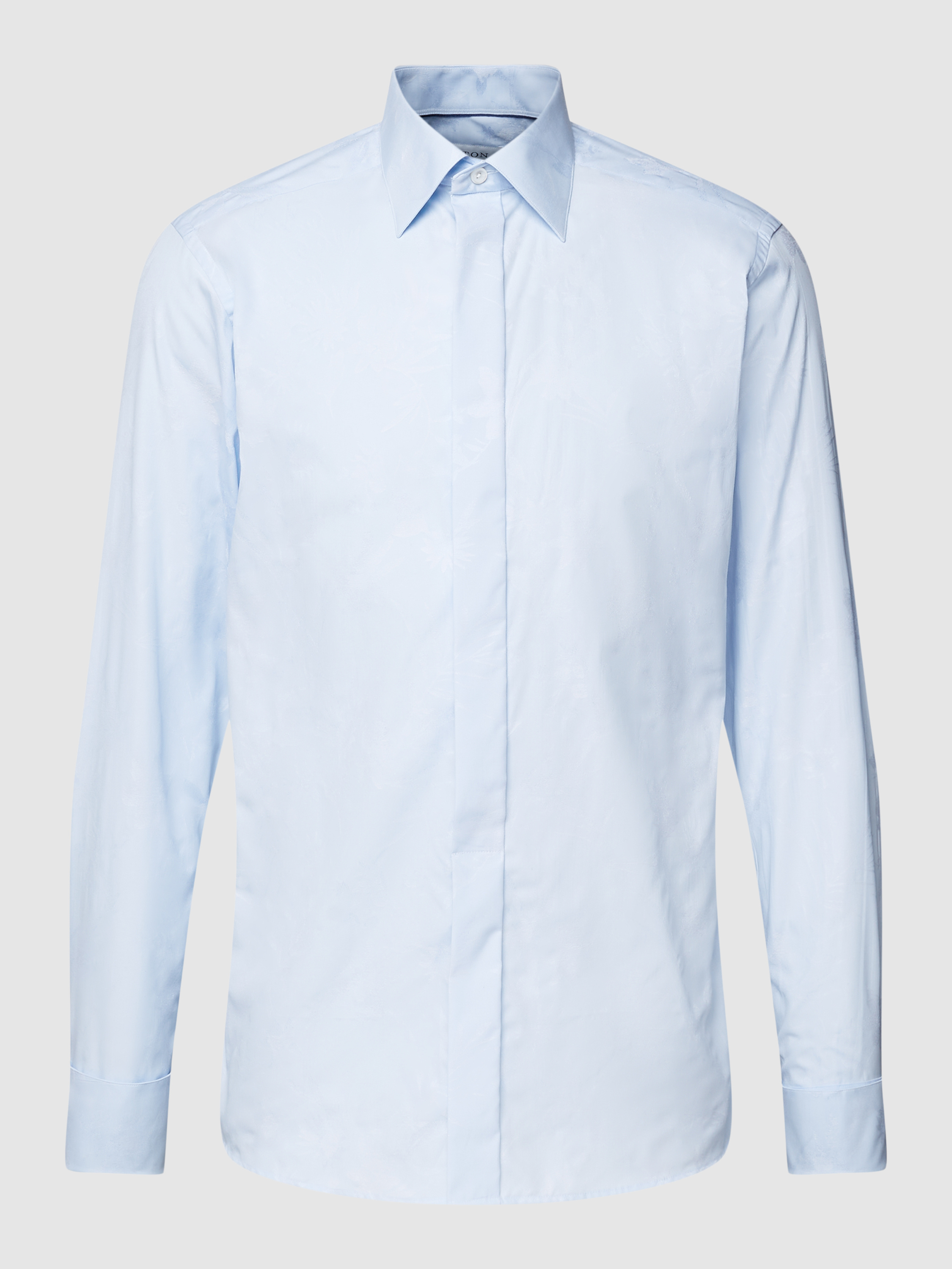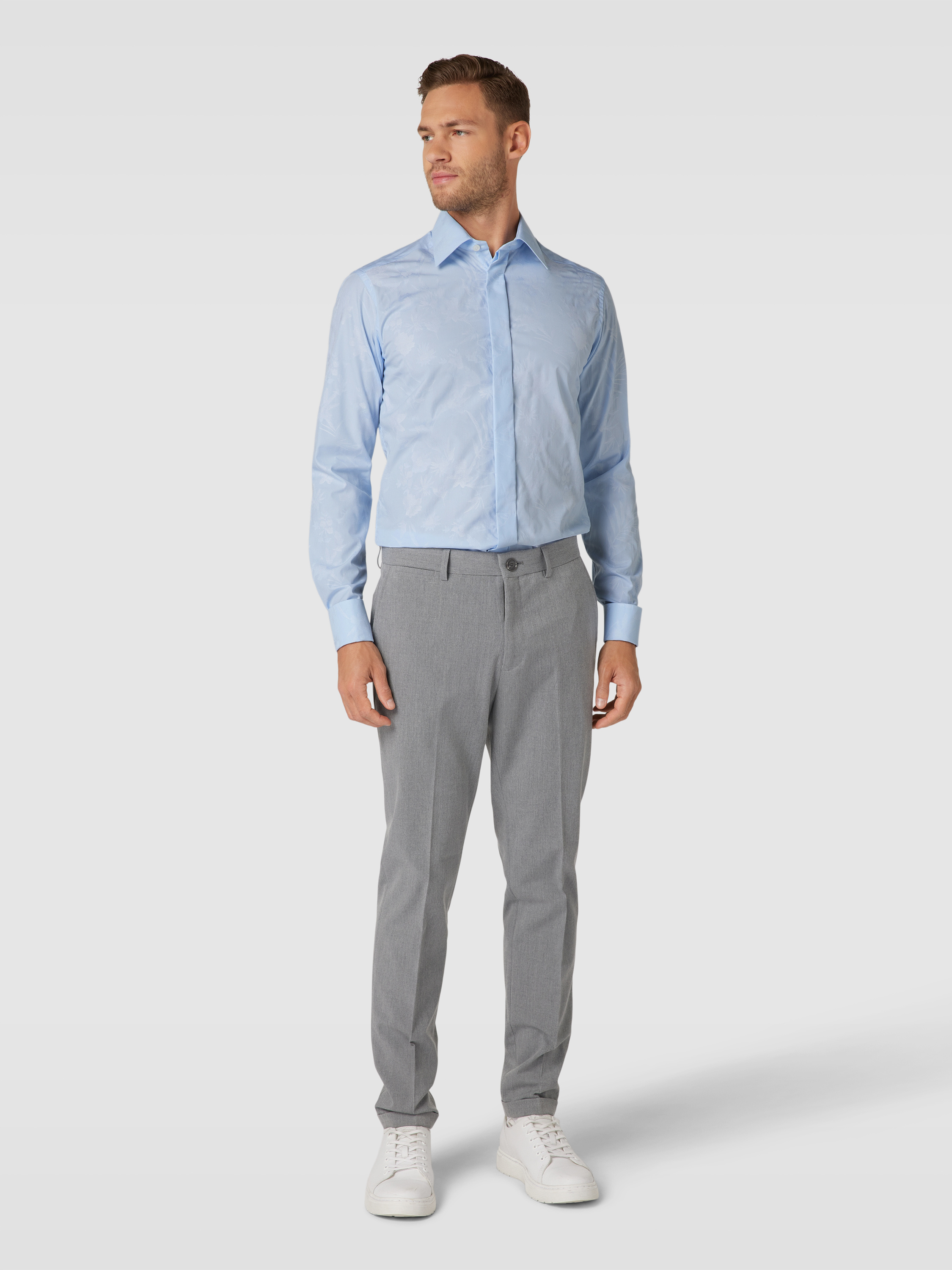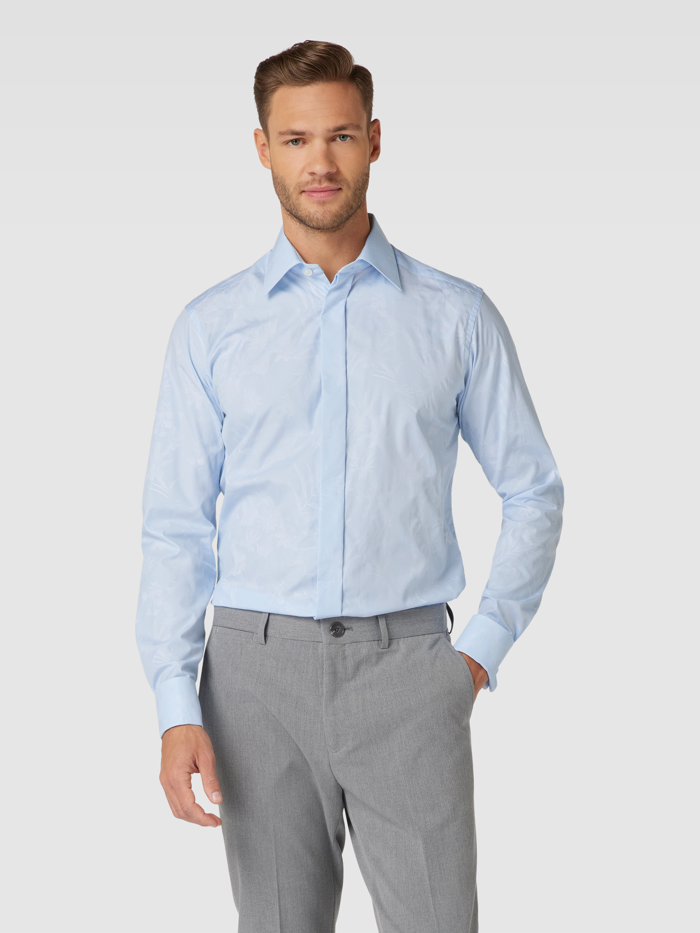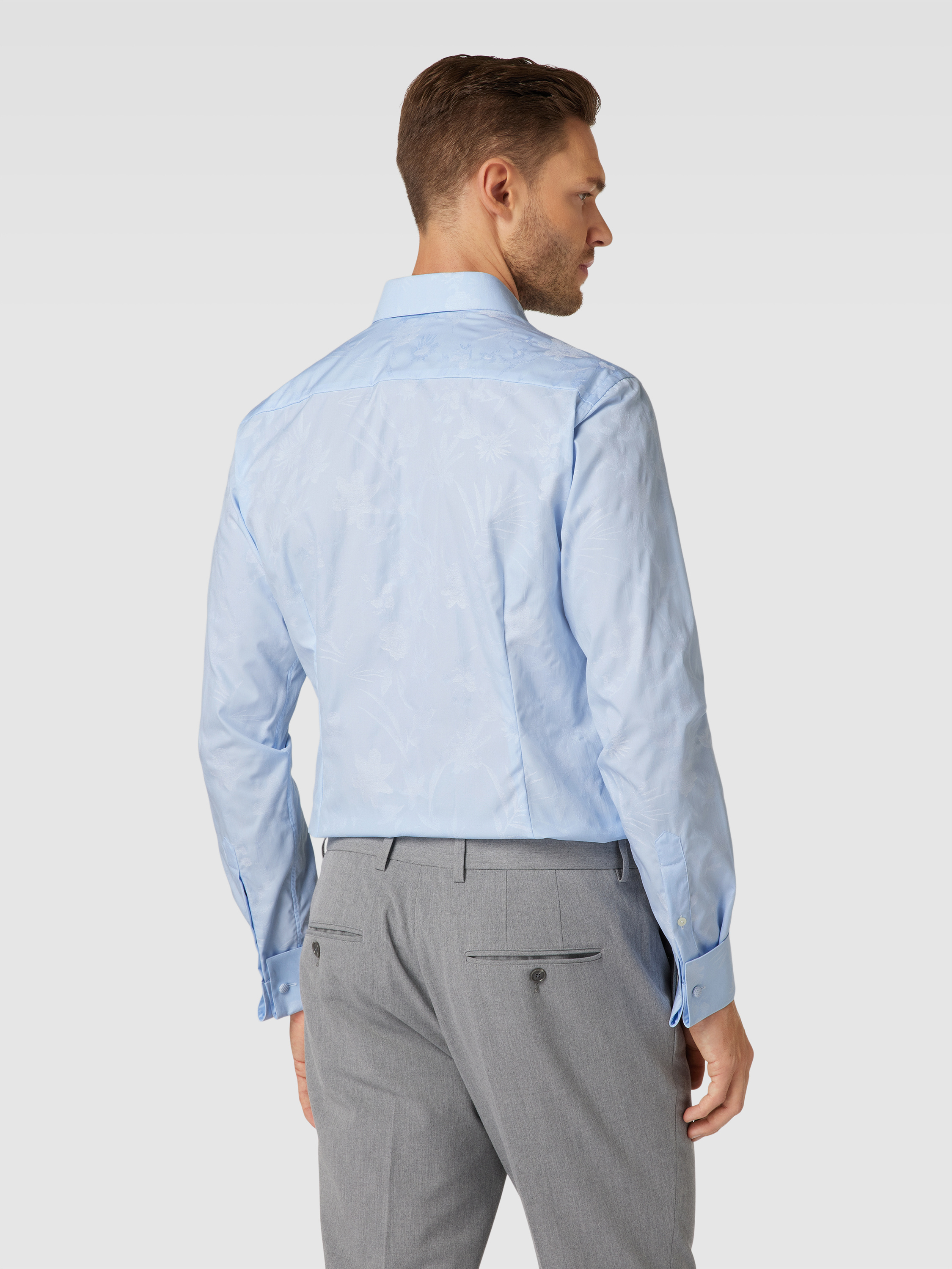 Koszula smokingowa o kroju slim fit z wysokiej jakości bawełny model ‘FLORAL JACQUARD’ - błękitny