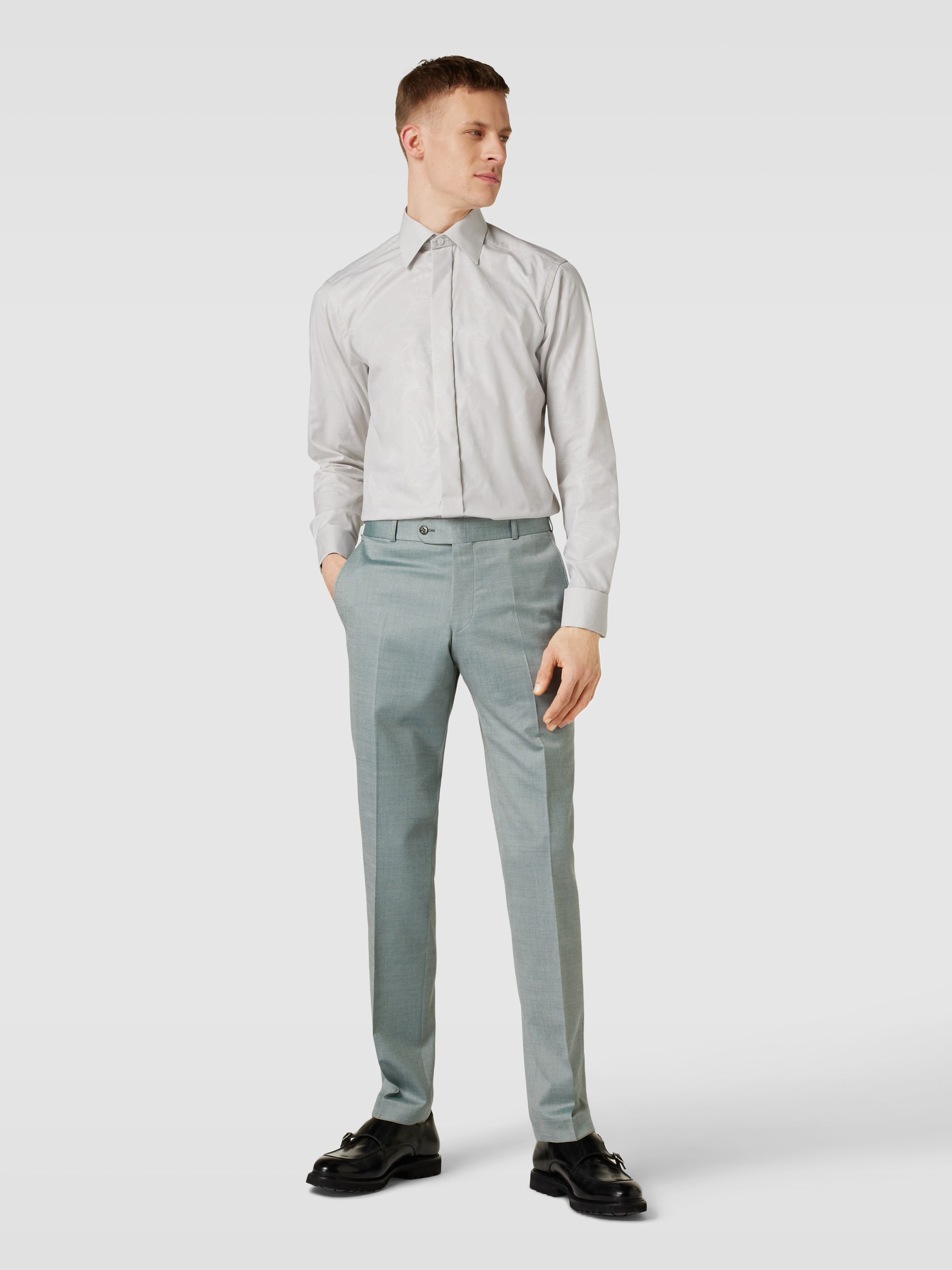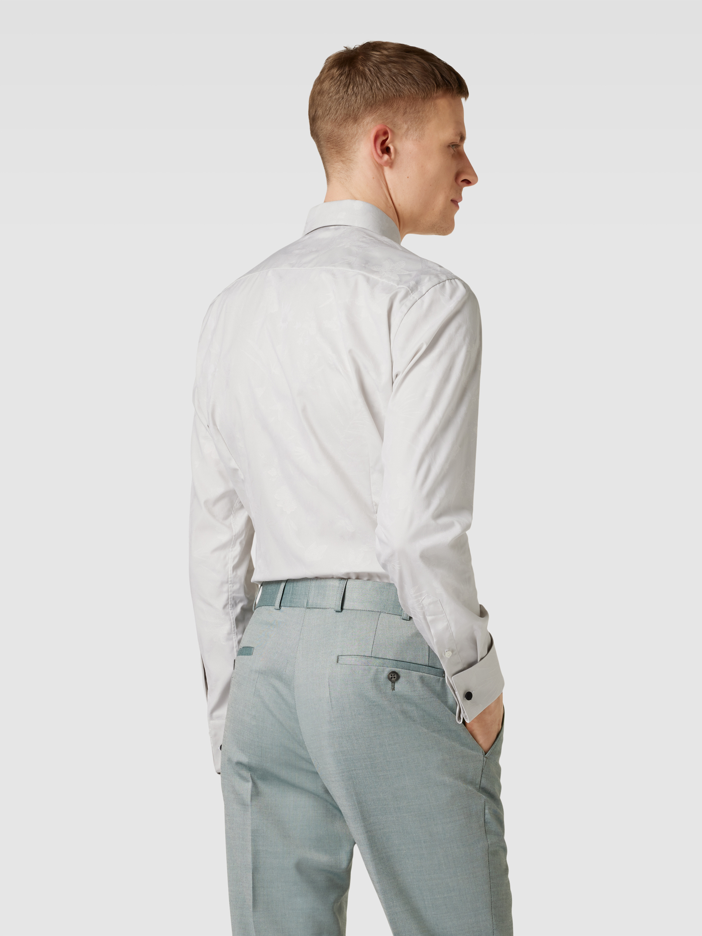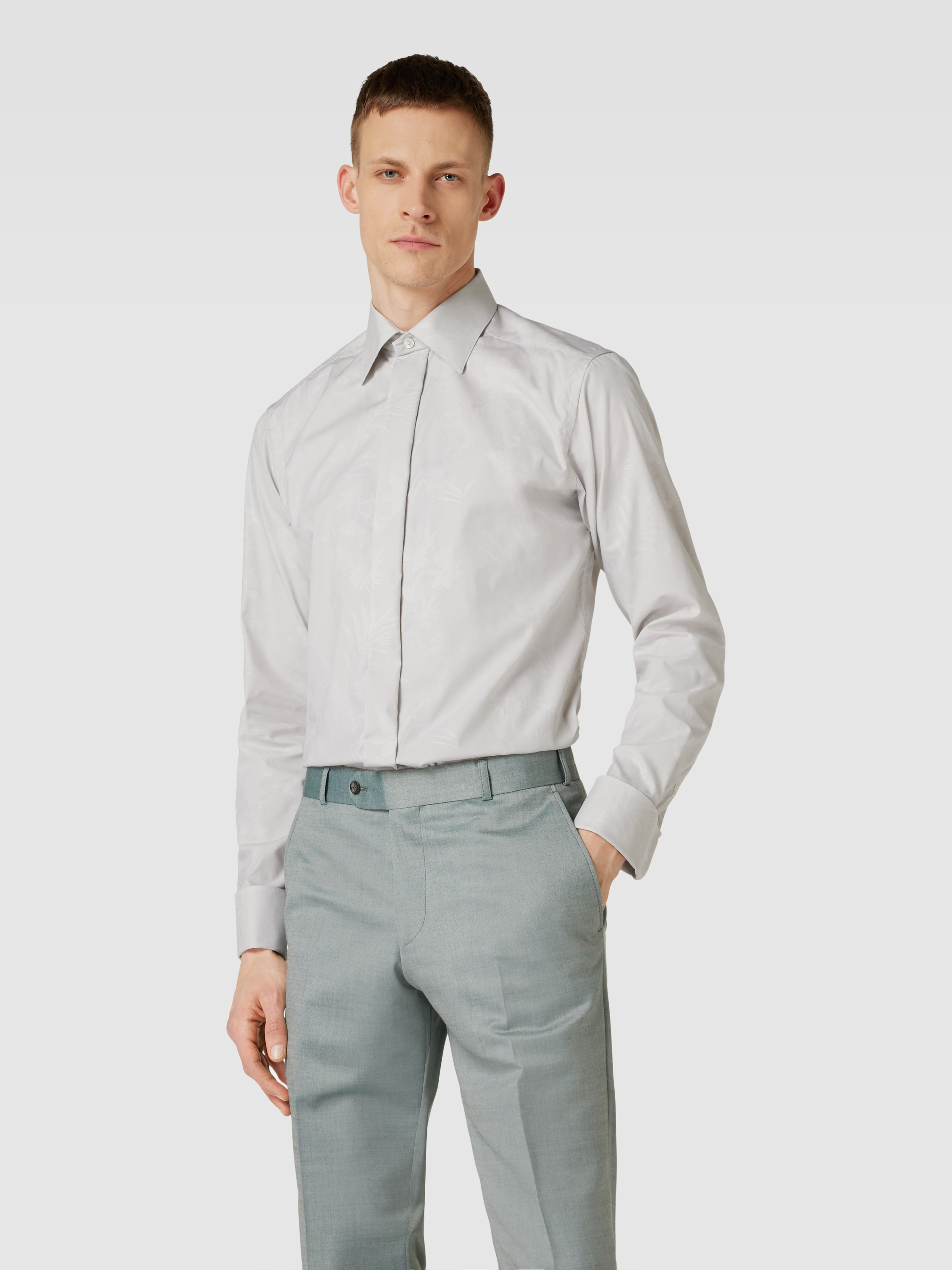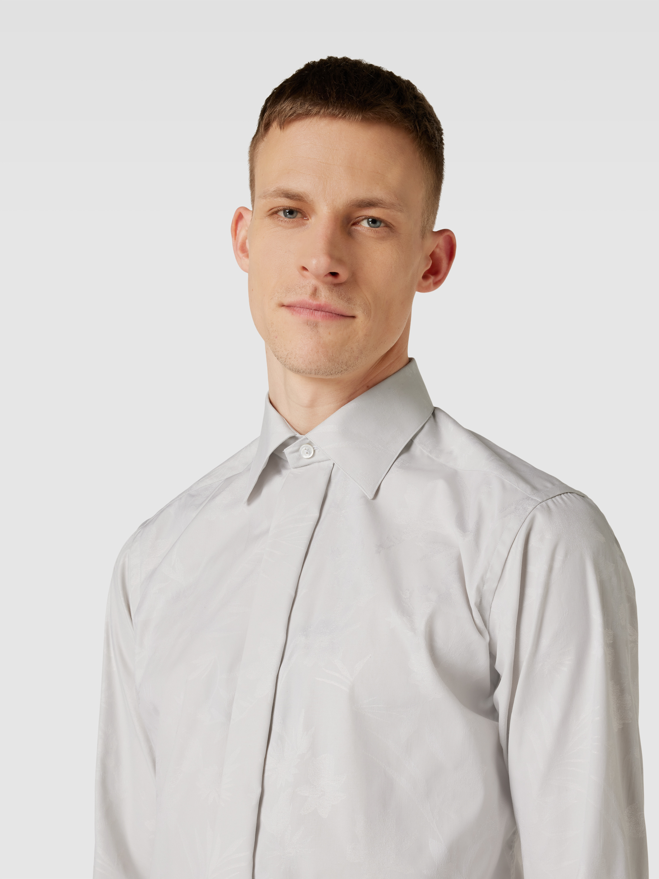 Koszula smokingowa o kroju slim fit z wysokiej jakości bawełny model ‘FLORAL JACQUARD’ - jasnoszary
