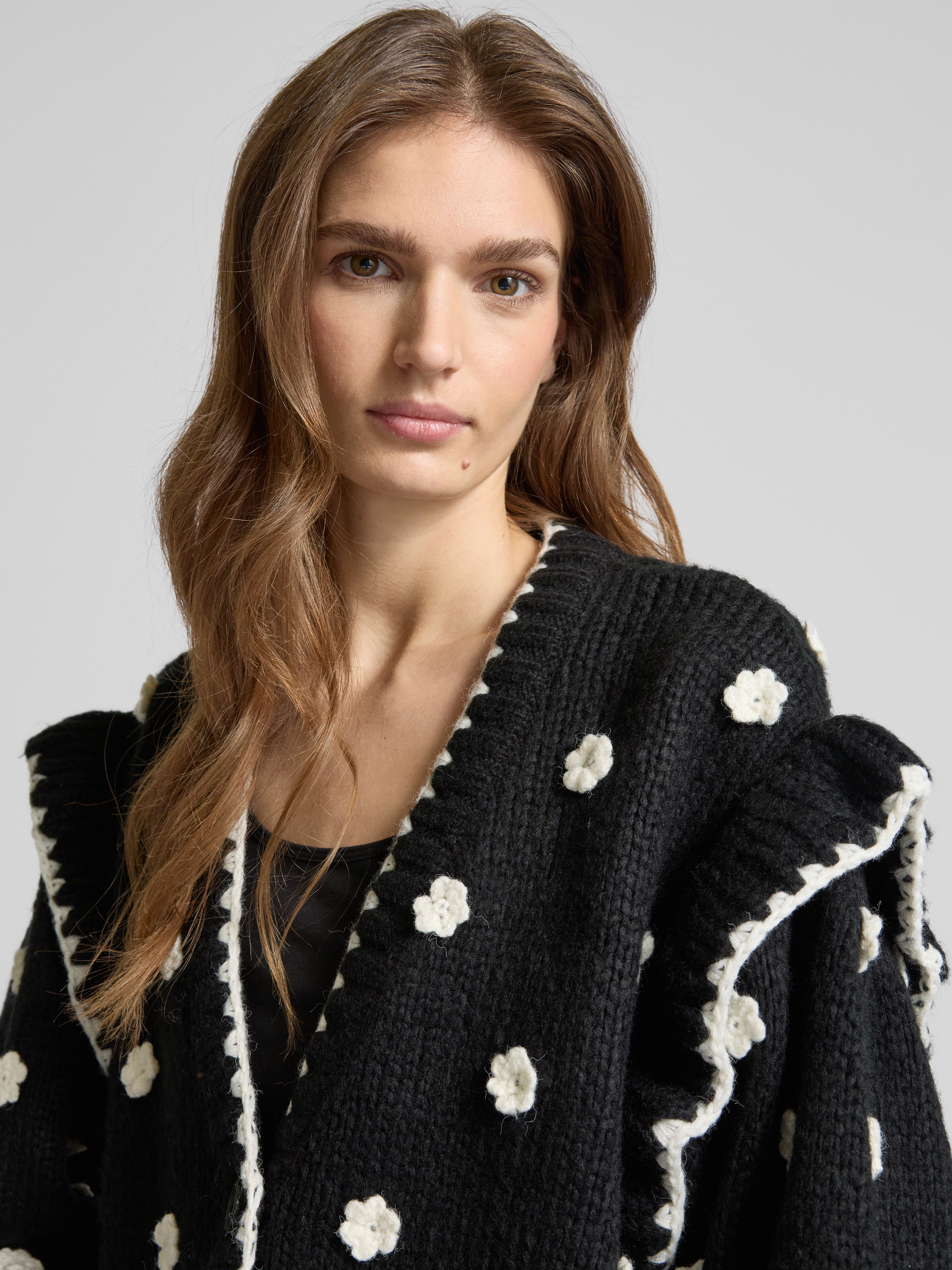 Kurtka z dzianiny z listwą guzikową - czarny