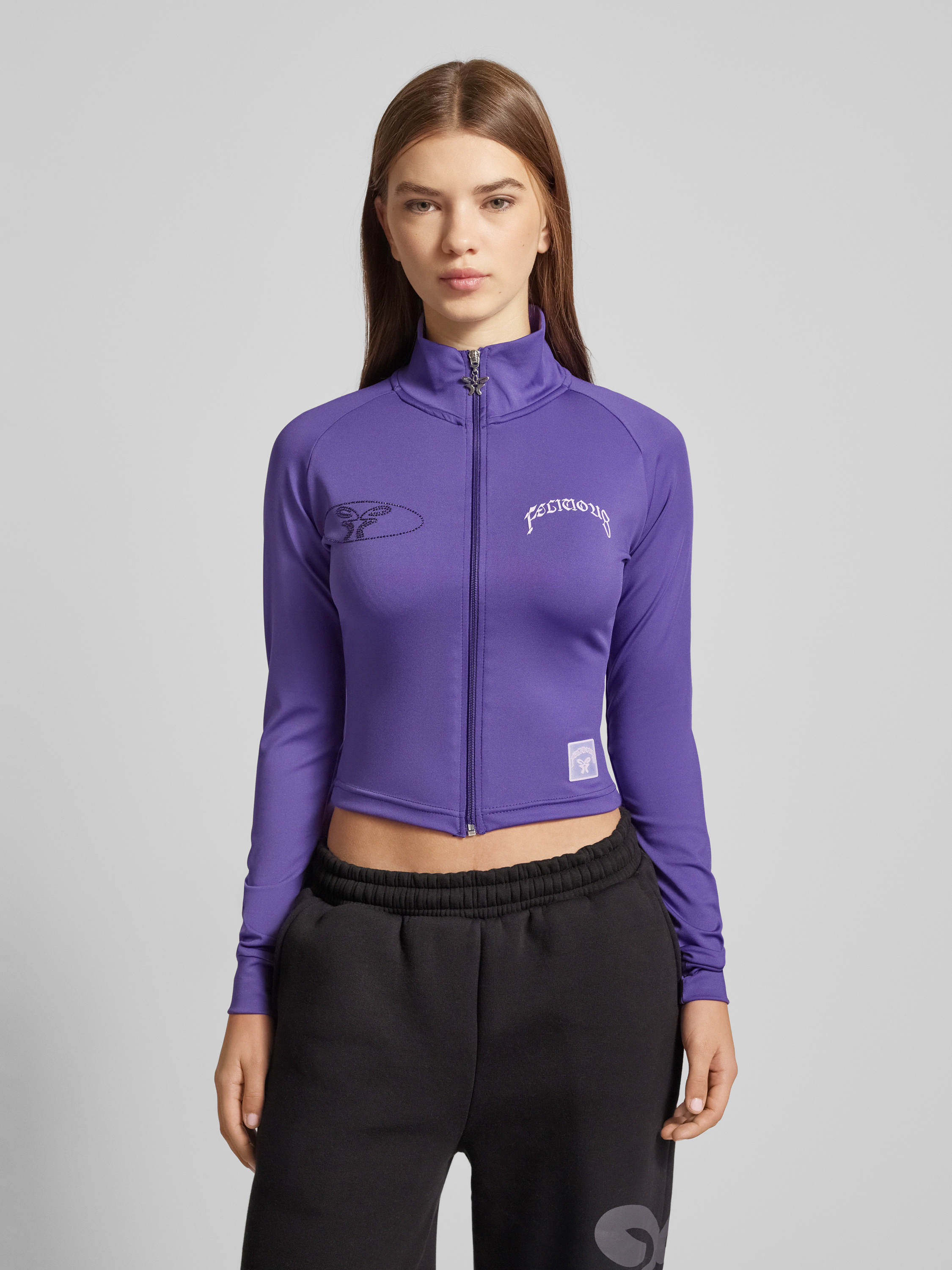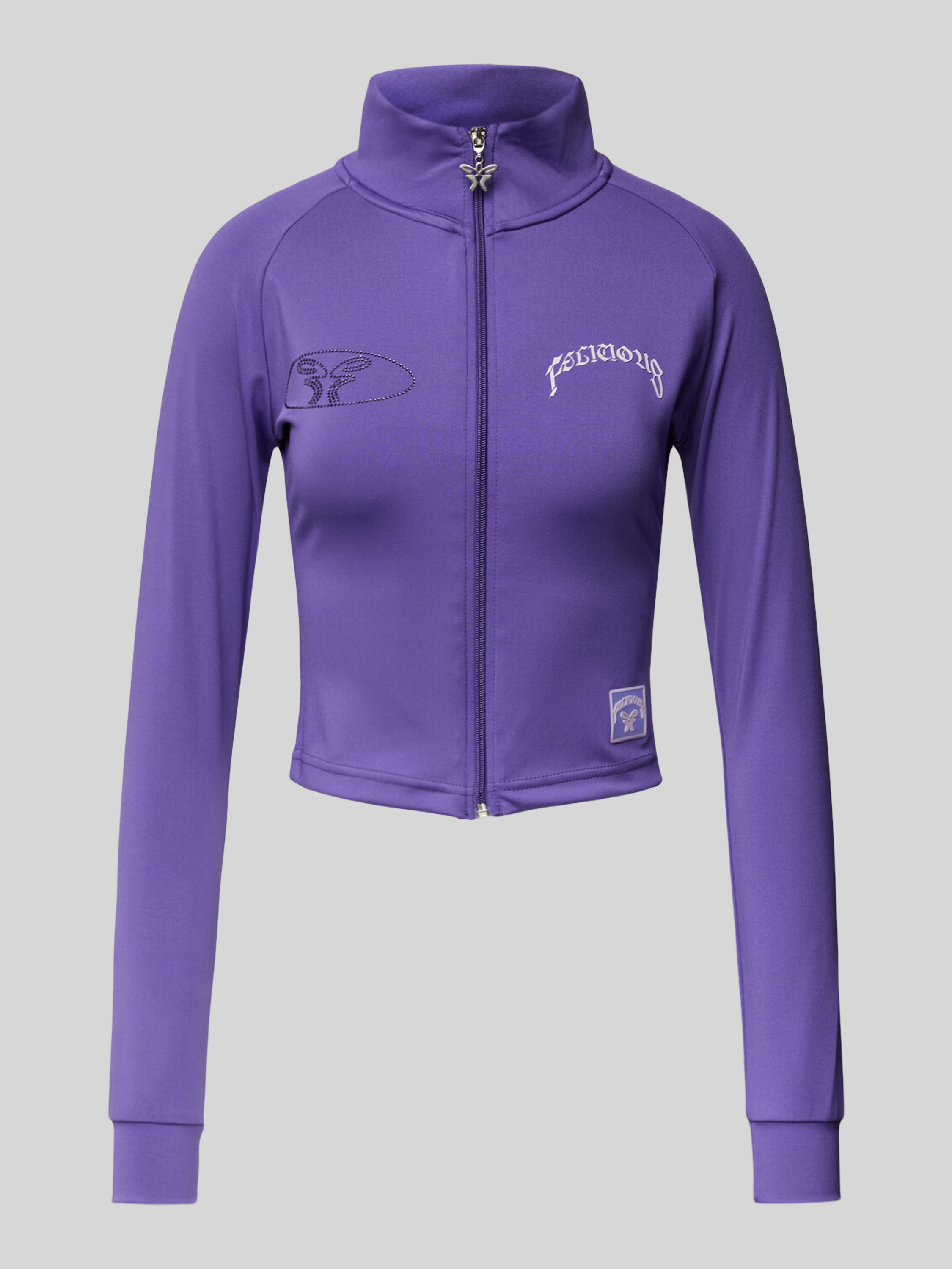 Bluza rozpinana krótka z obszyciem kamieniami stras - fioletowy