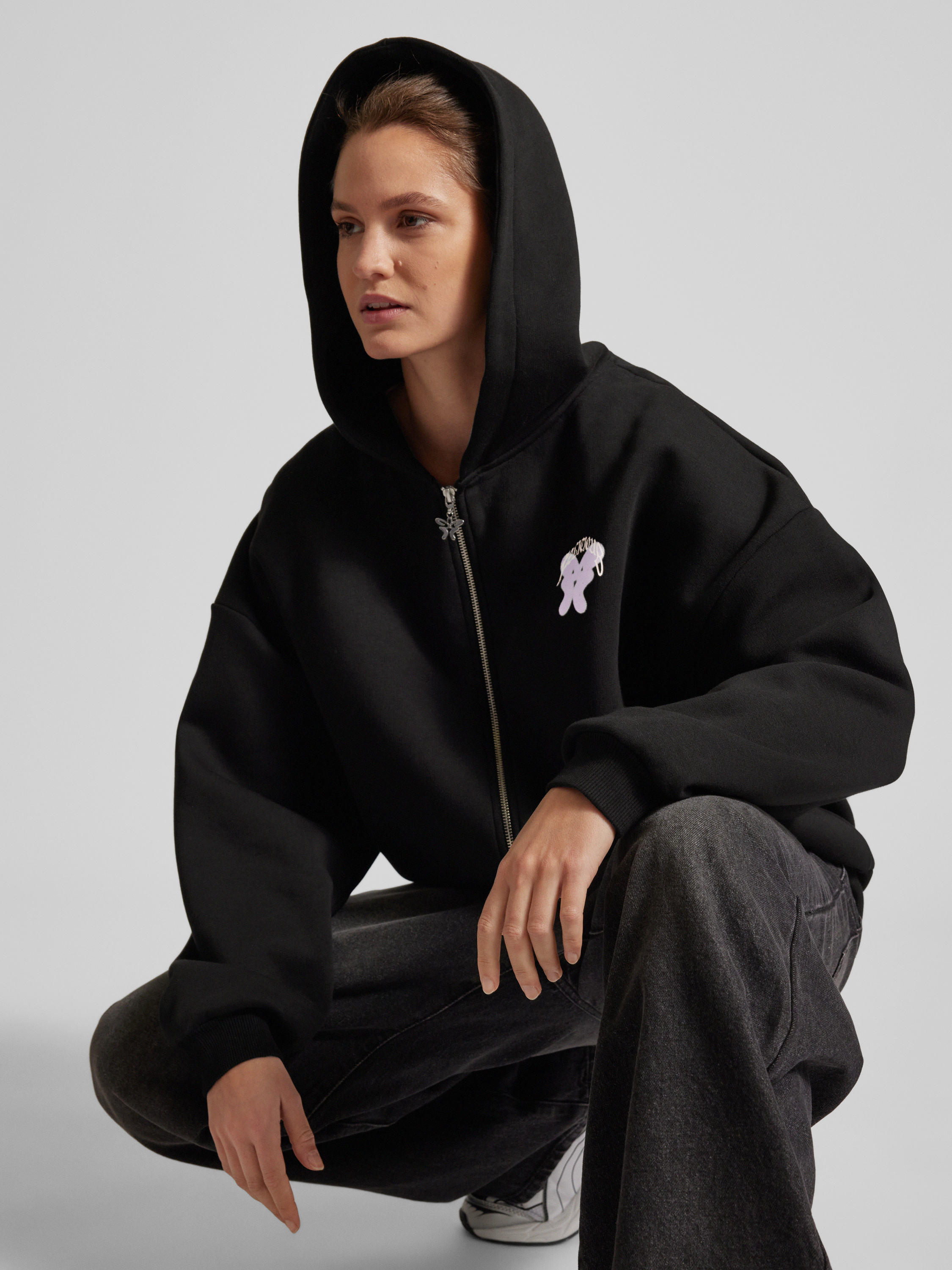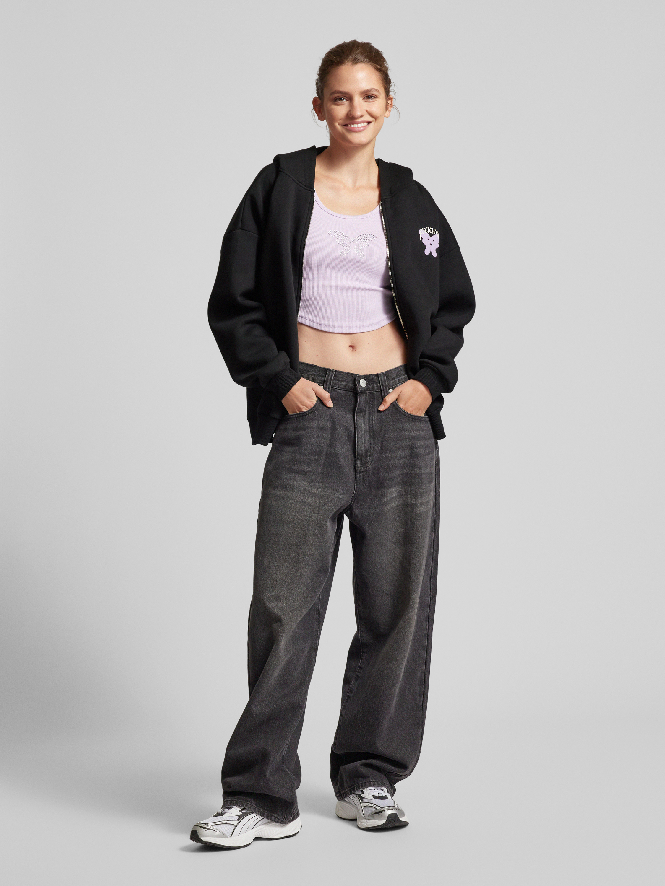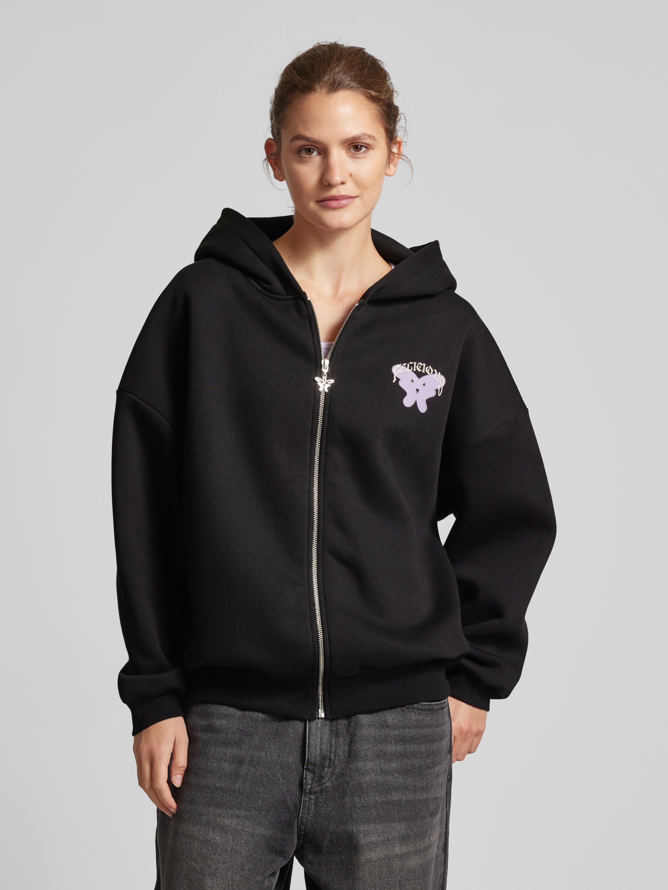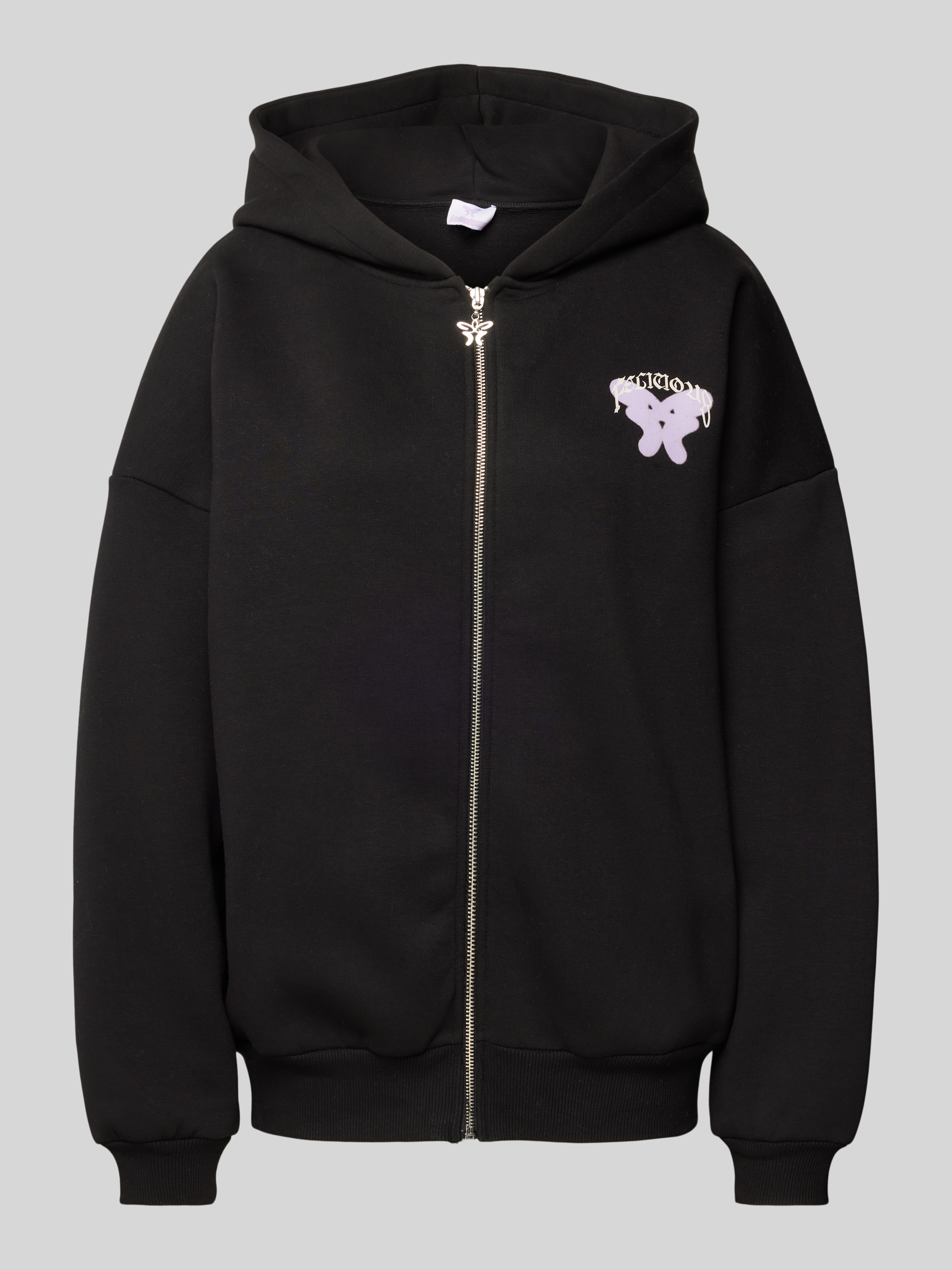 Bluza rozpinana o kroju regular fit z nadrukiem z motywem - czarny