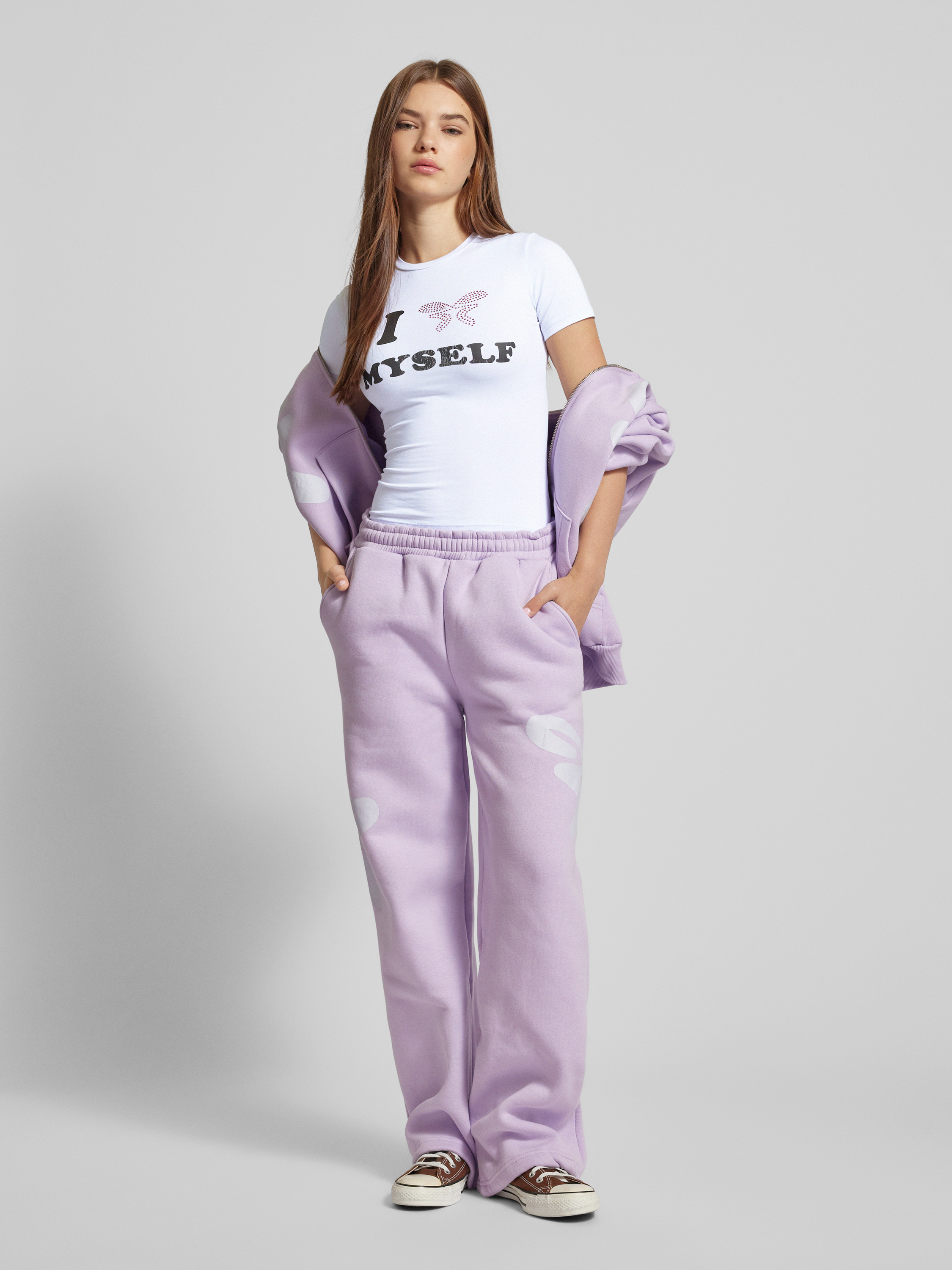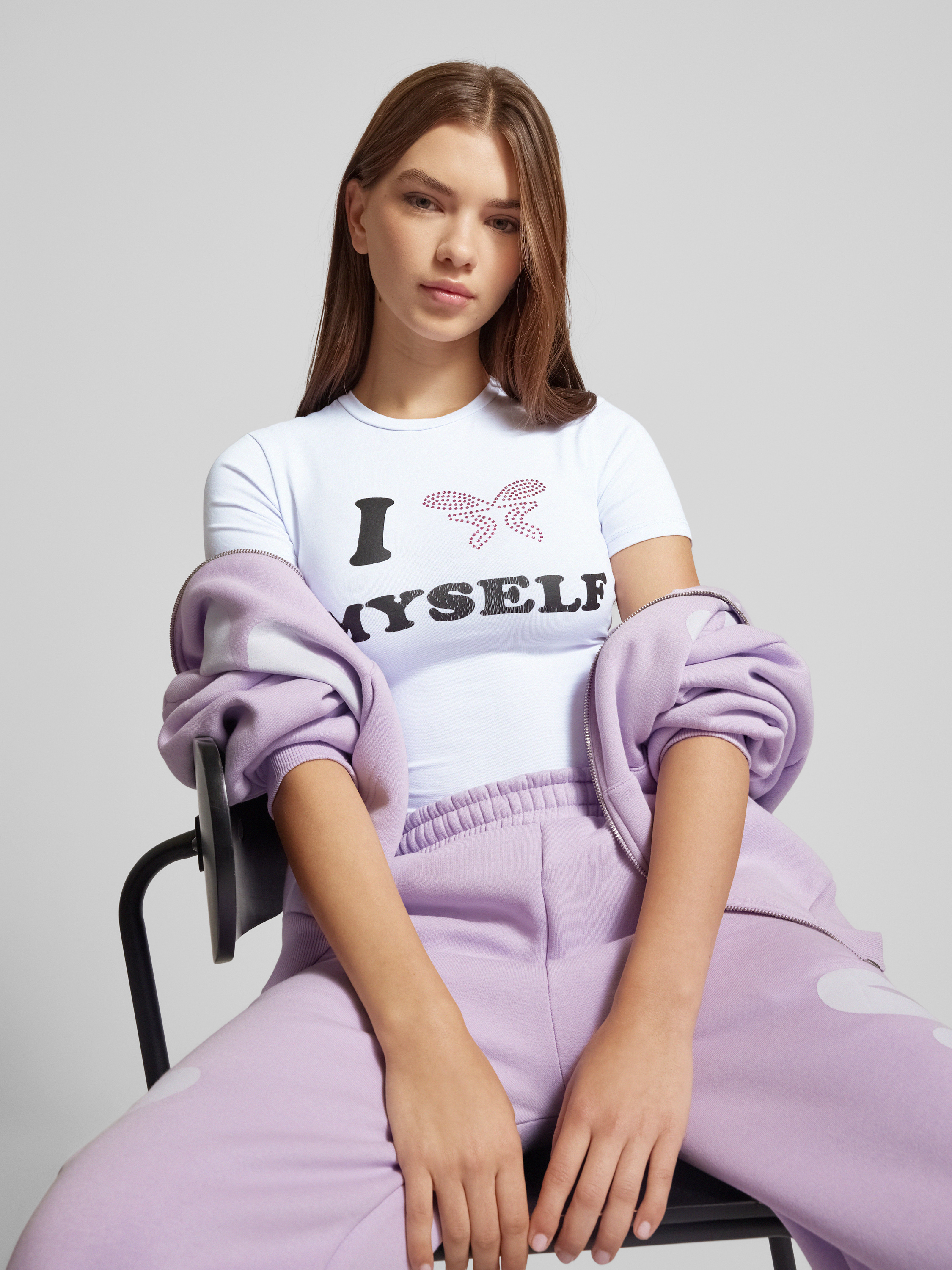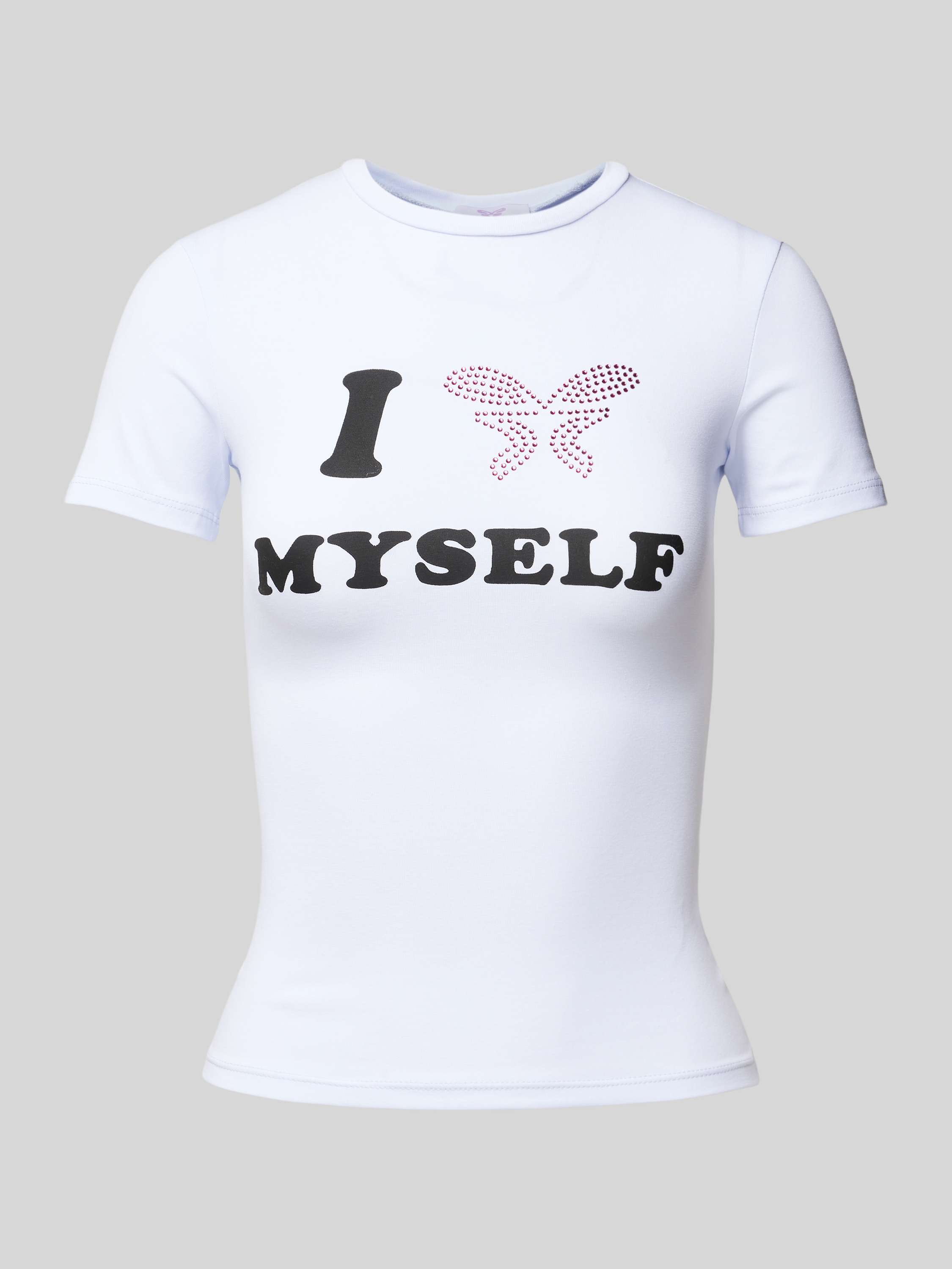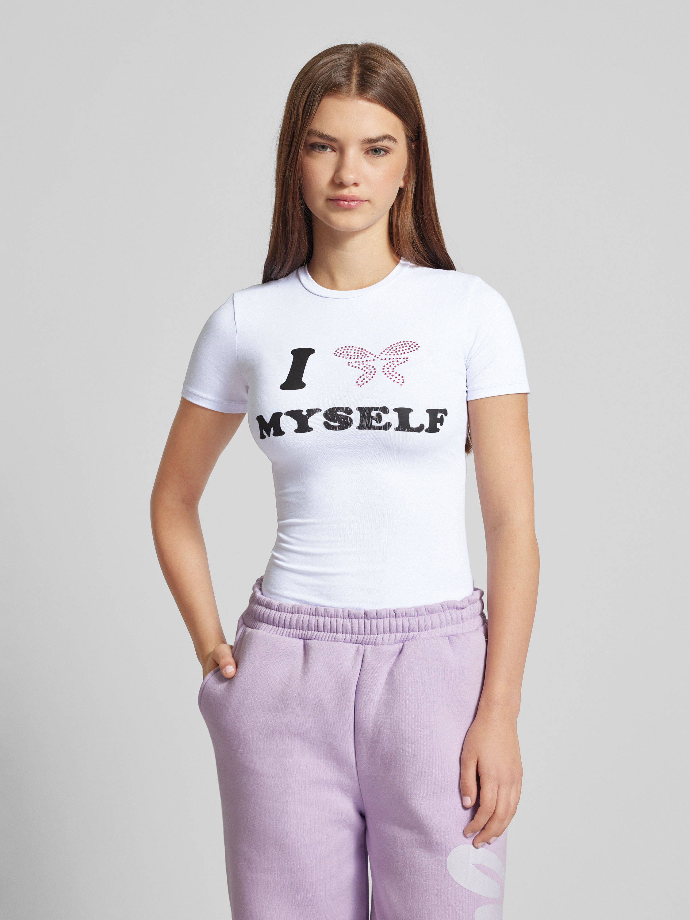 T-shirt z obszyciem kamieniami stras model ‘Love Yourself'’ - biały