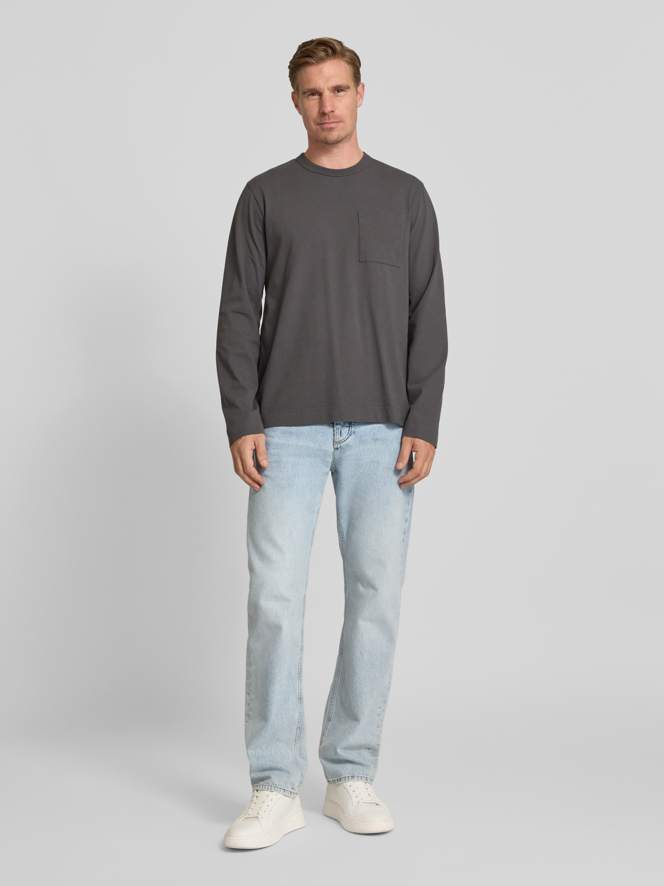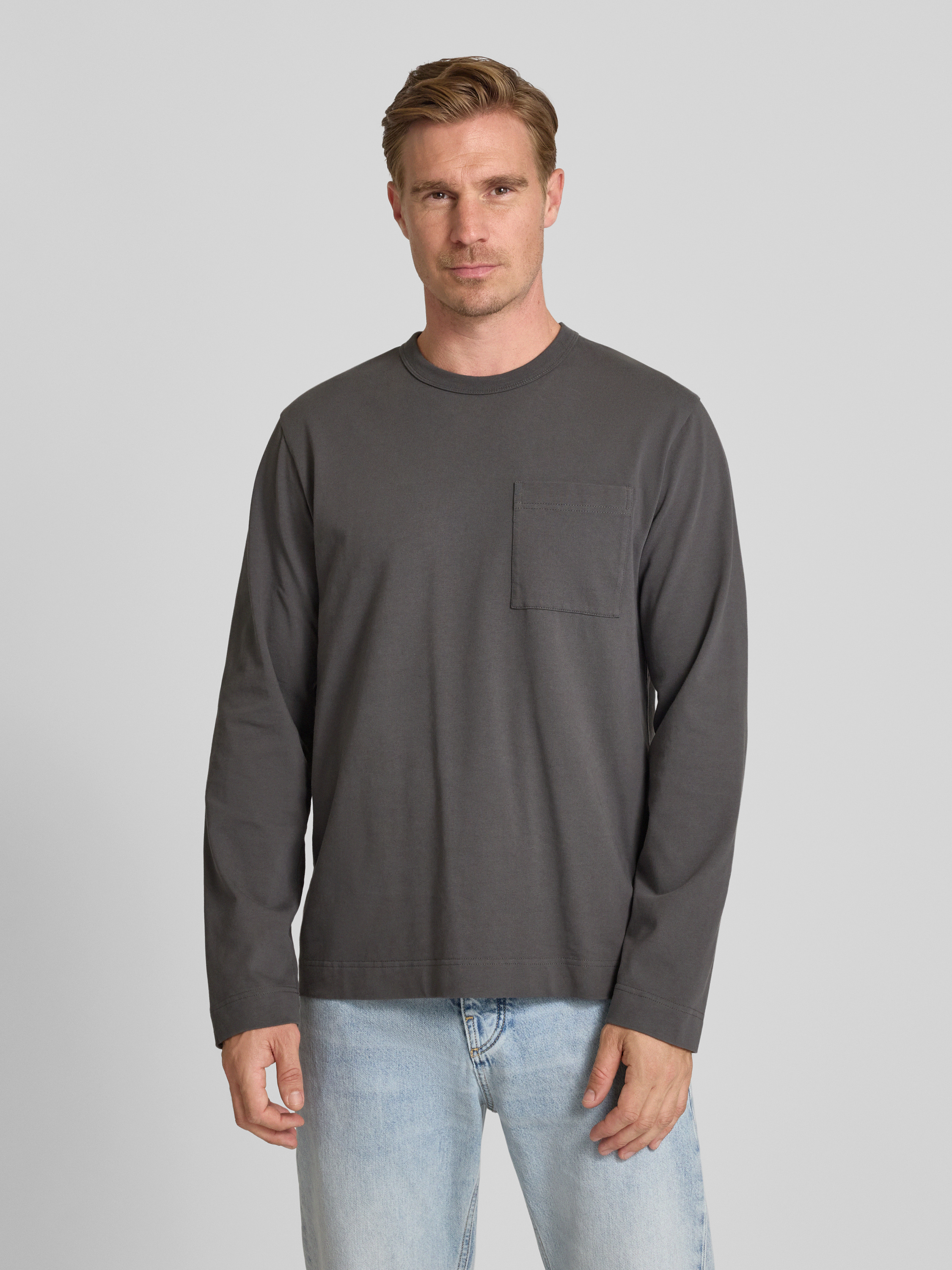 Bluzka z długim rękawem i kieszenią na piersi model ‘PLANET’ - antracytowy