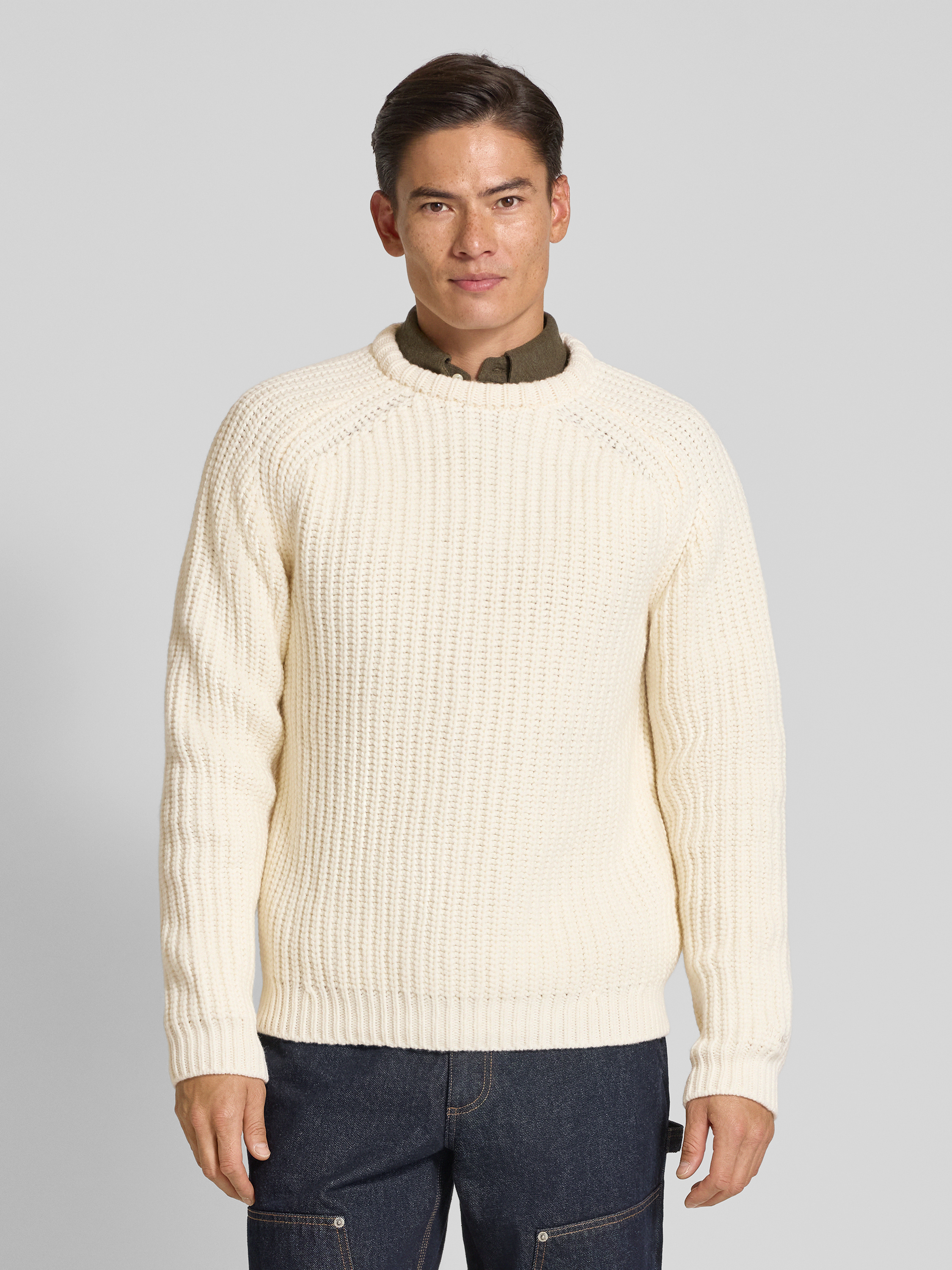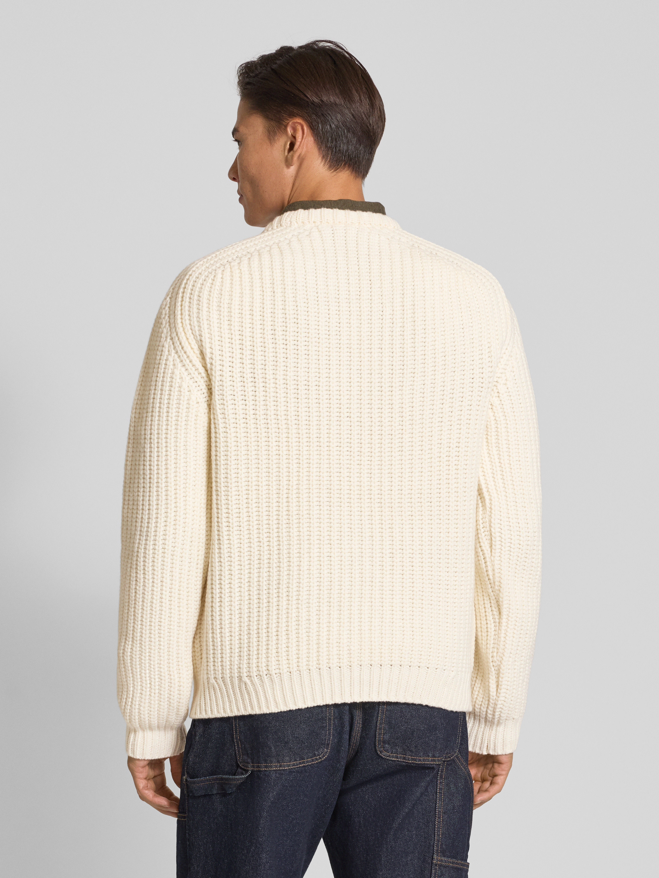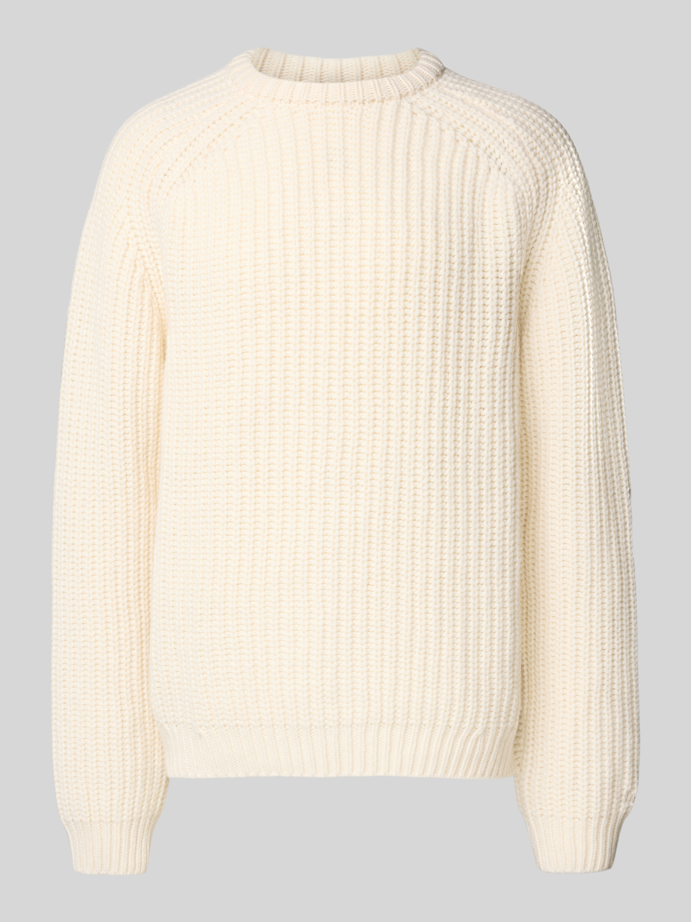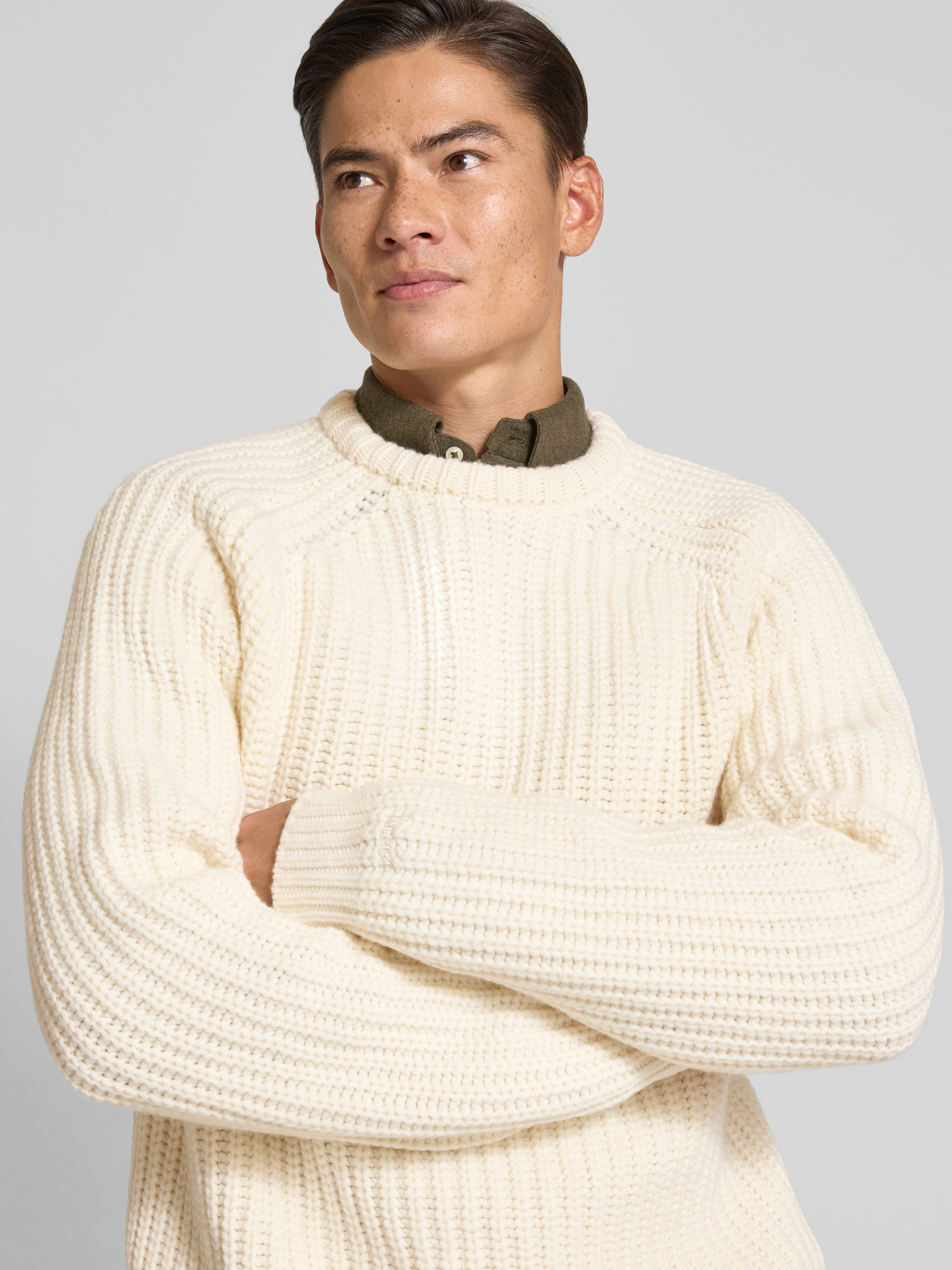 Sweter z dzianiny z mieszanki wełny lana z okrągłym dekoltem - złamany biały