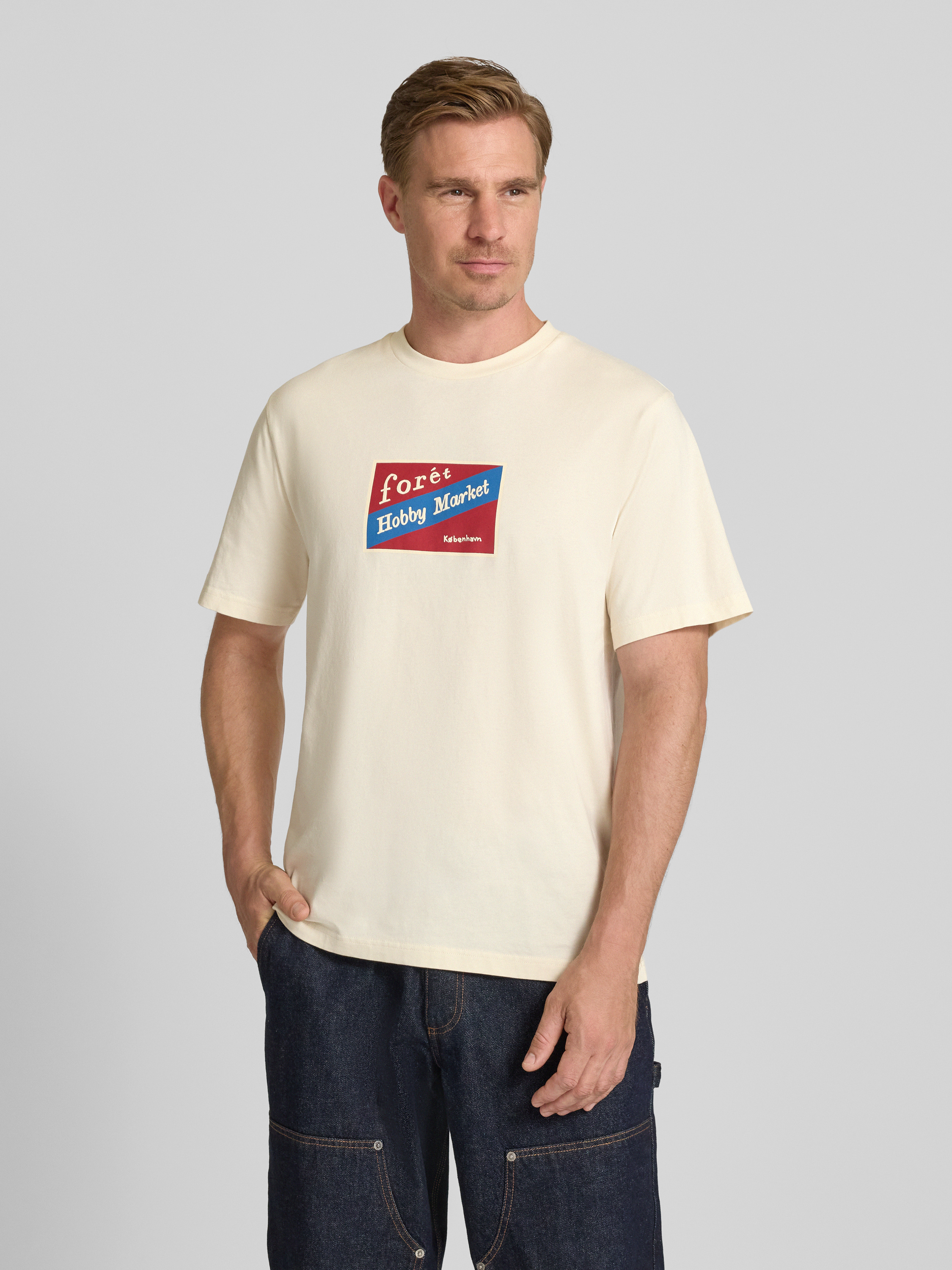 T-shirt z wełny Escorial z nadrukiem z motywem model ‘HOBBY’ - złamany biały