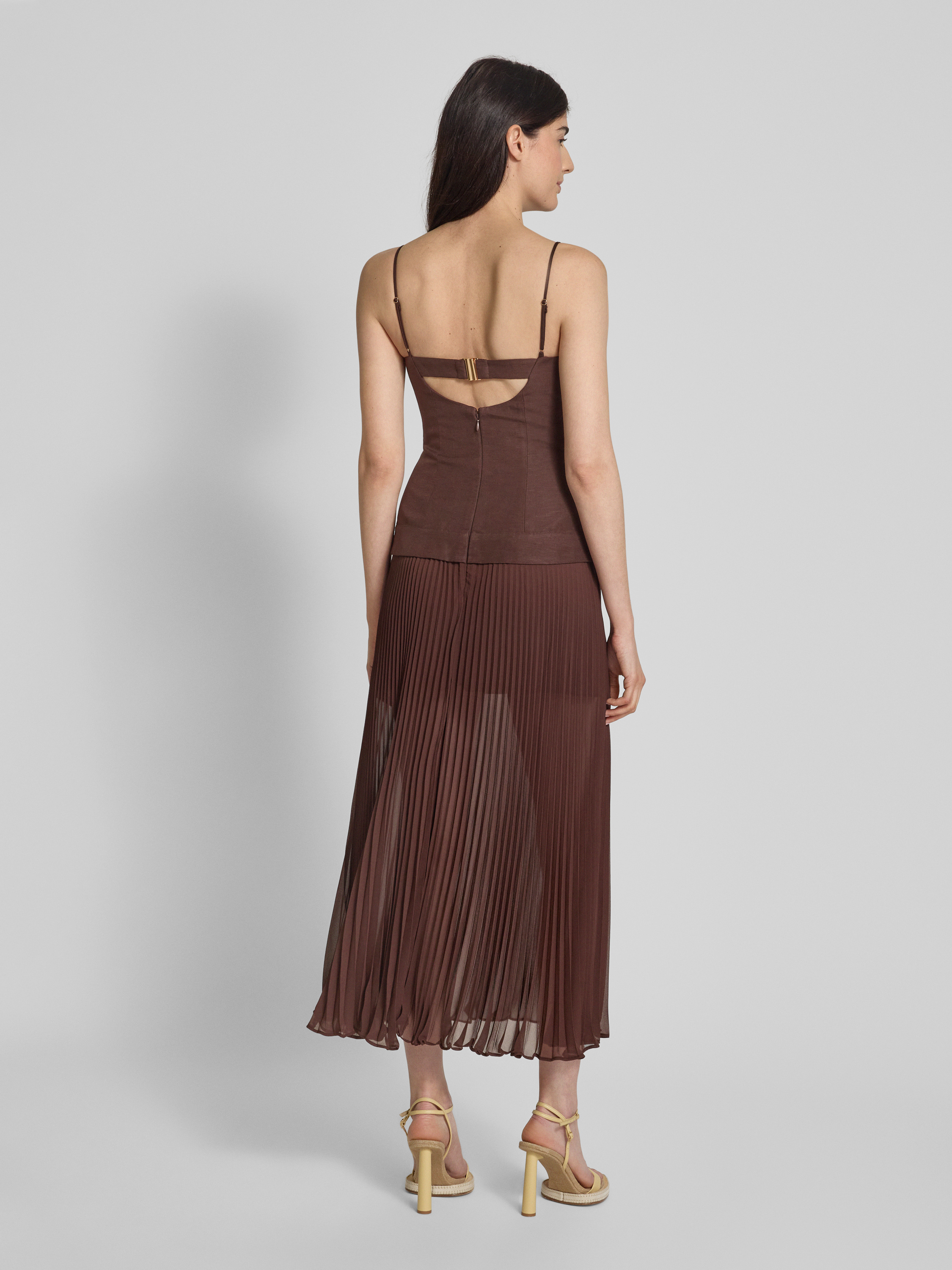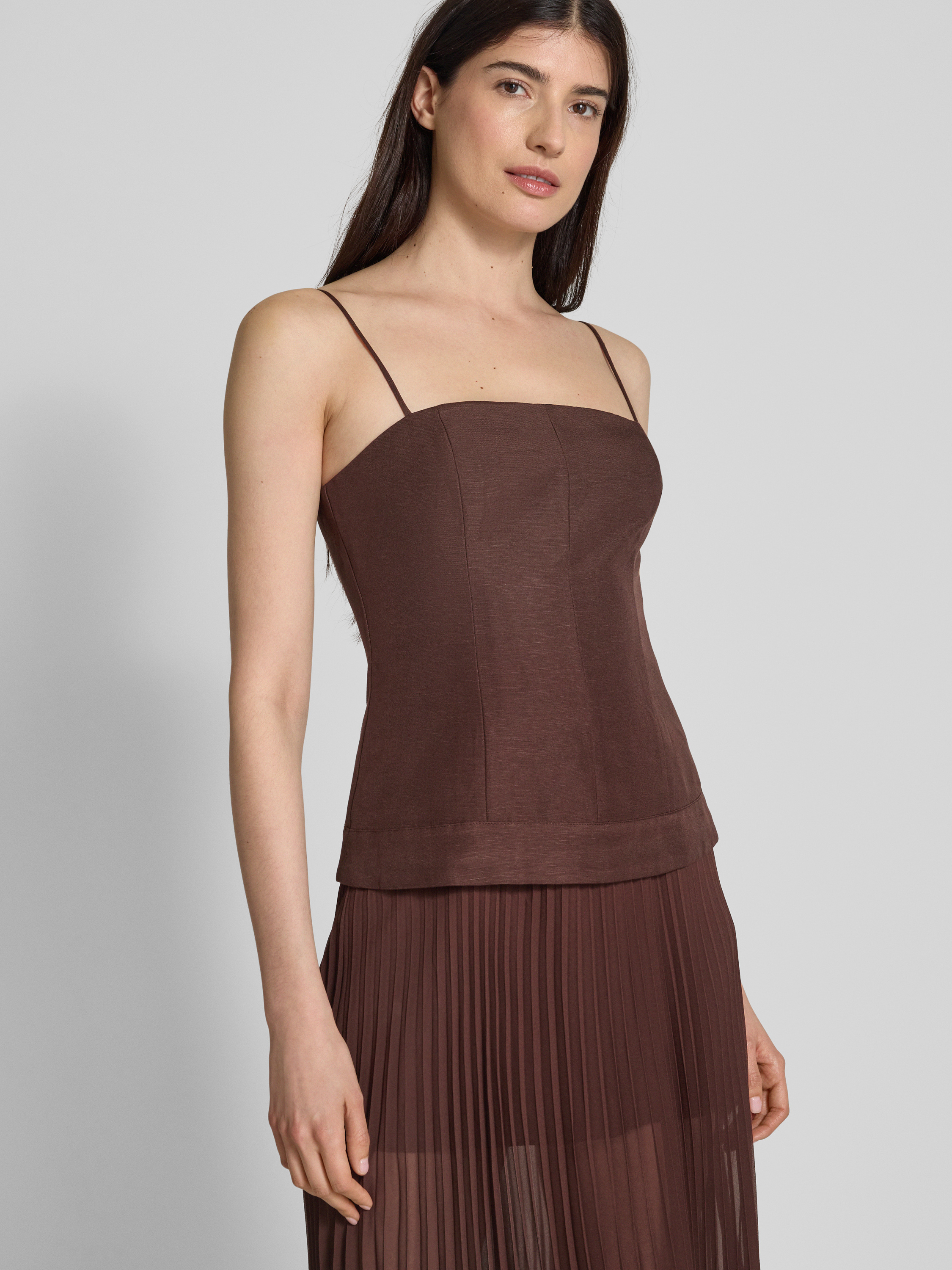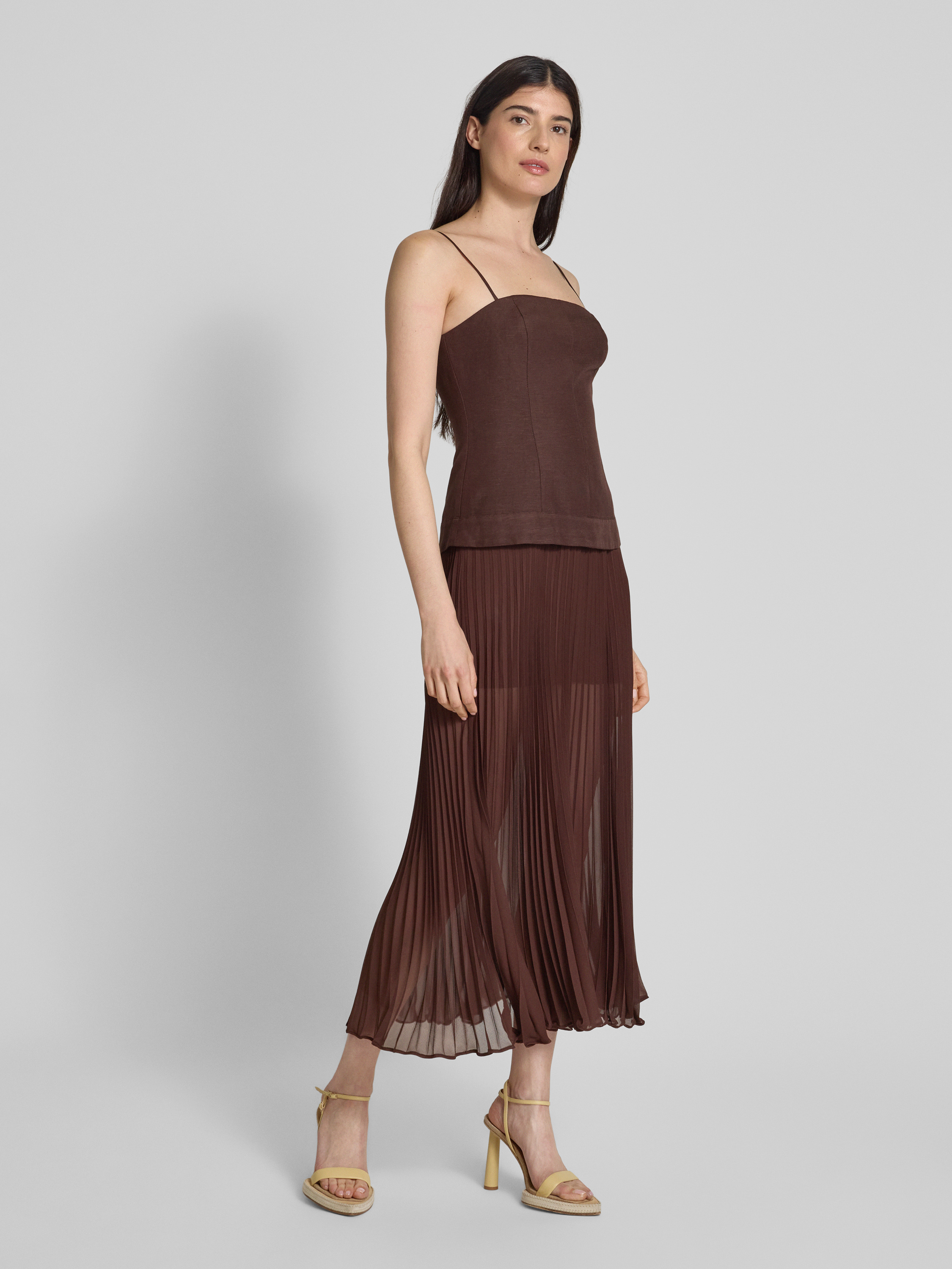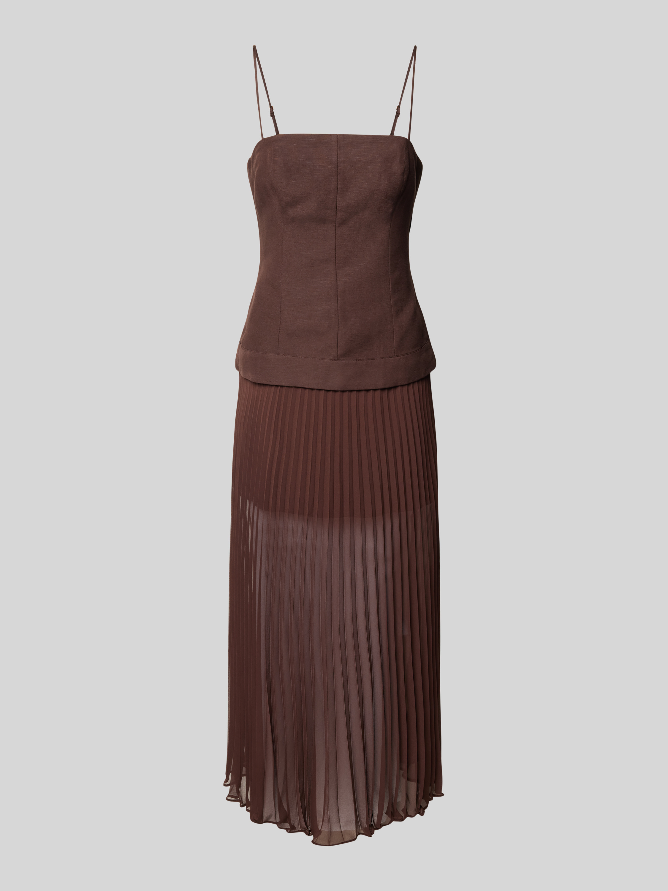 Sukienka koktajlowa lniana z plisami - czekoladowy
