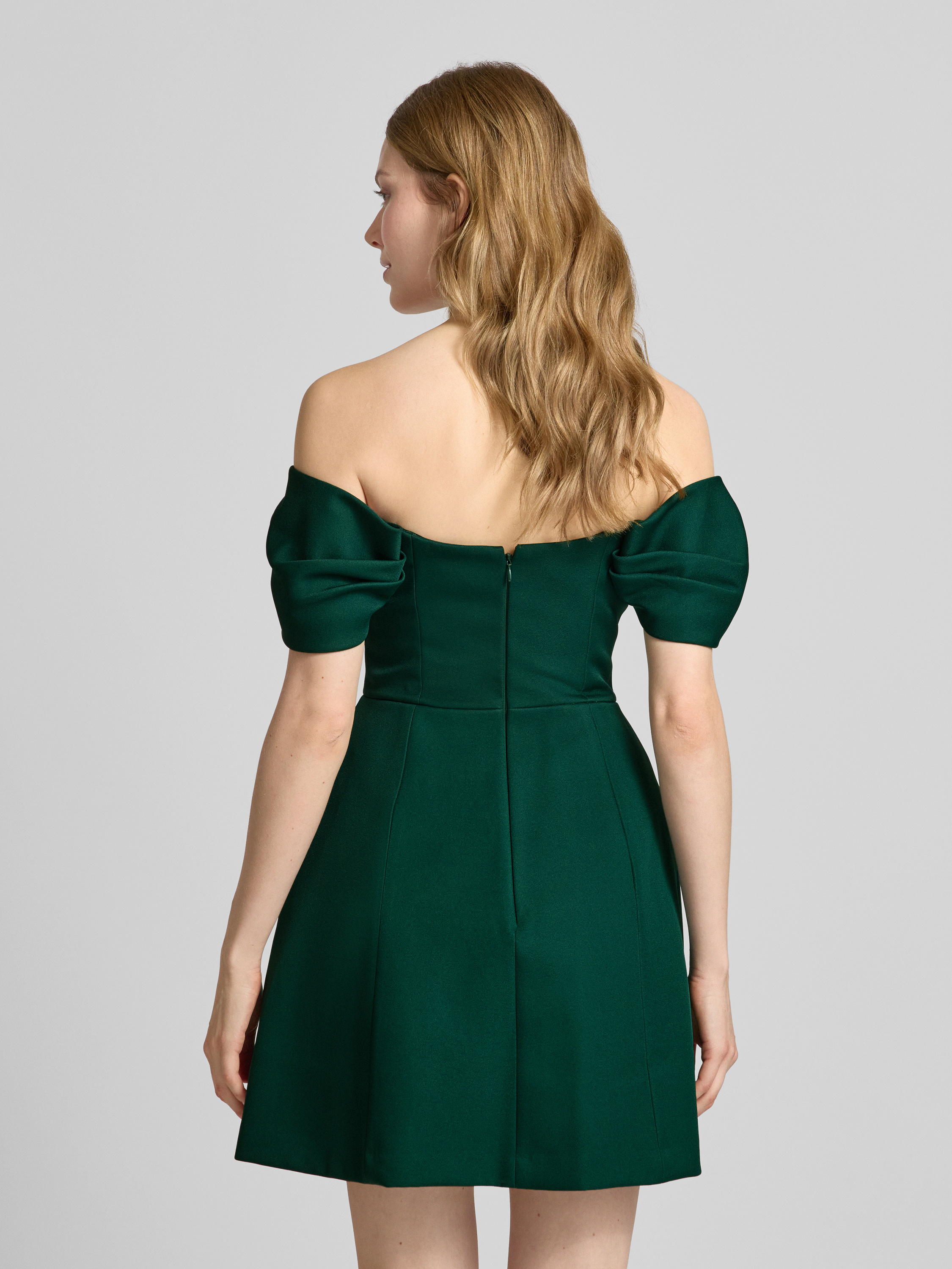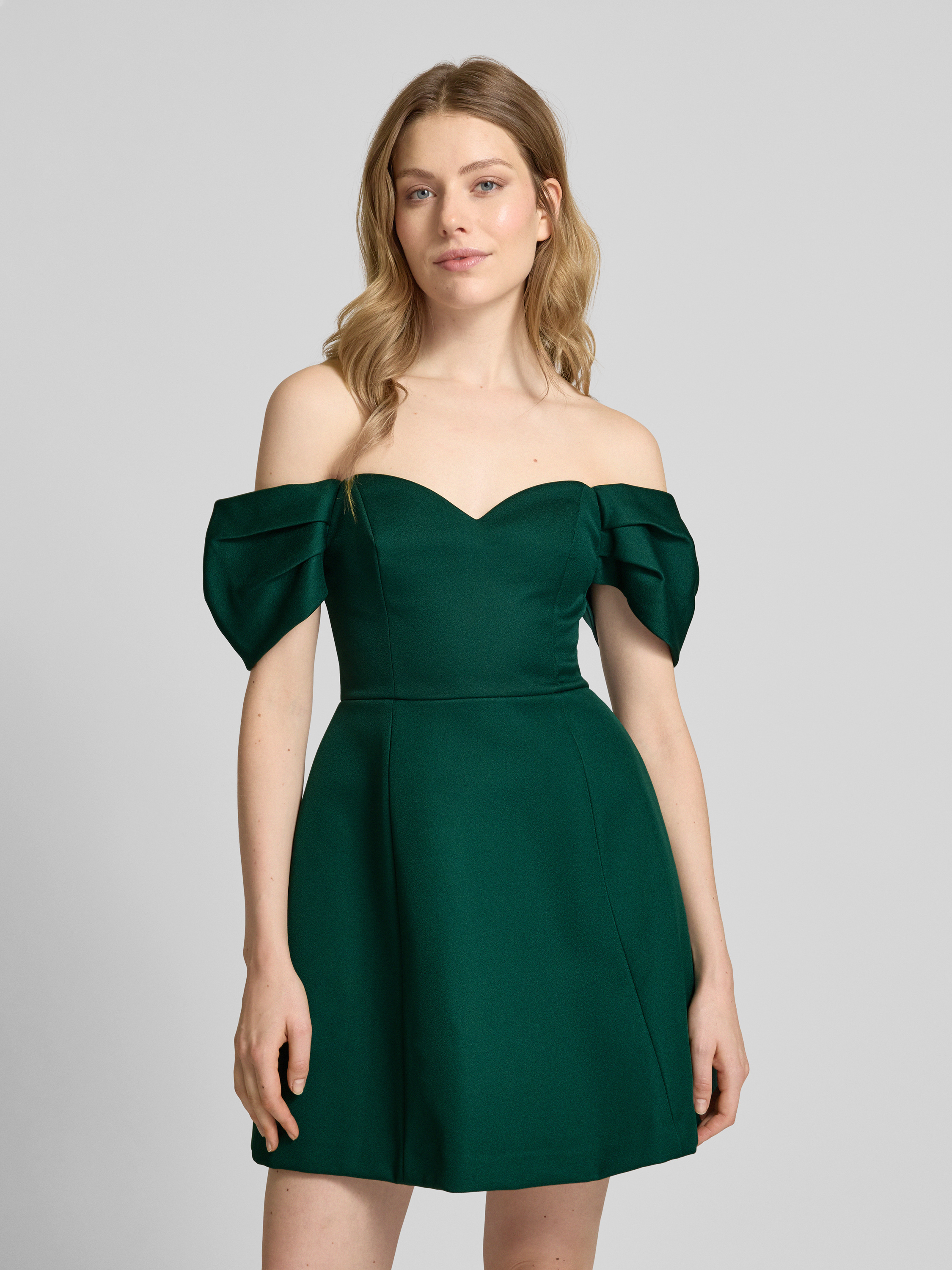 Sukienka koktajlowa z odkrytymi ramionami i zakładkami - ciemnozielony
