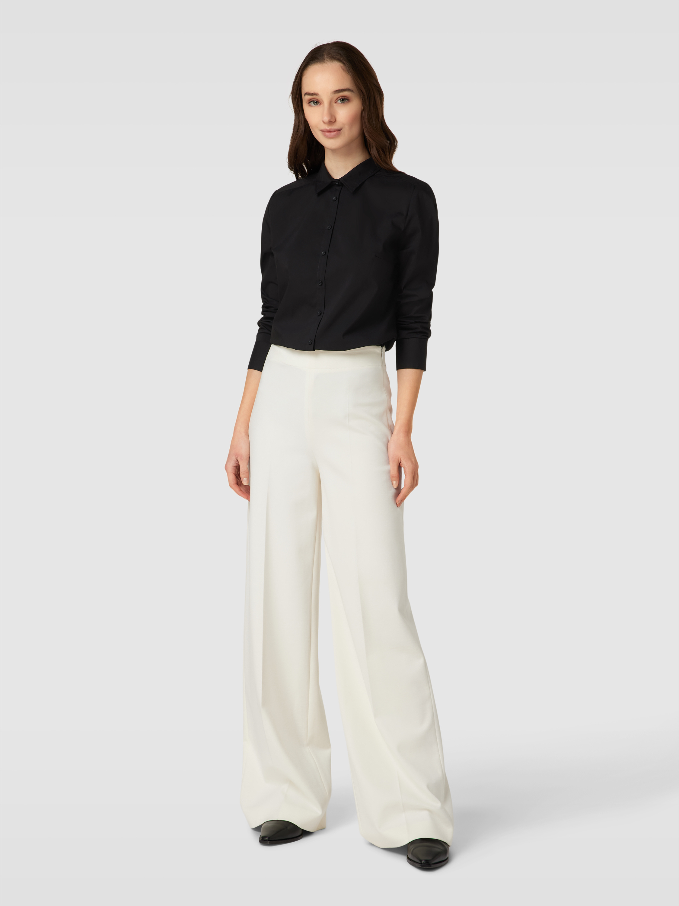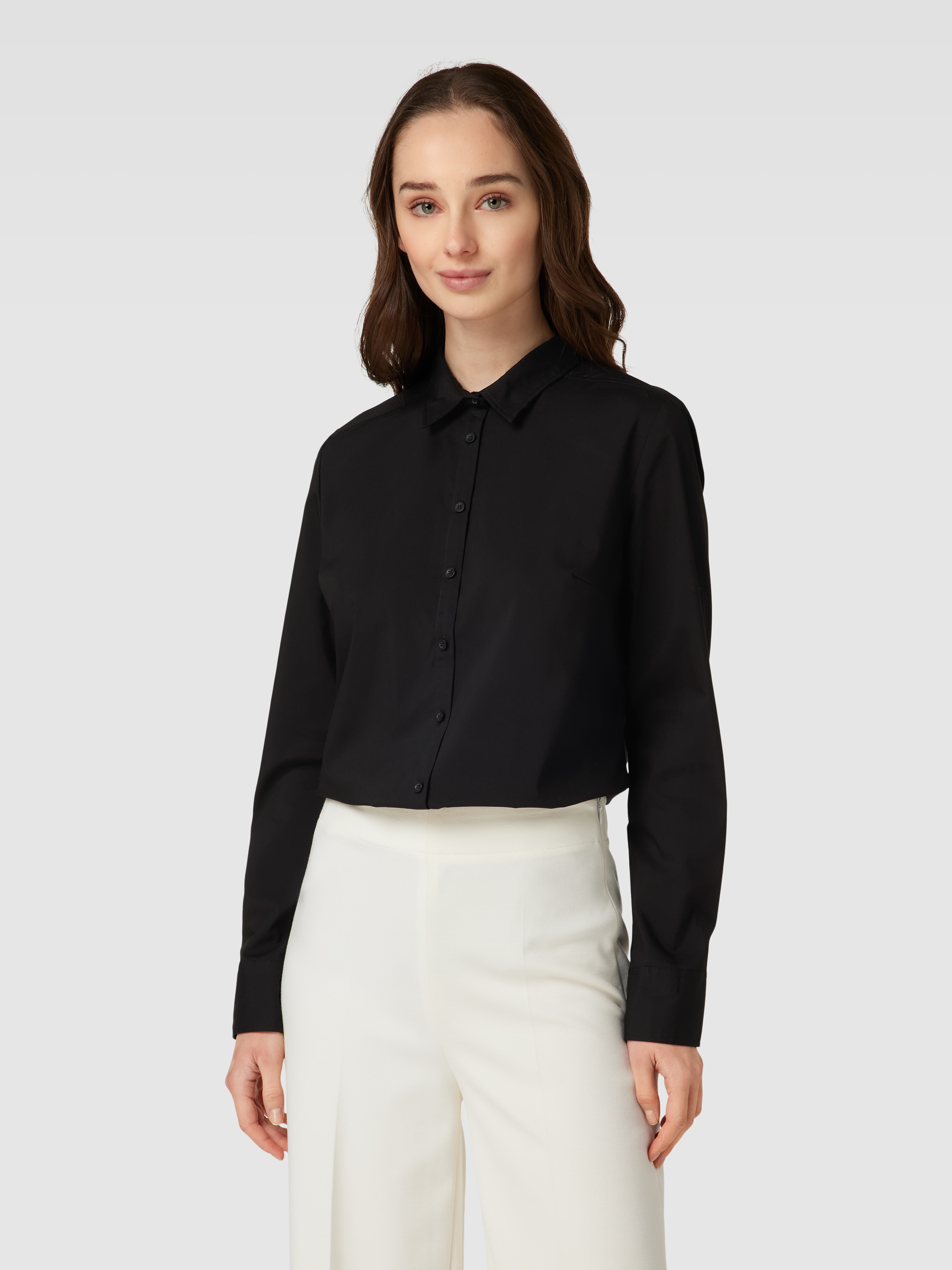 Bluzka koszulowa z dodatkiem streczu - czarny