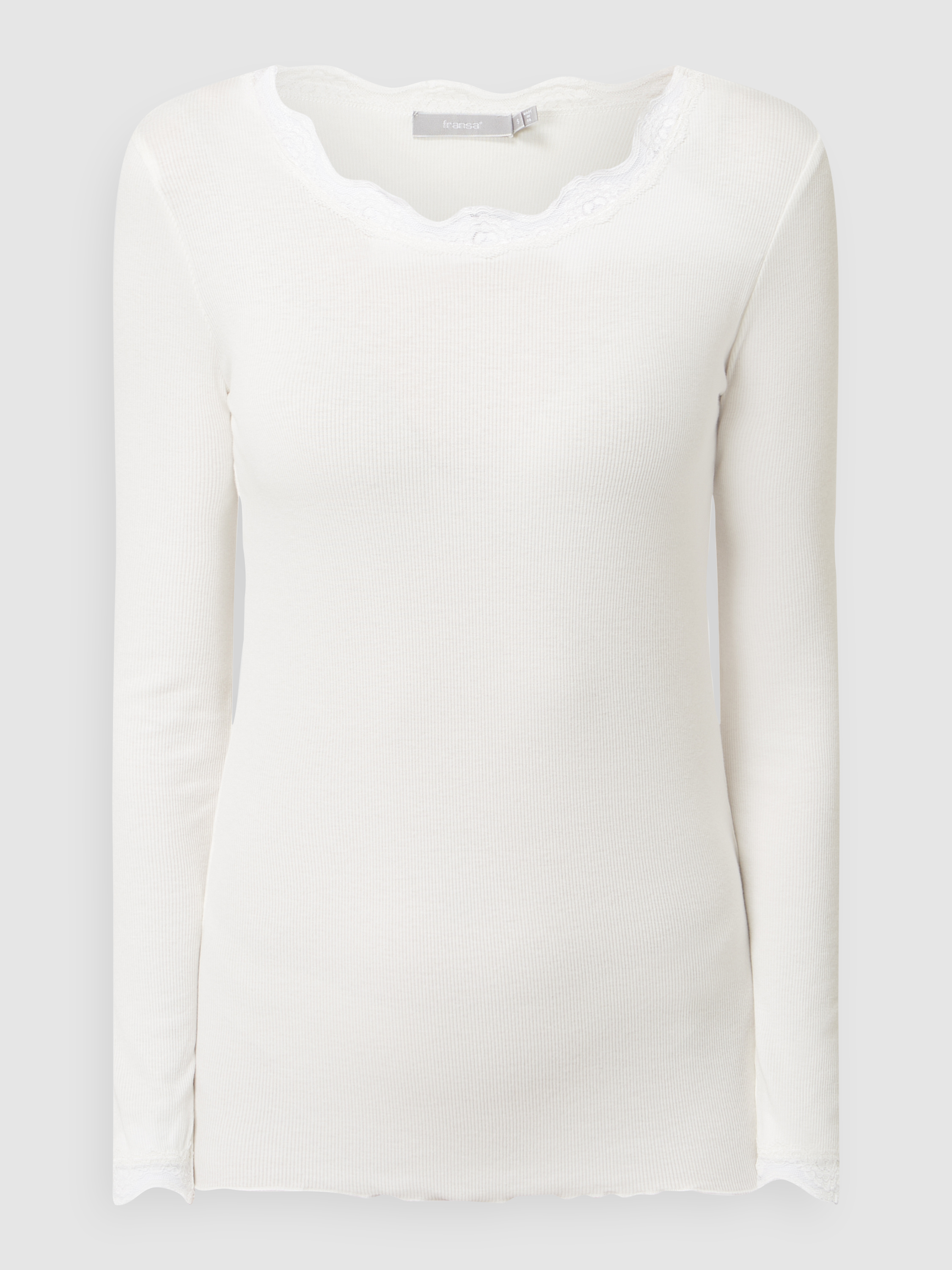 Bluzka z długim rękawem i prążkowaniem - złamany biały