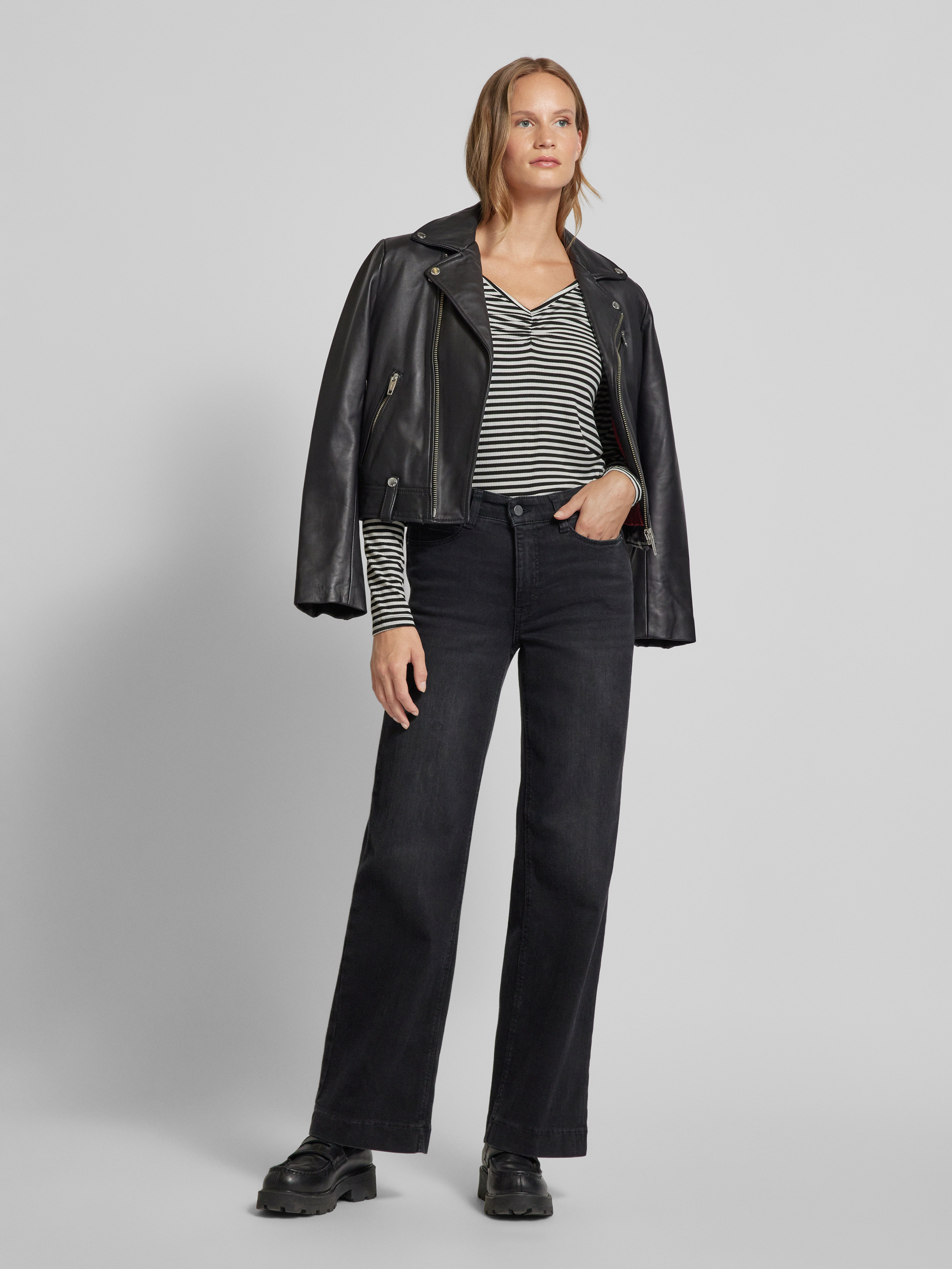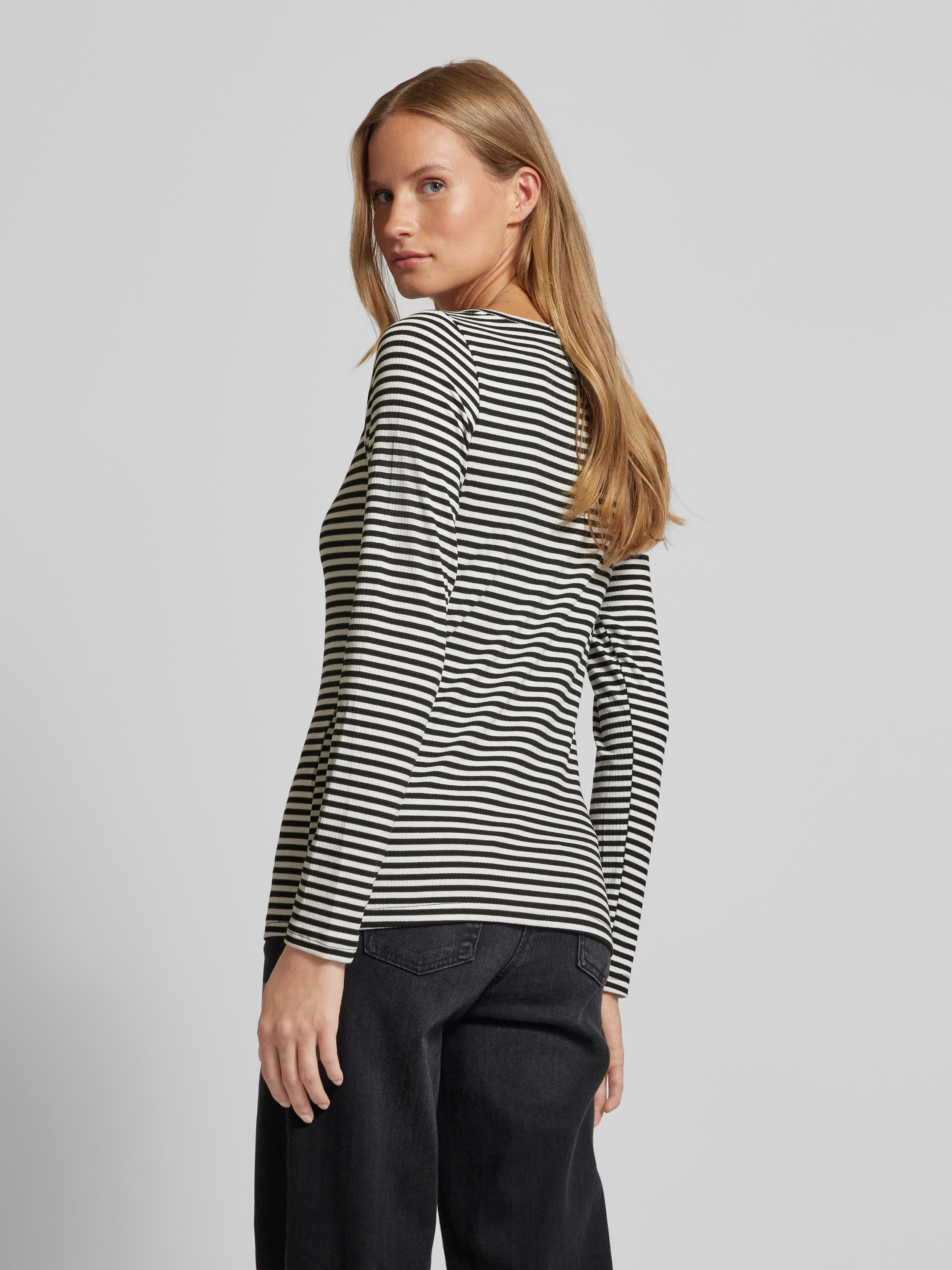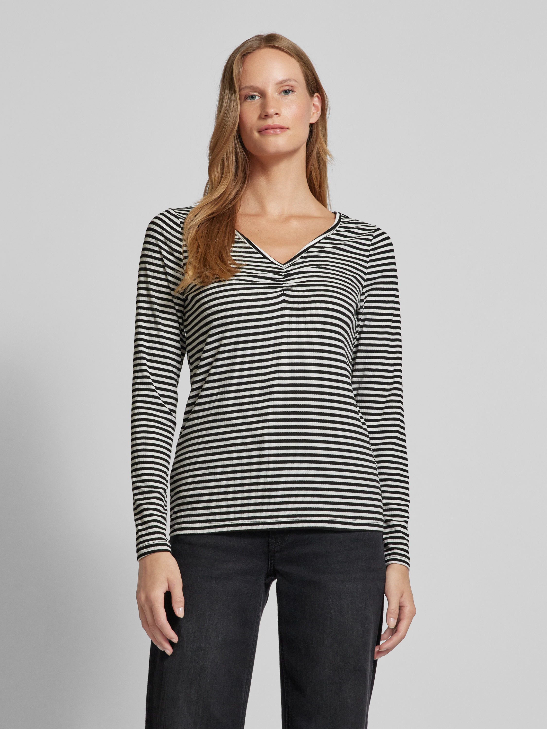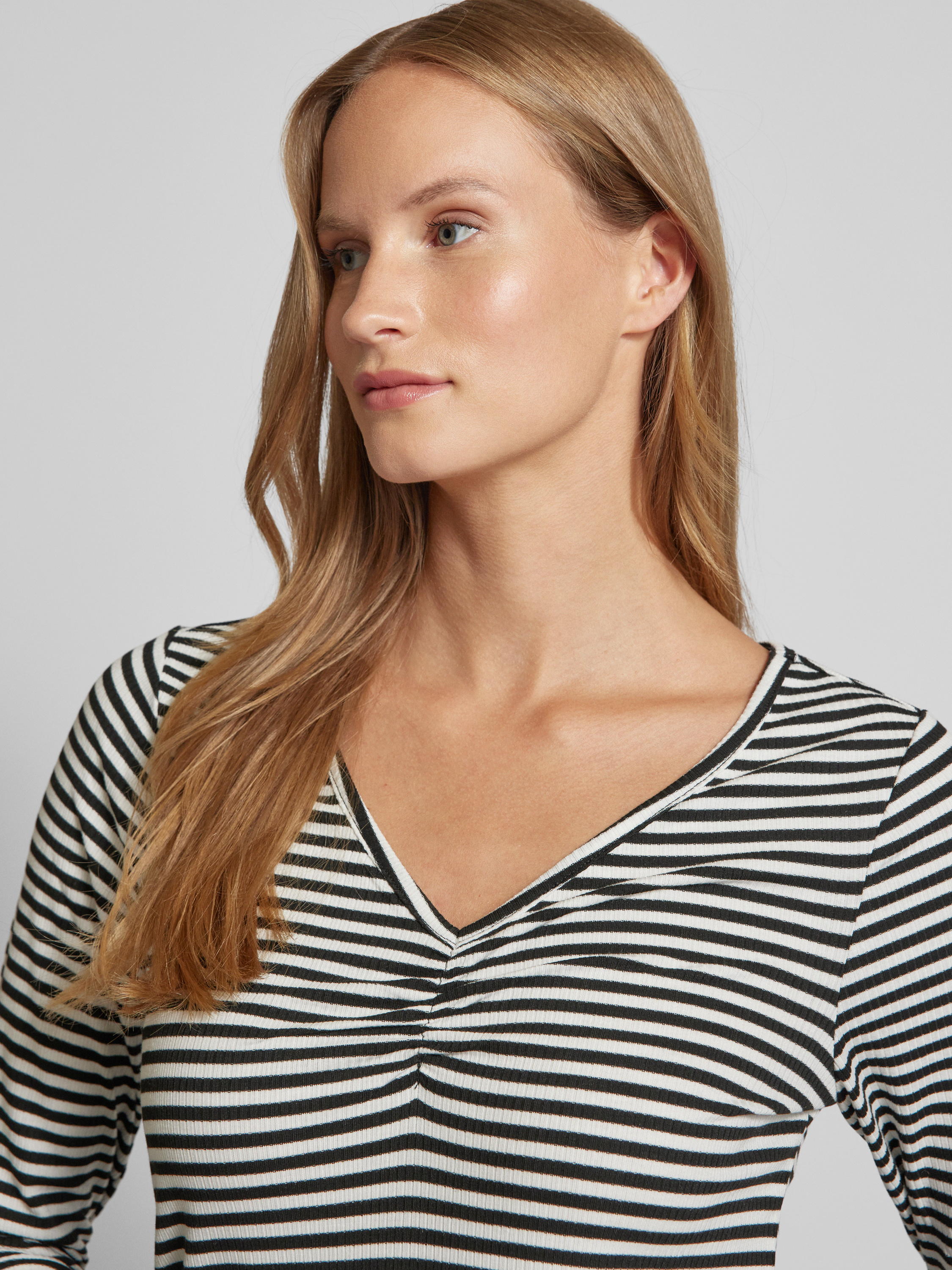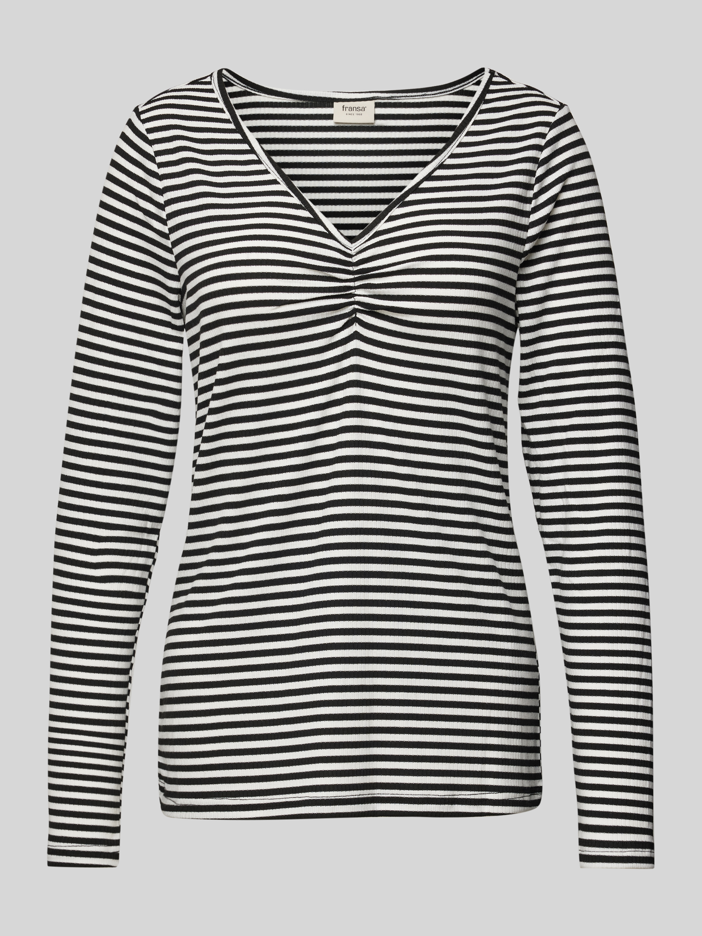 Bluzka z długim rękawem, prążkowanym dekoltem w serek model ‘mona’ - czarny
