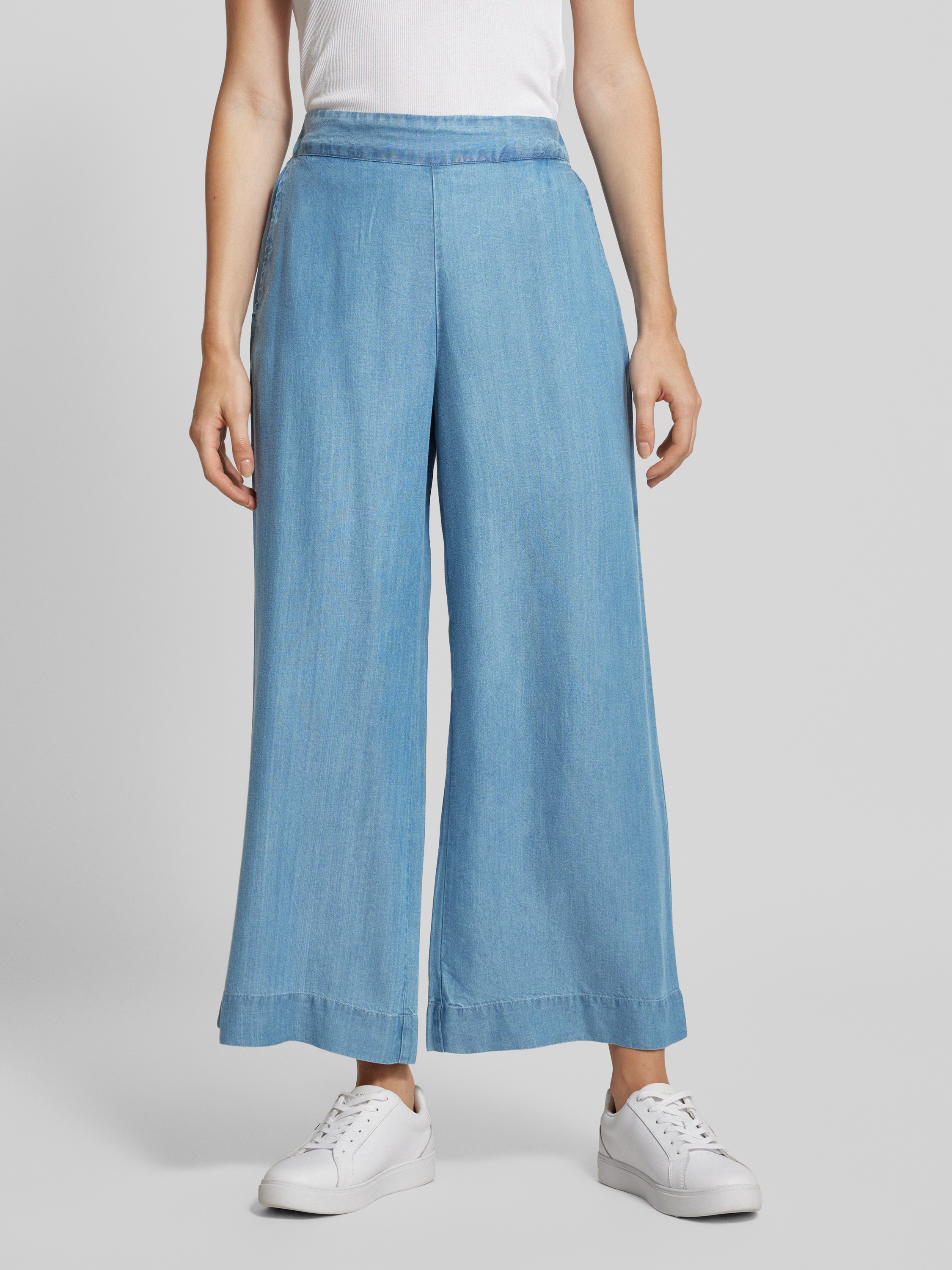 Kuloty z szeroką nogawką i elastycznym pasem model ‘Evelyn’ - jasnoniebieski