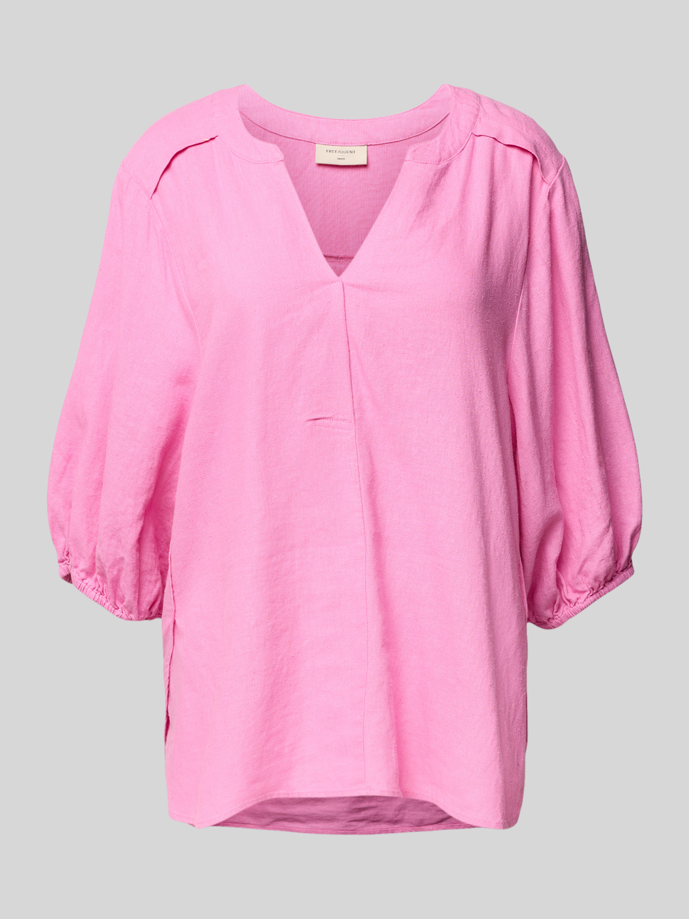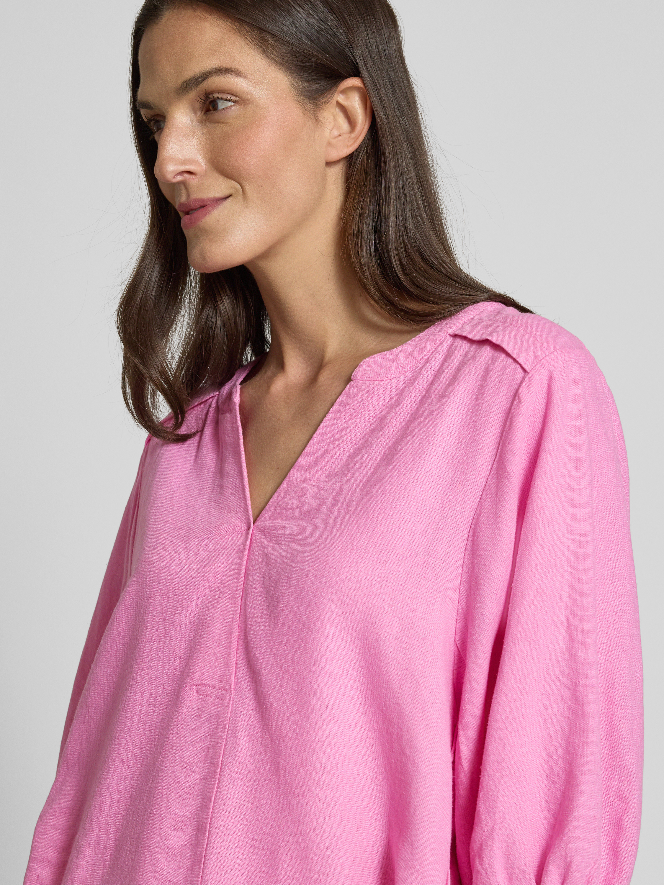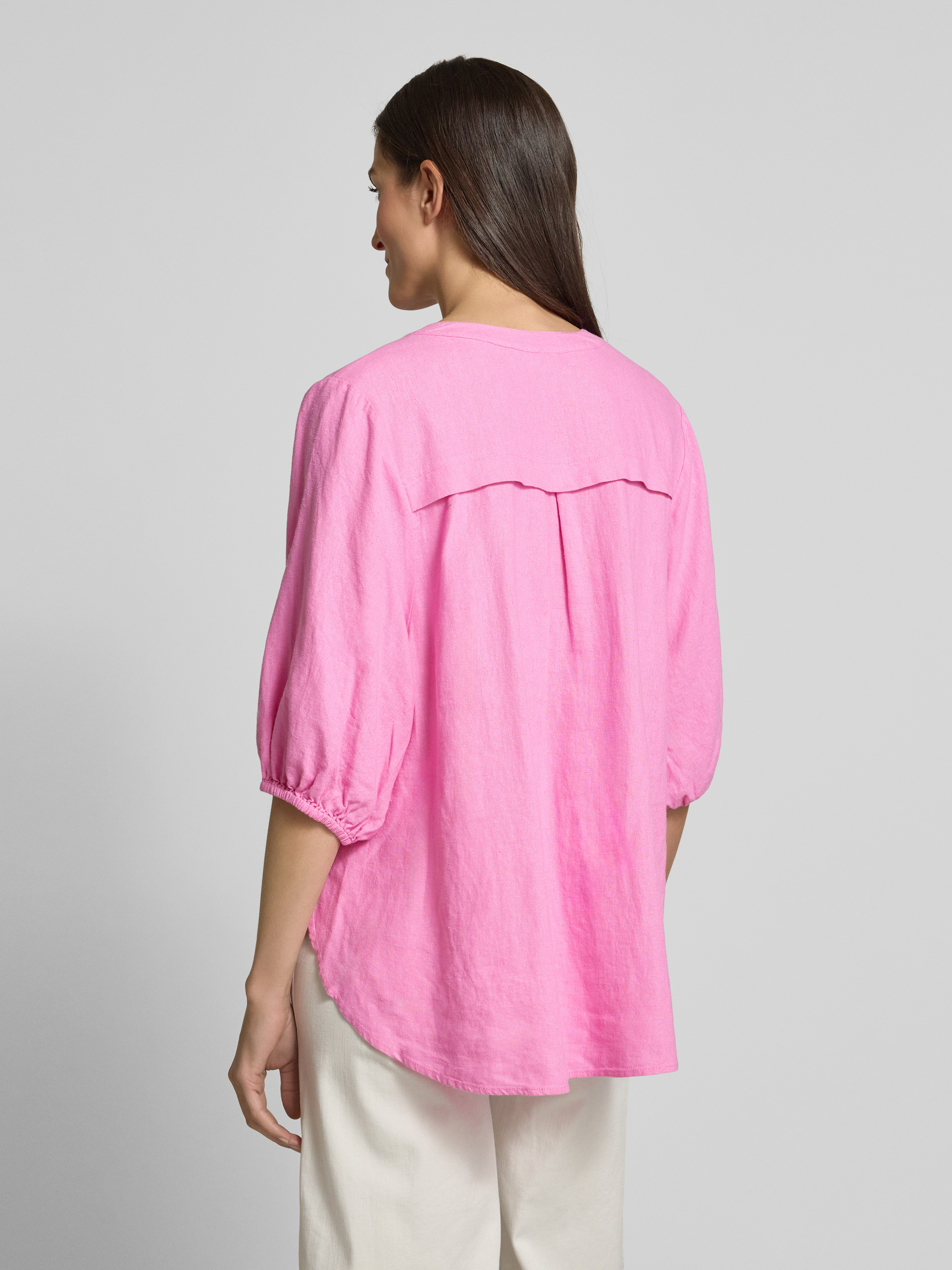 Bluzka lniana o kroju relaxed fit z kołnierzem z lamówką model ‘Lava’ - mocnoróżowy