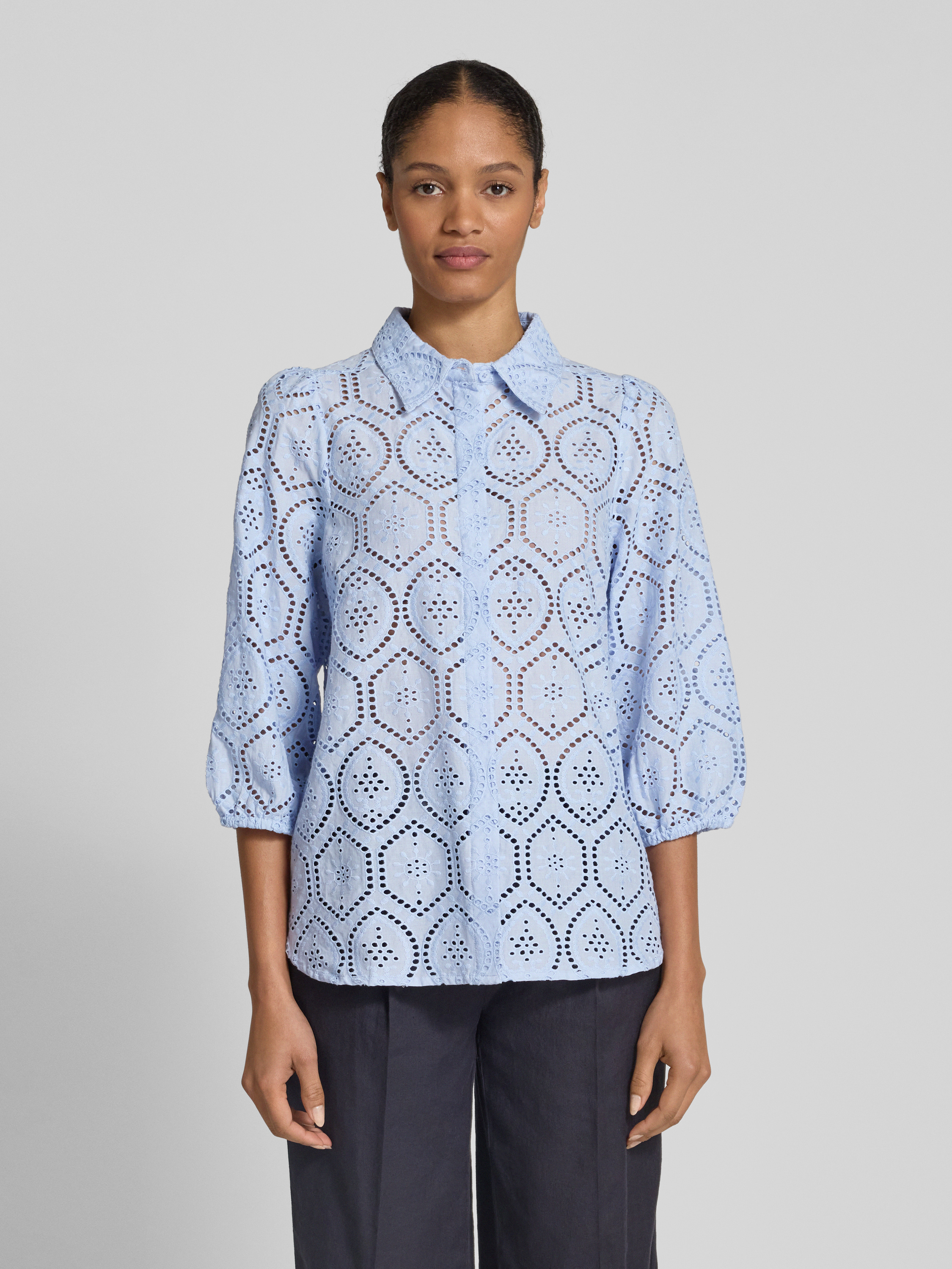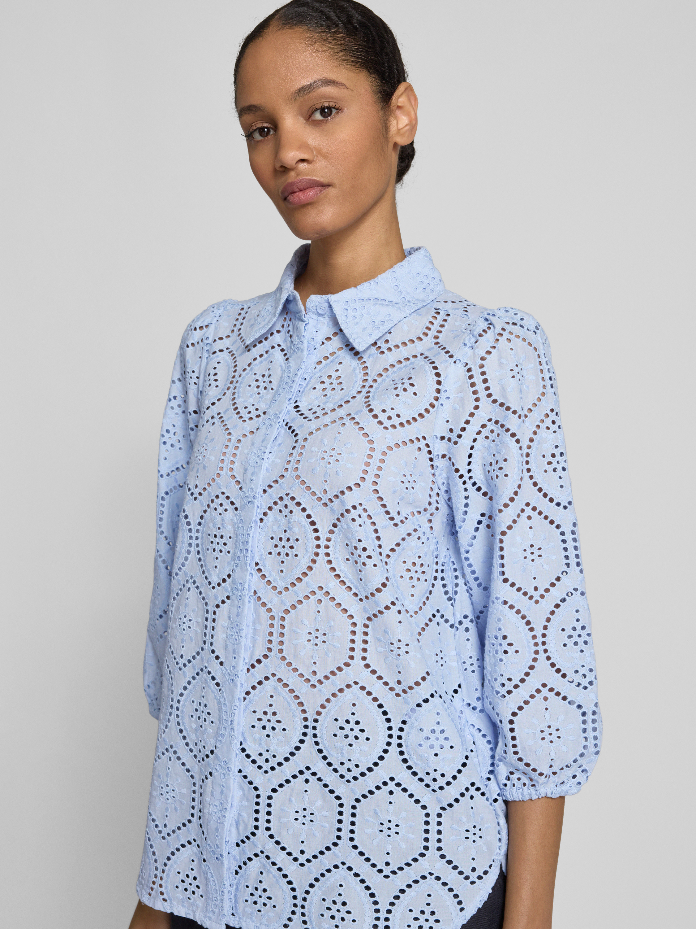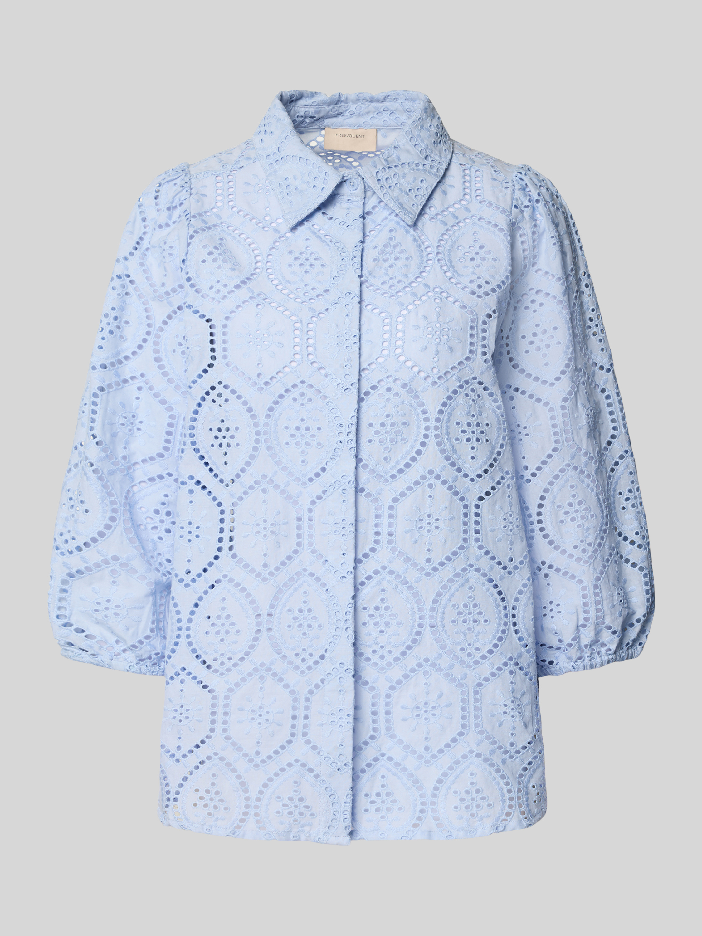 Bluzka o kroju regular fit z haftem angielskim model ‘Agy’ - jasnoniebieski
