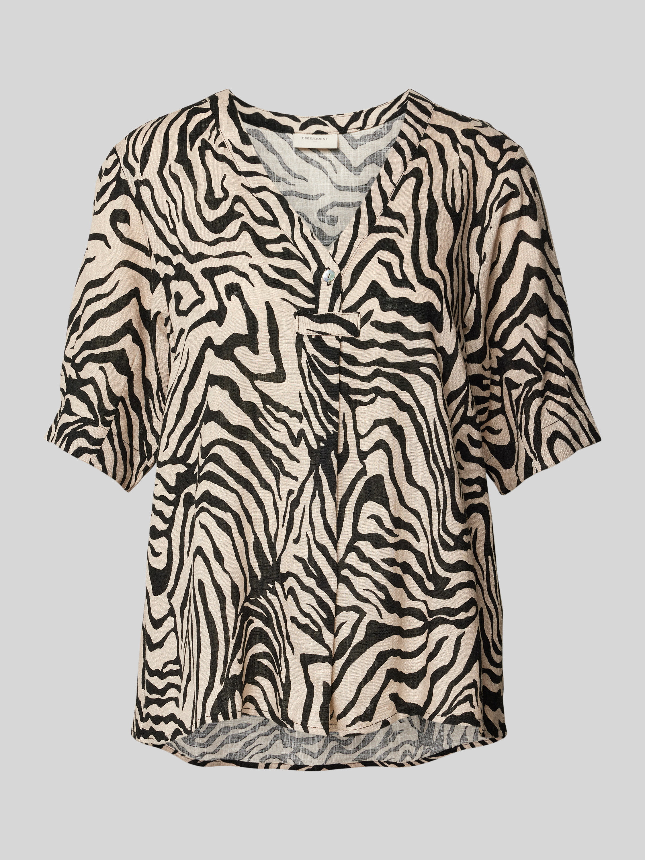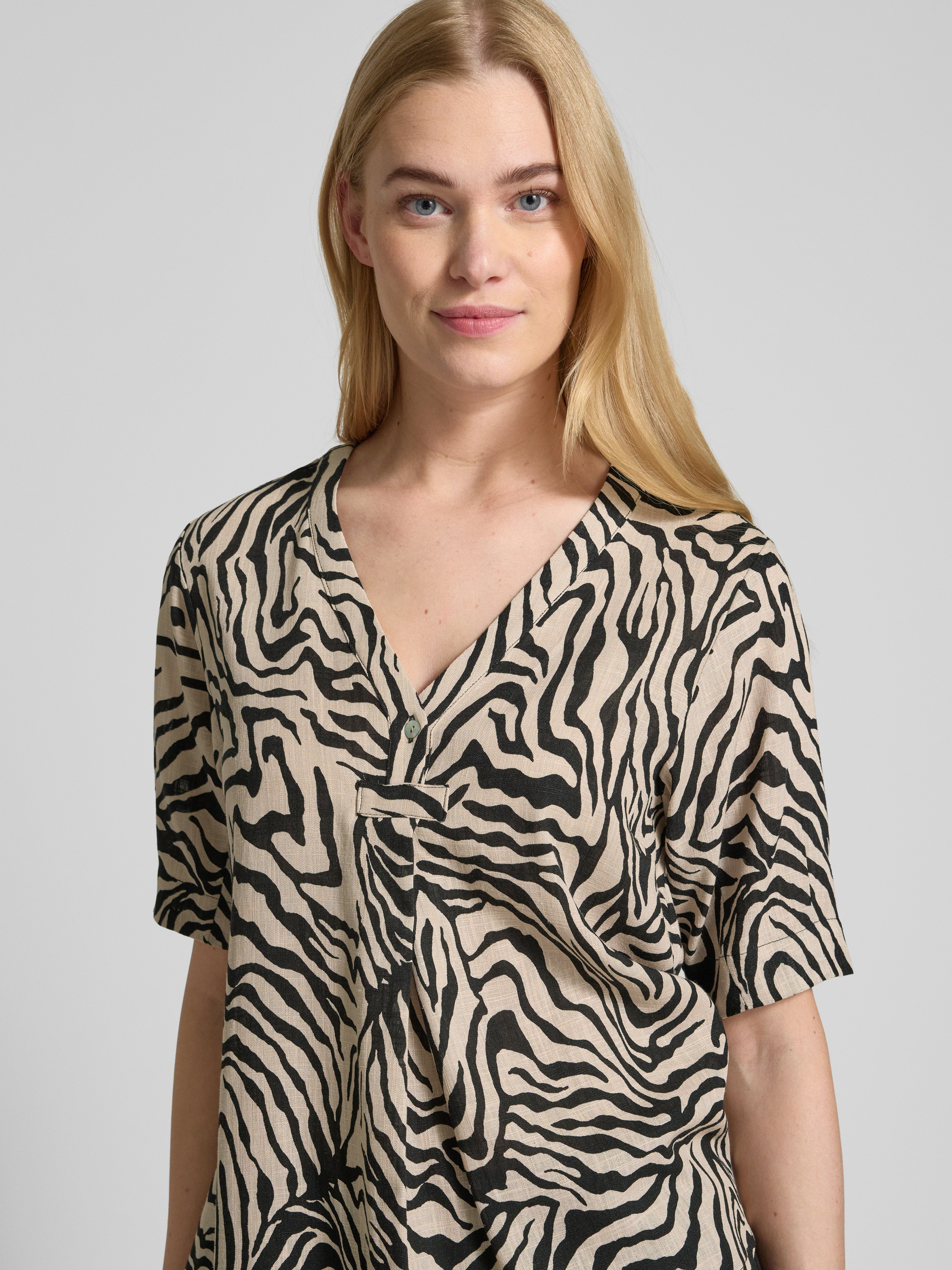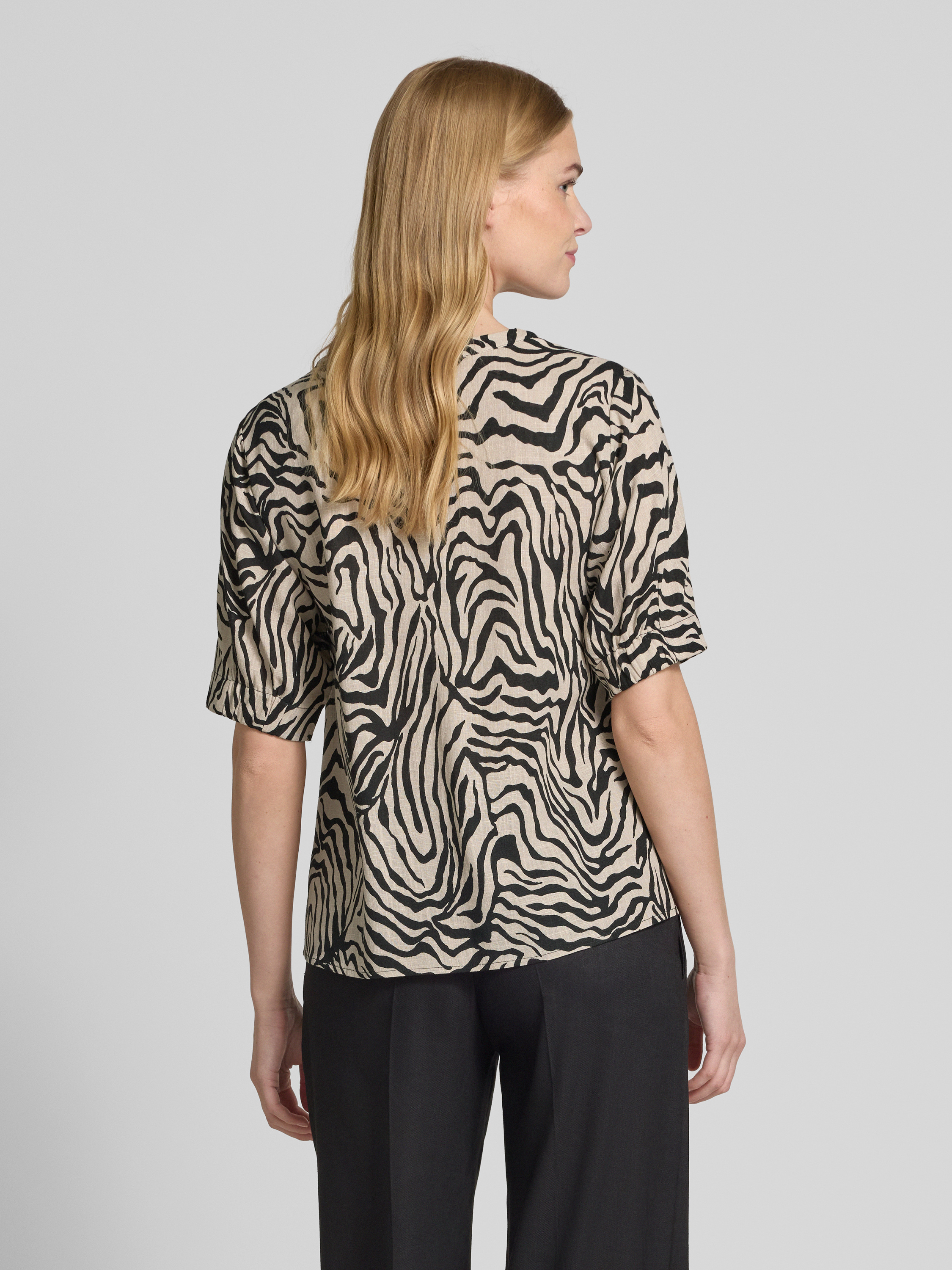 Bluzka o kroju slim fit z dekoltem w serek model ‘Larin’ - beżowy