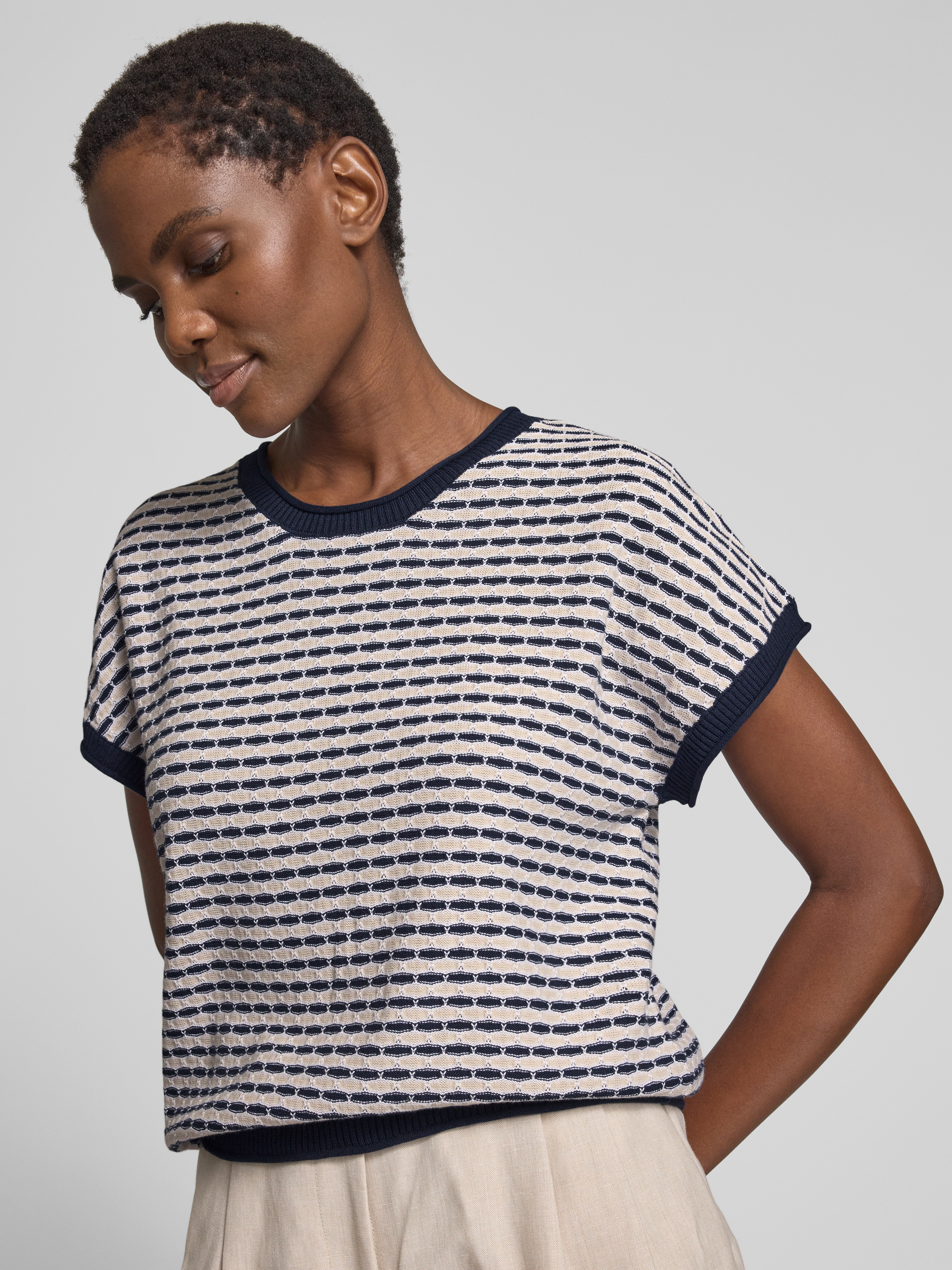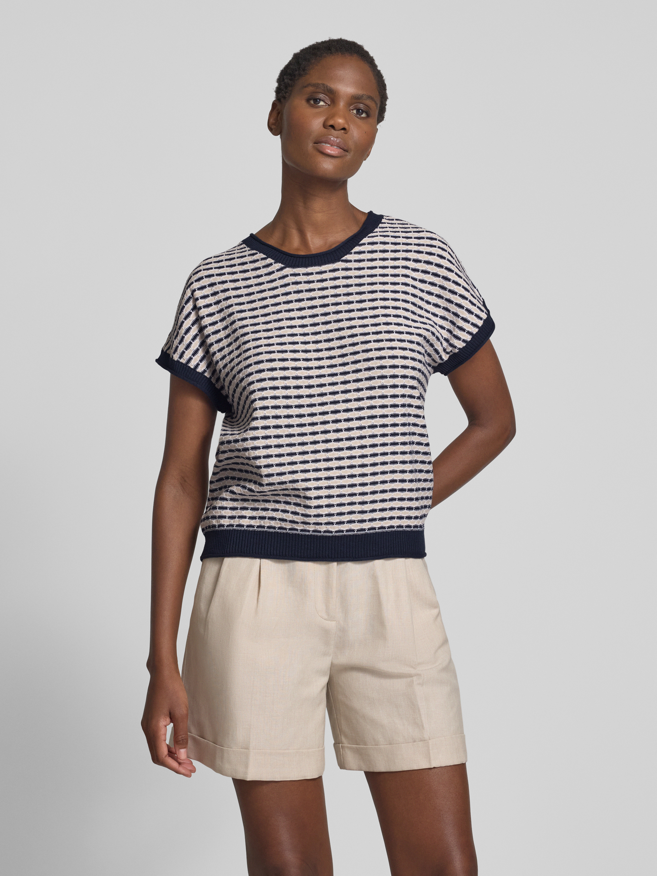Bluzka z dzianiny z okrągłym dekoltem model ‘DODO’ - granatowy
