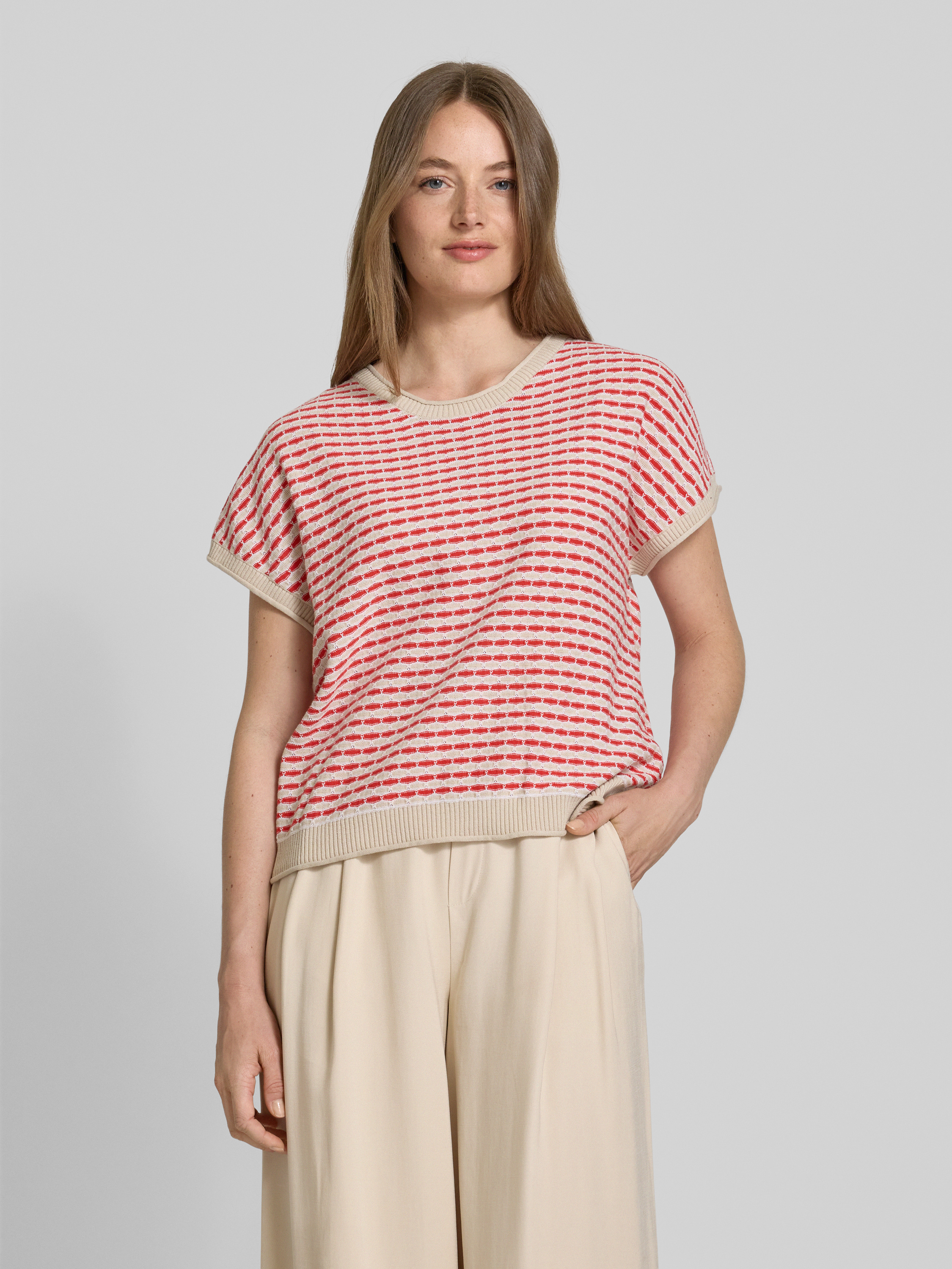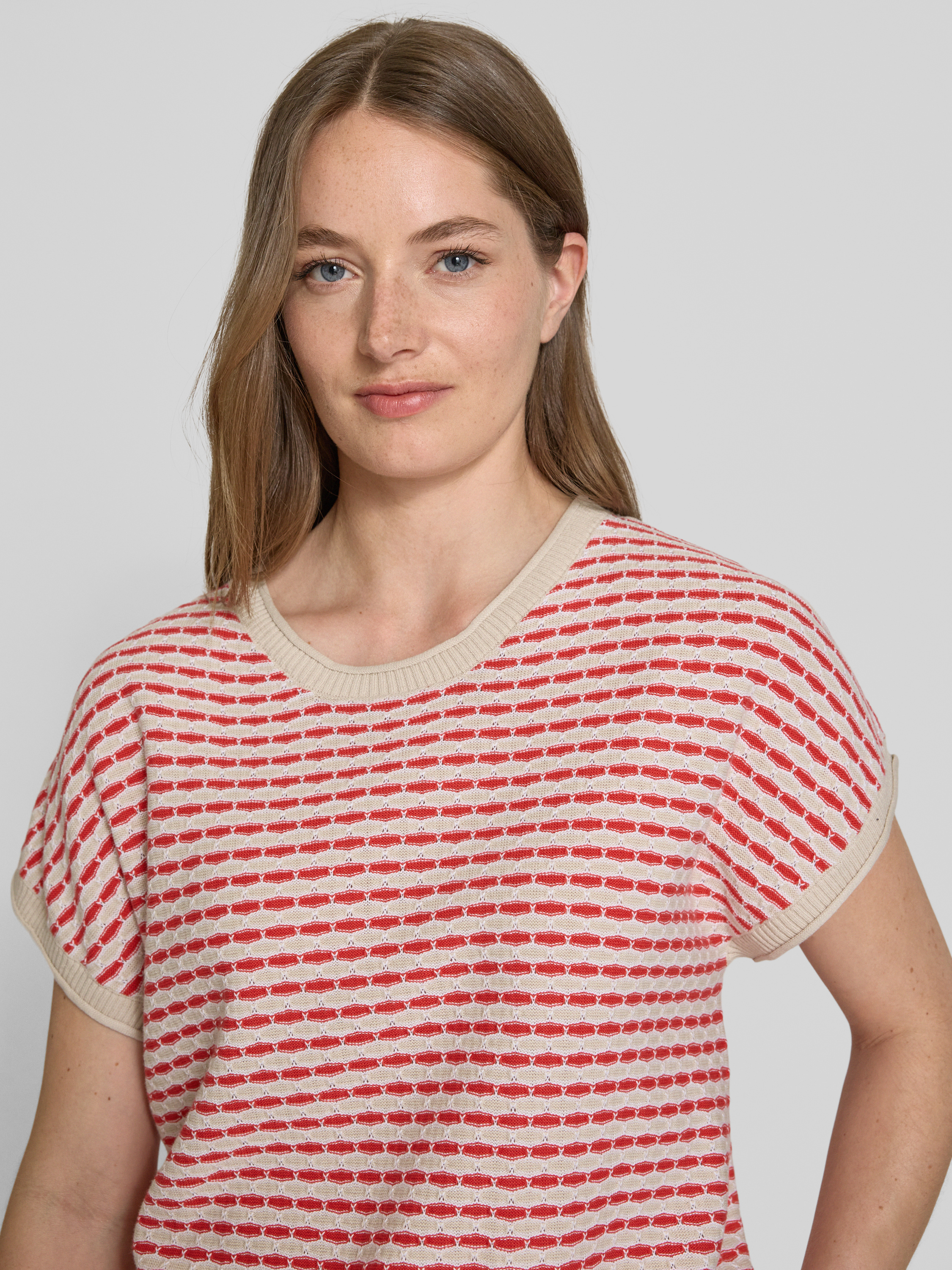 Bluzka z dzianiny z okrągłym dekoltem model ‘DODO’ - jasnoczerwony