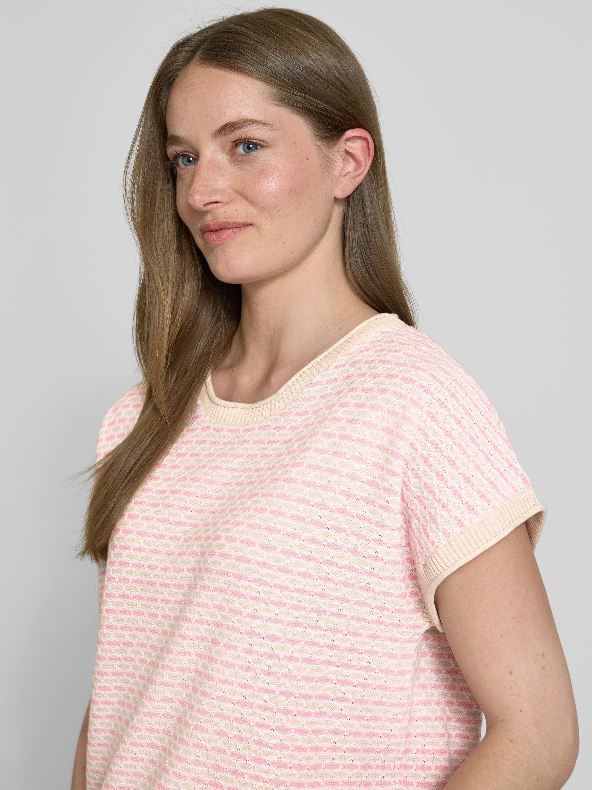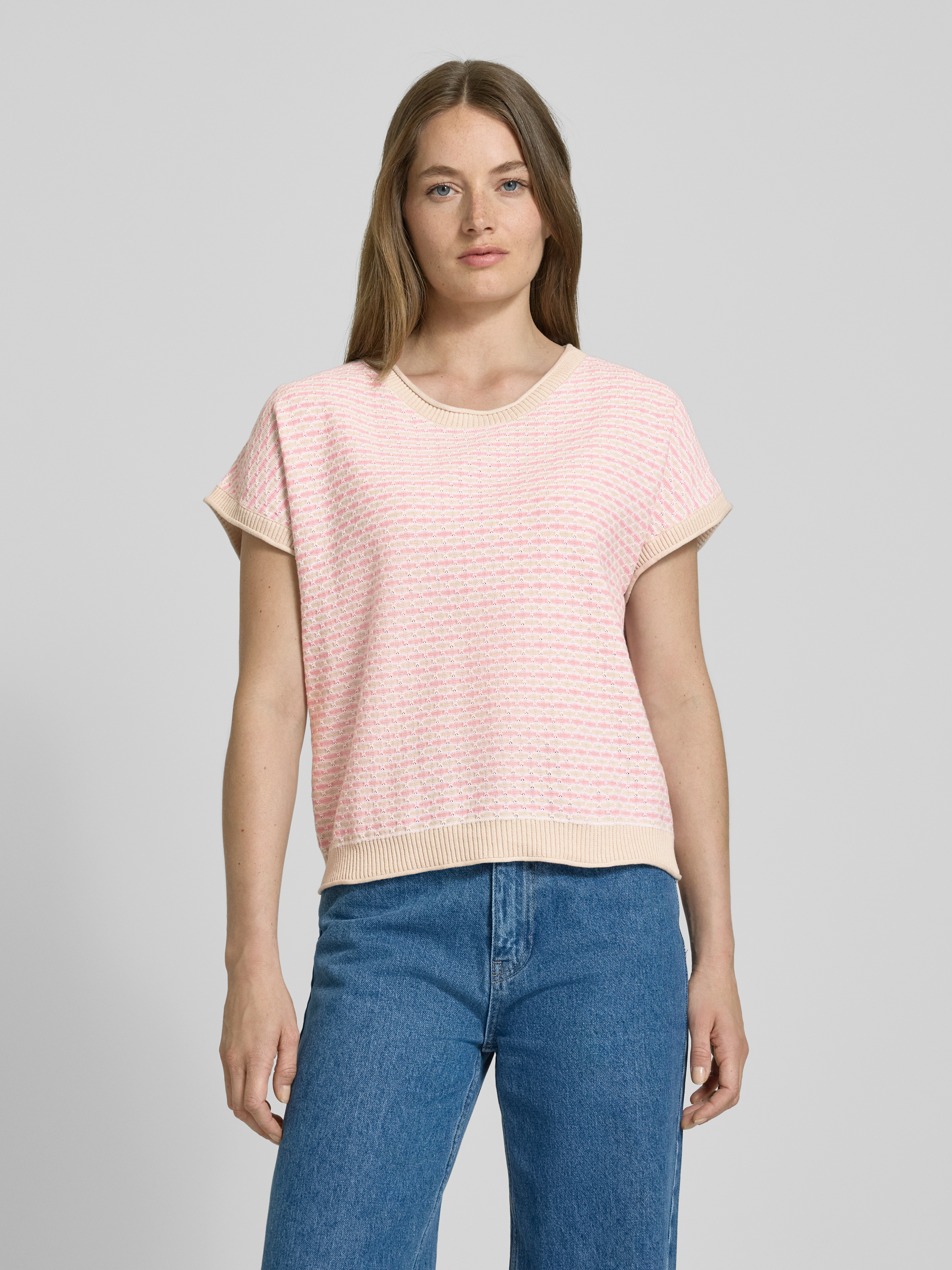 Bluzka z dzianiny z okrągłym dekoltem model ‘DODO’ - różowy