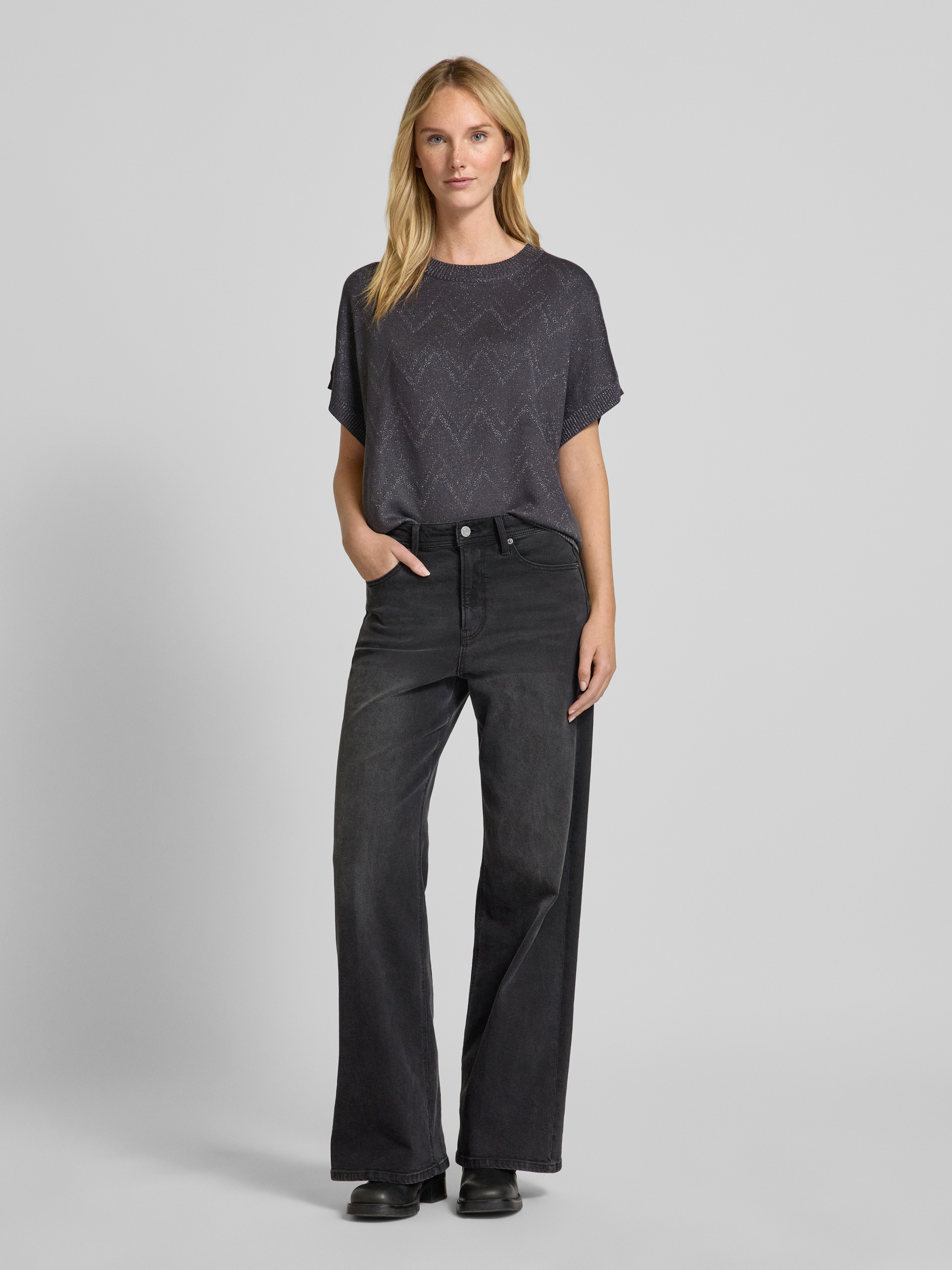 Bluzka z dzianiny z rękawem o dł. 1/2 model ‘ANILUX’ - czarny