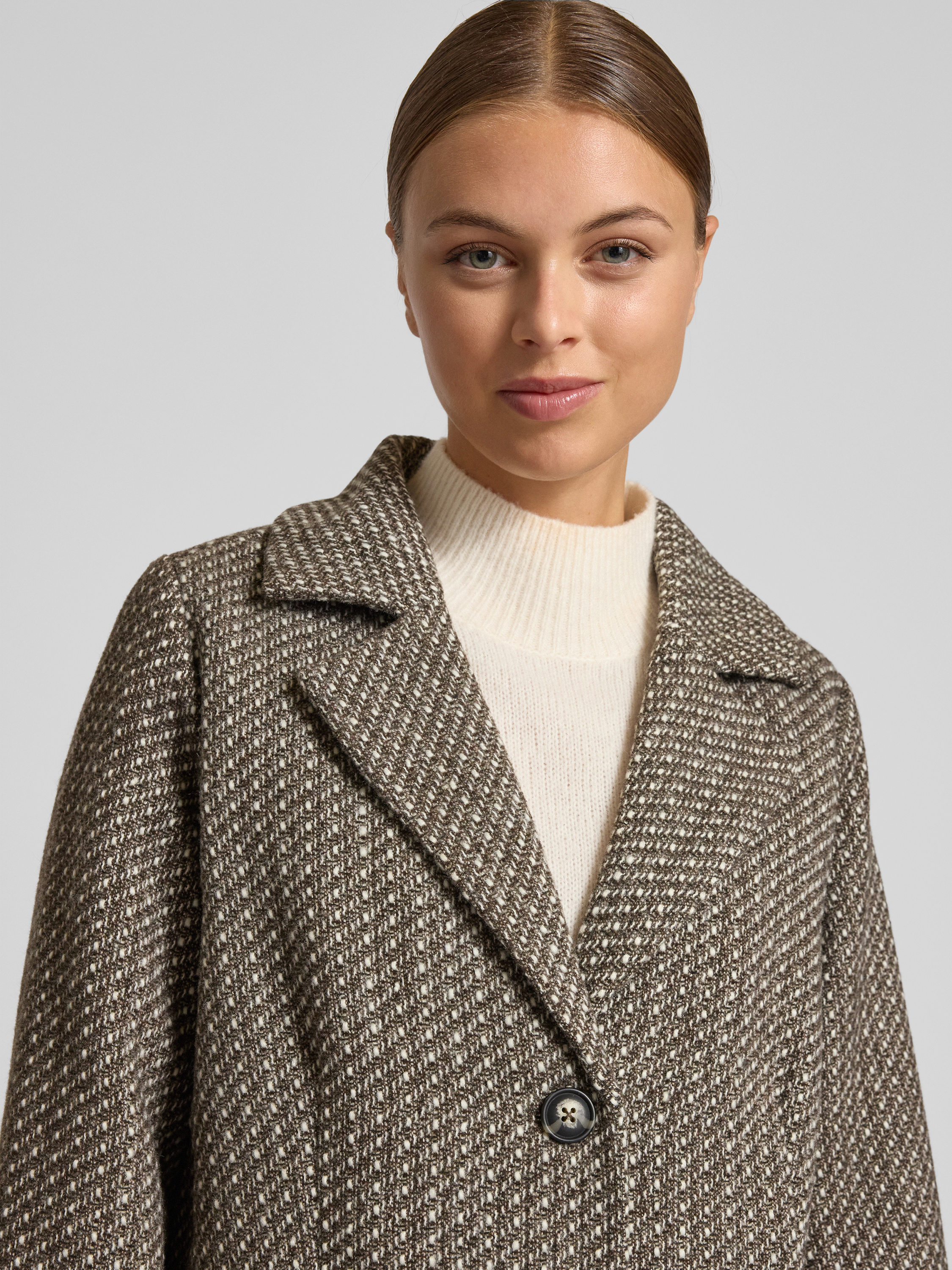Płaszcz z kołnierzem z połami model ‘NADIM’ - jasnobrązowy melanż