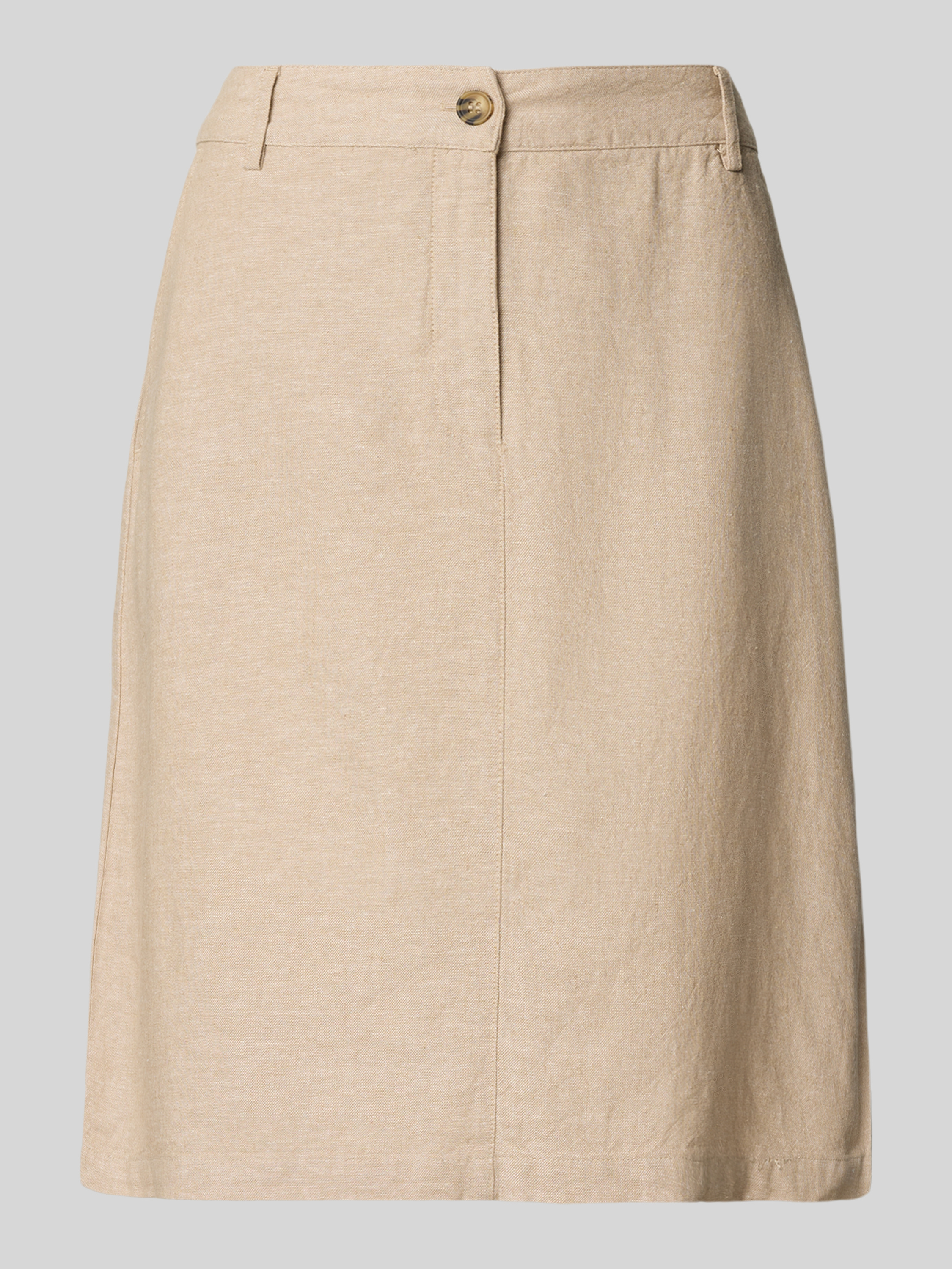 Spódnica o długości do kolan z mieszanki lnu i wiskozy model ‘Lava’ - beżowy