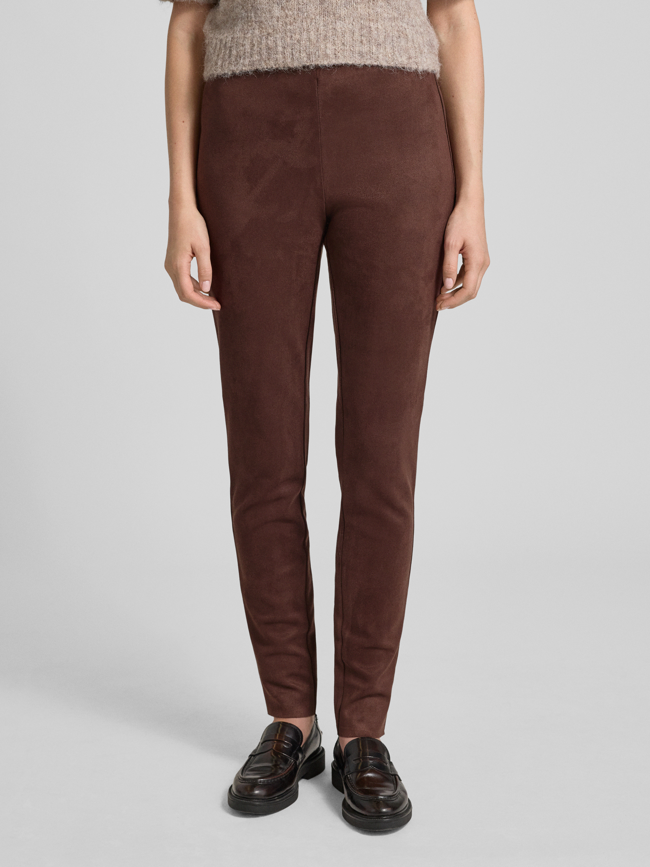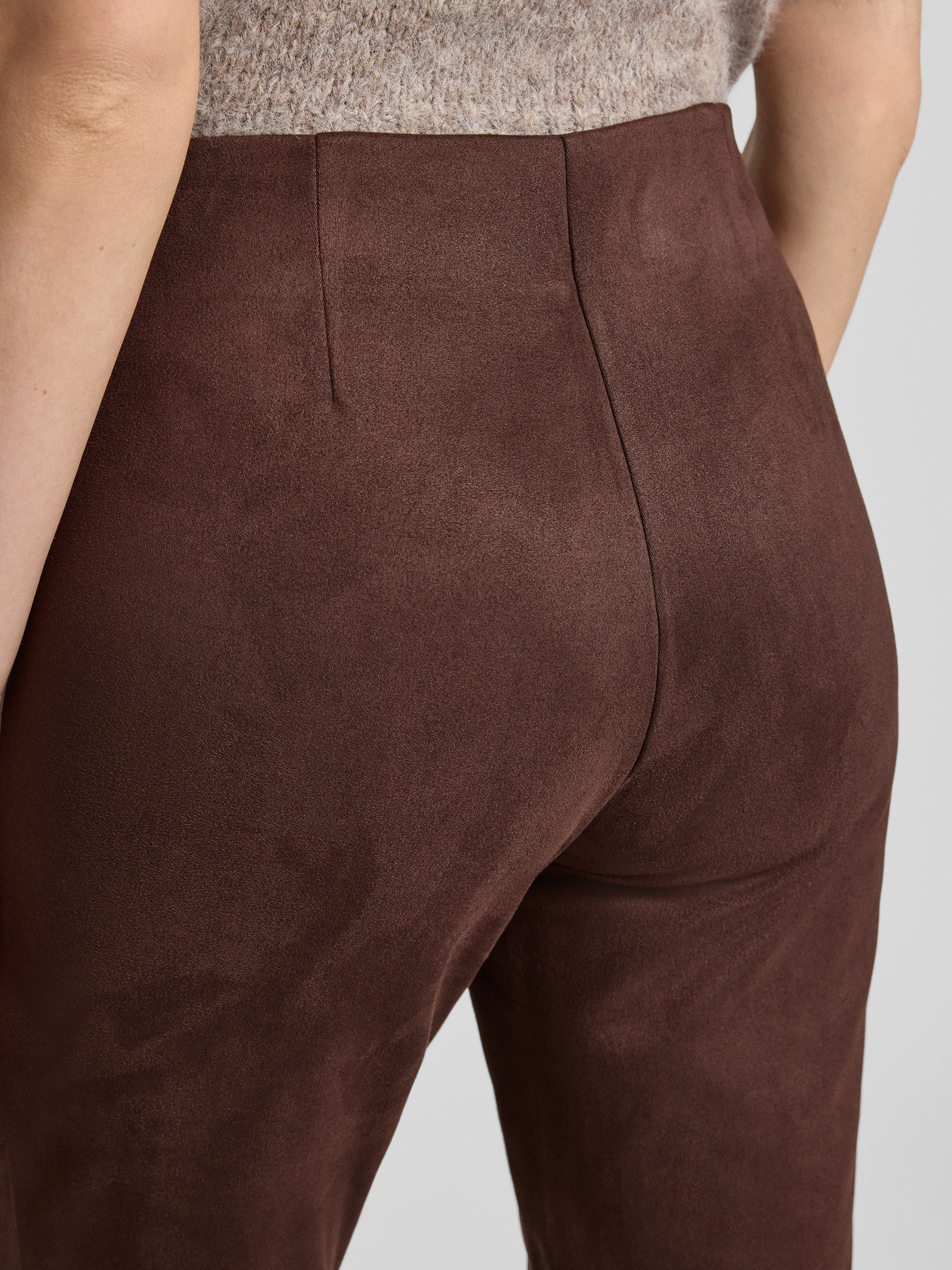 Spodnie materiałowe z imitacji zamszu model ‘LEXIE’ - szarobrązowy