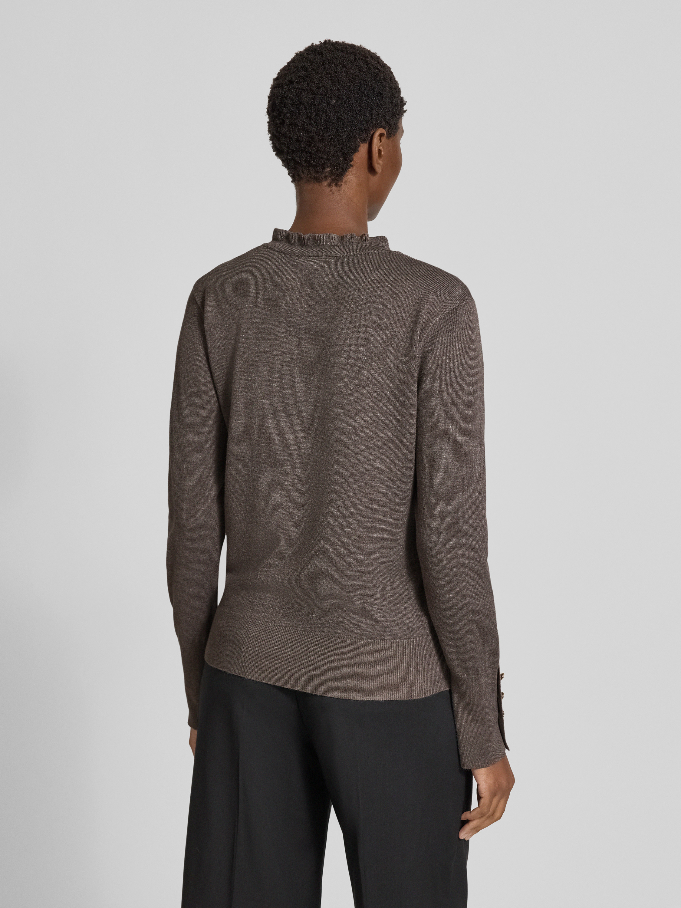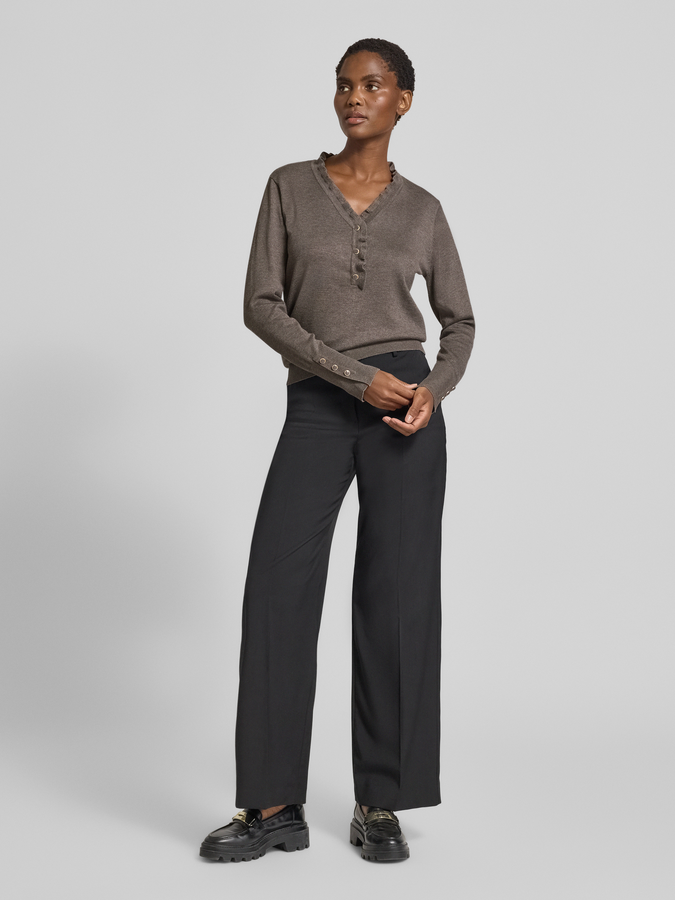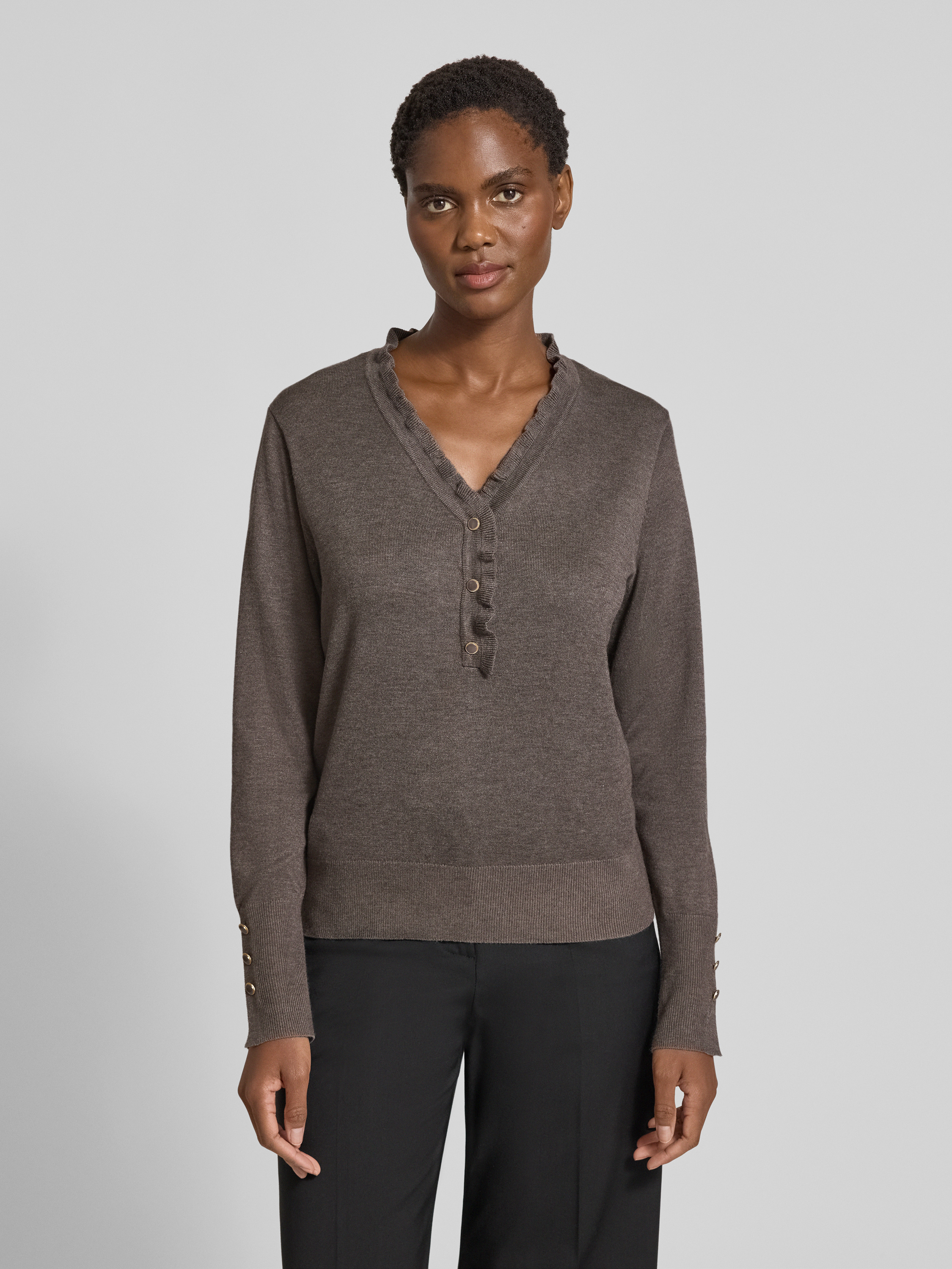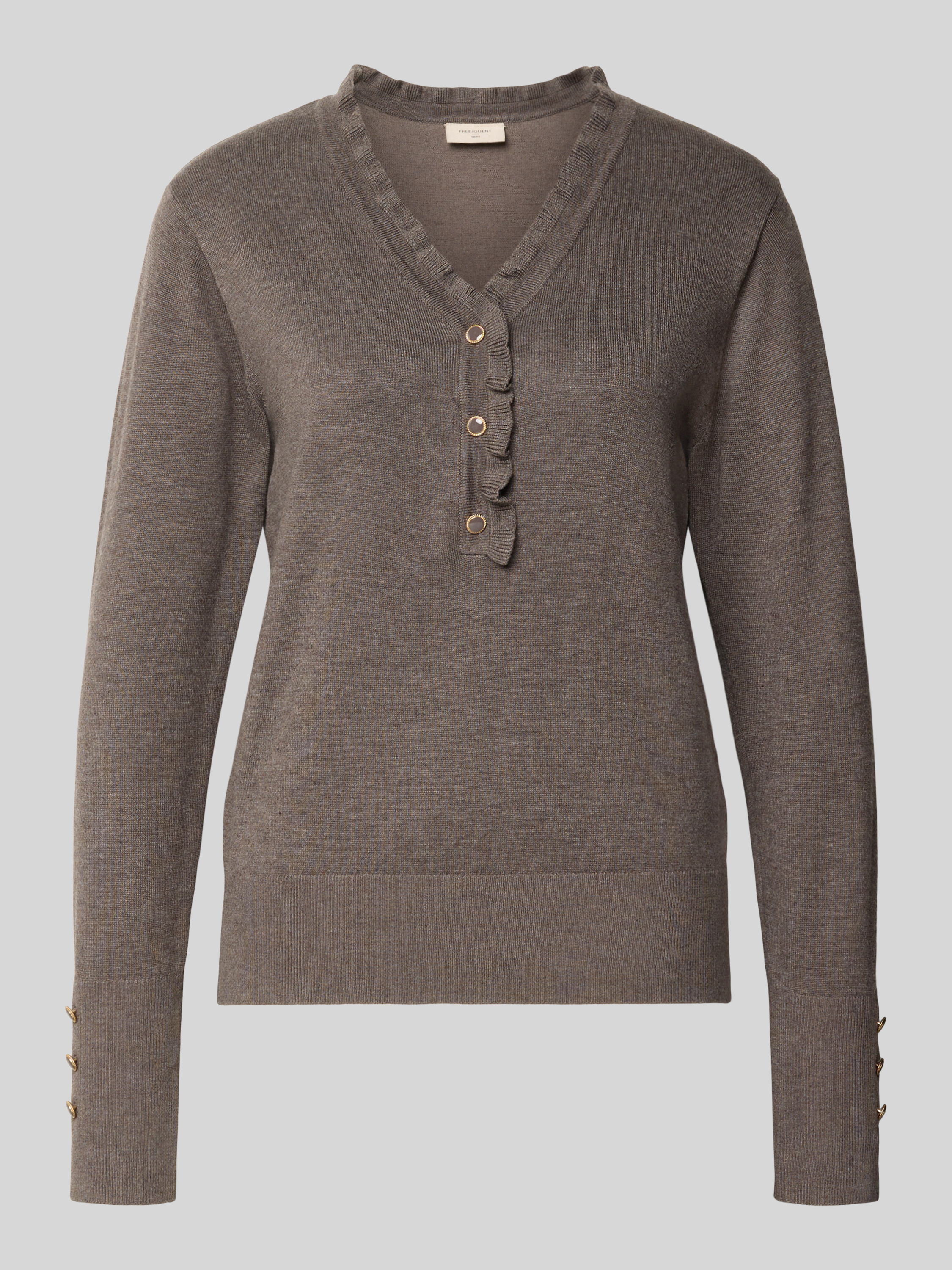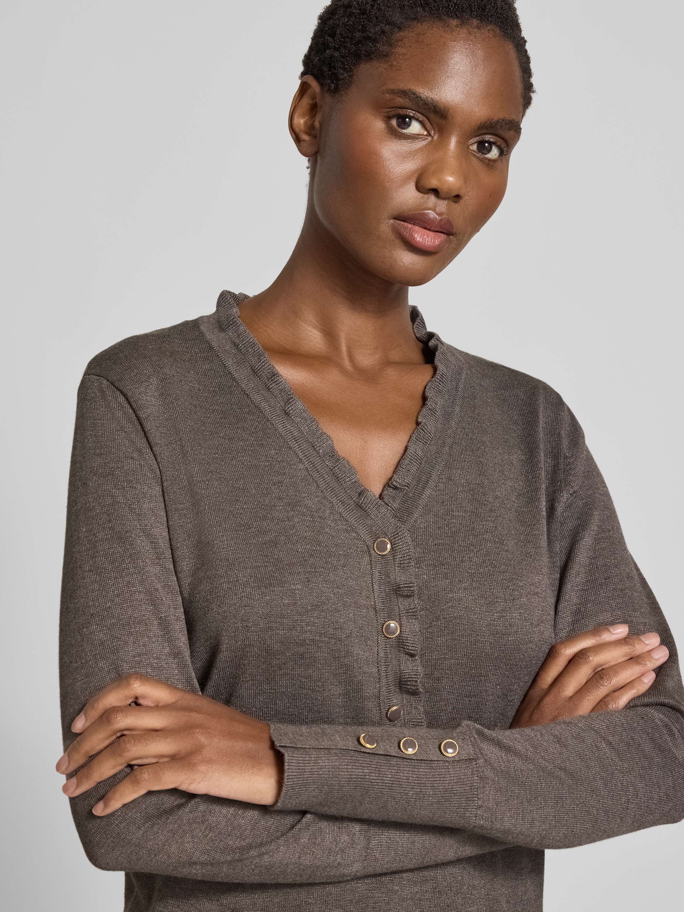 Sweter z dzianiny z krótką listwą guzikową model ‘KATIE’ - szarobrązowy