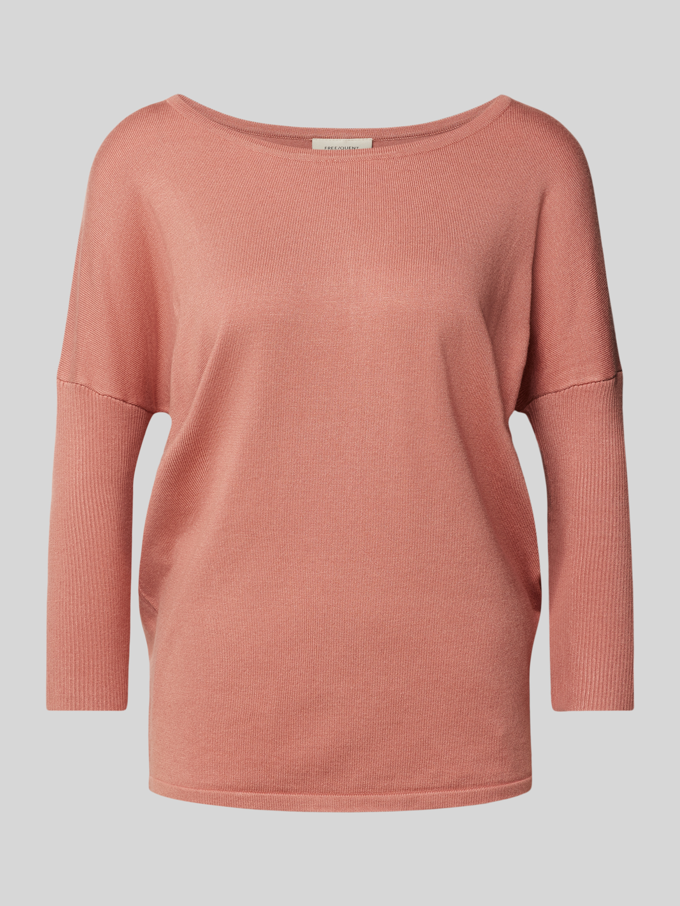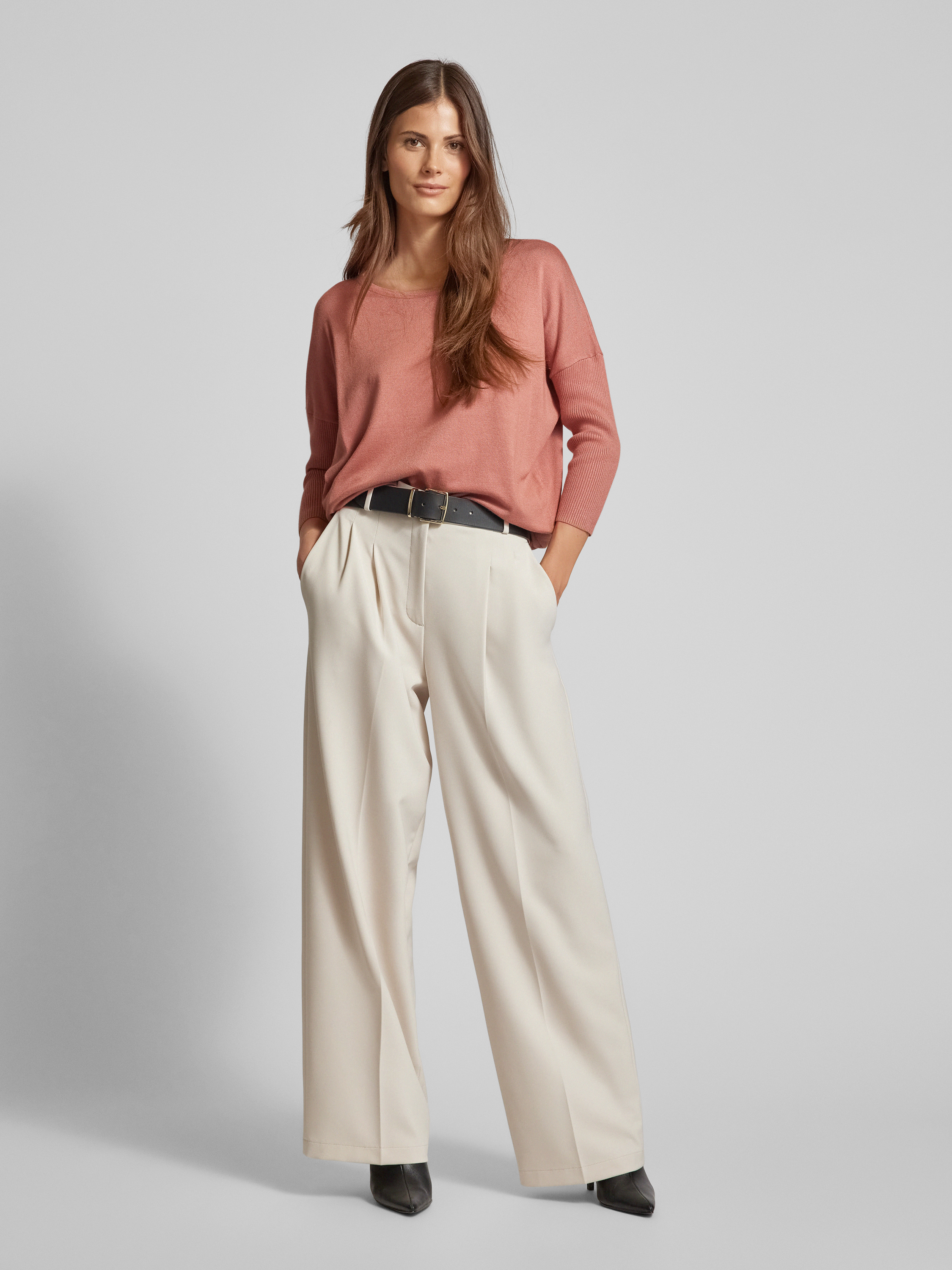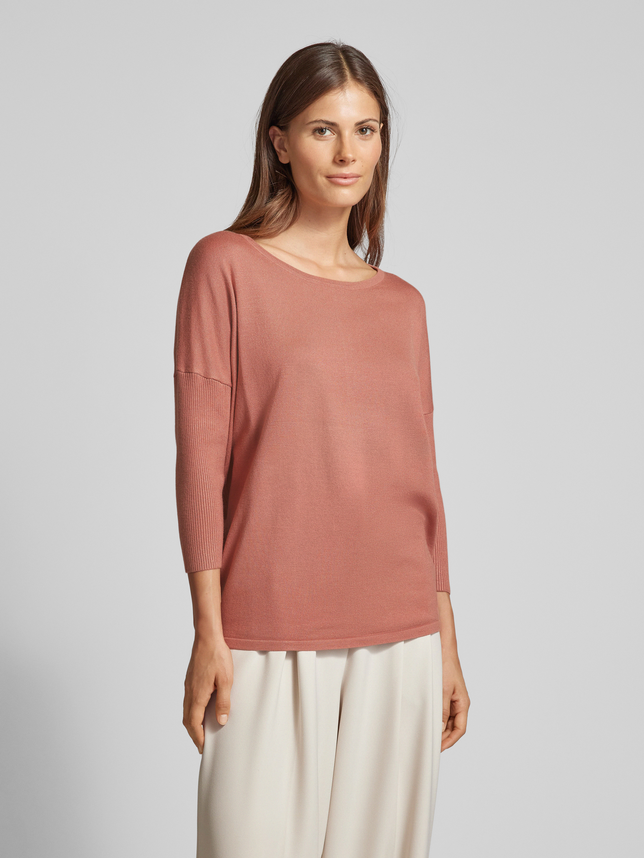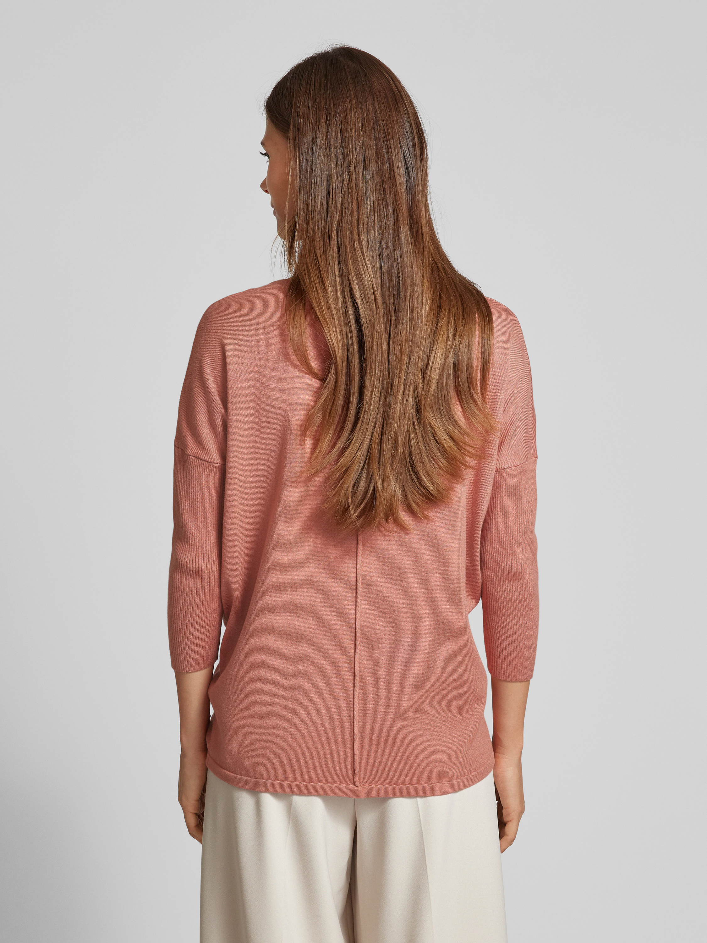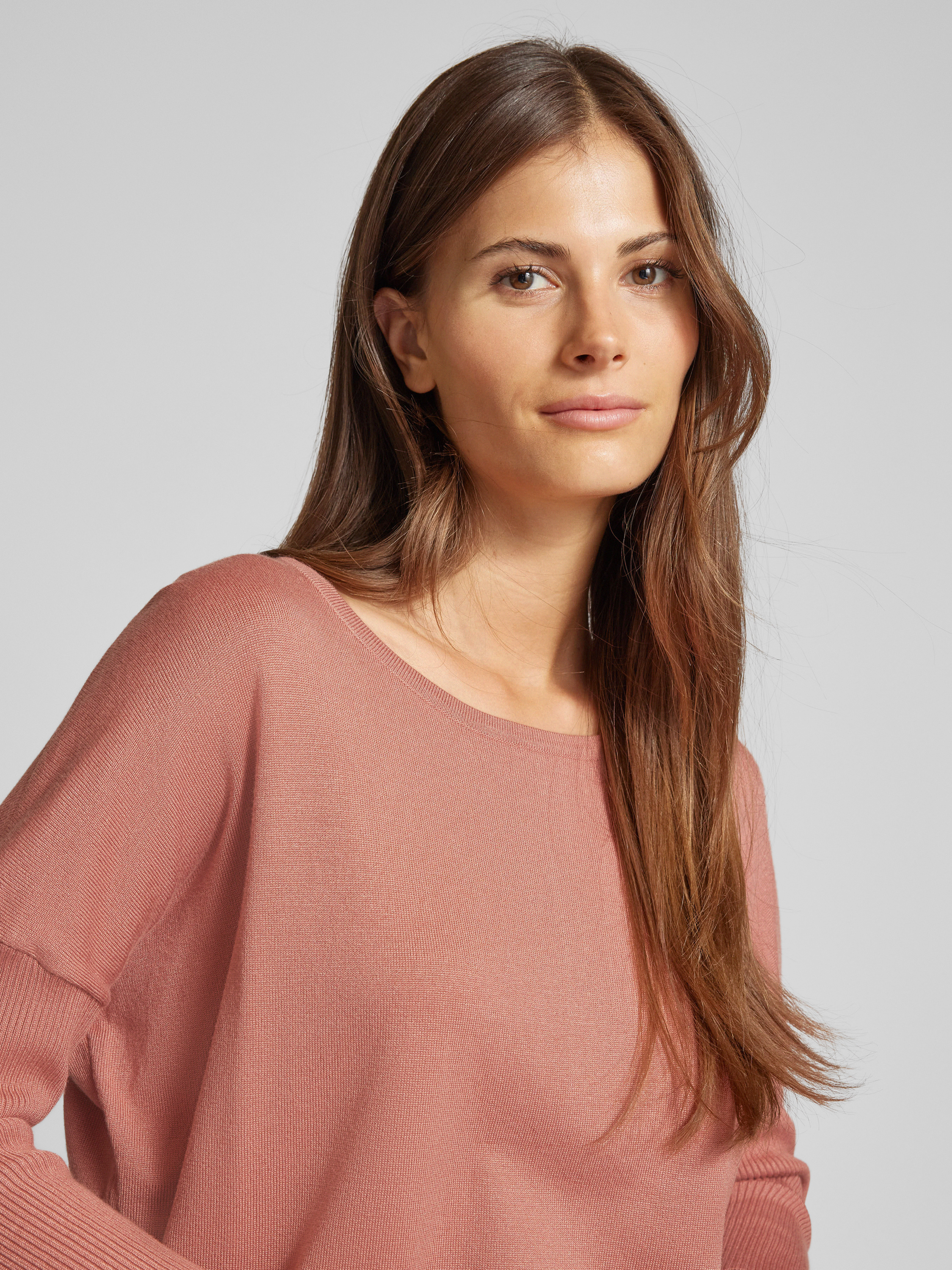 Sweter z dzianiny z okrągłym dekoltem model ‘JONE’ - brudnoróżowy