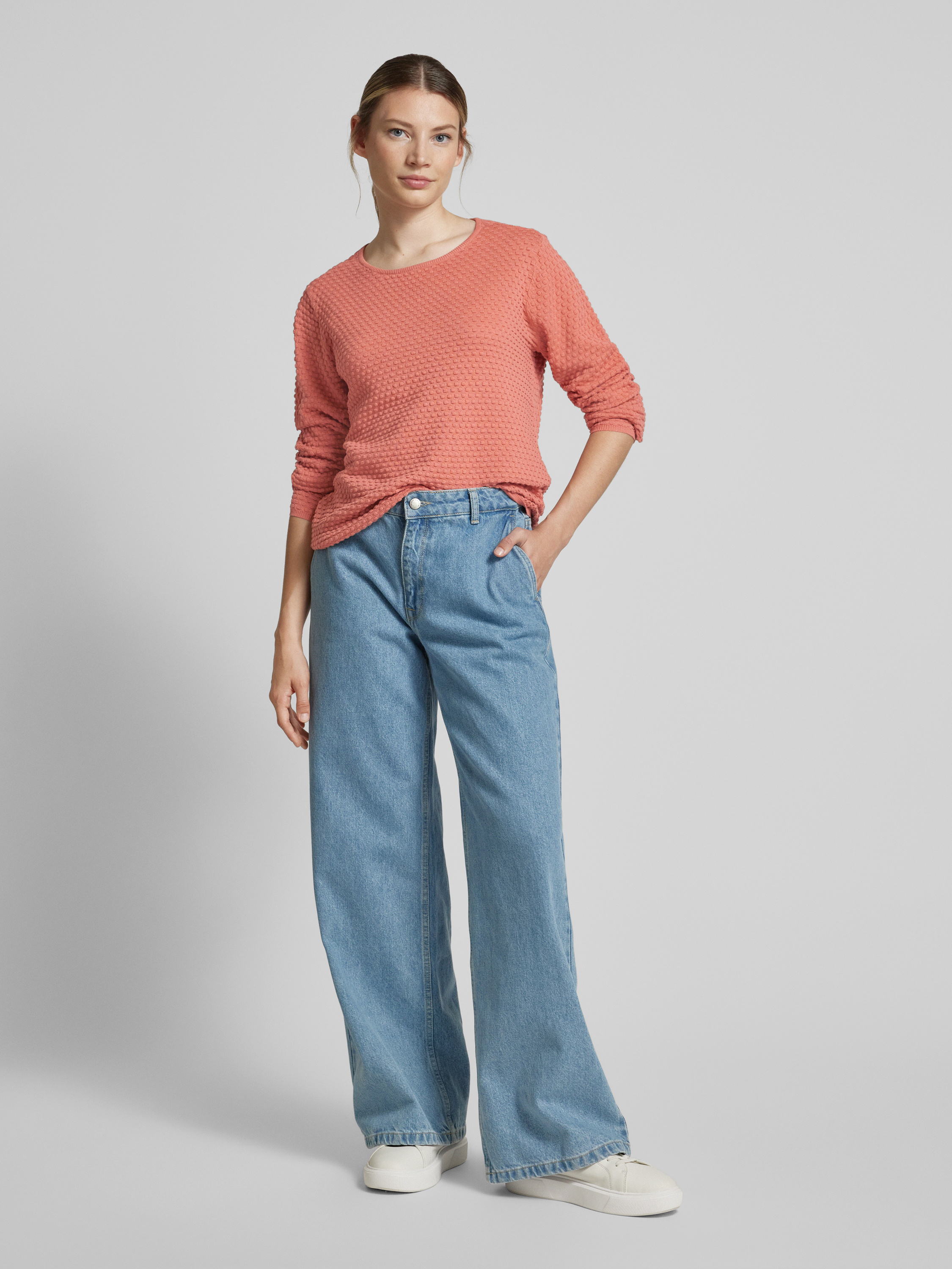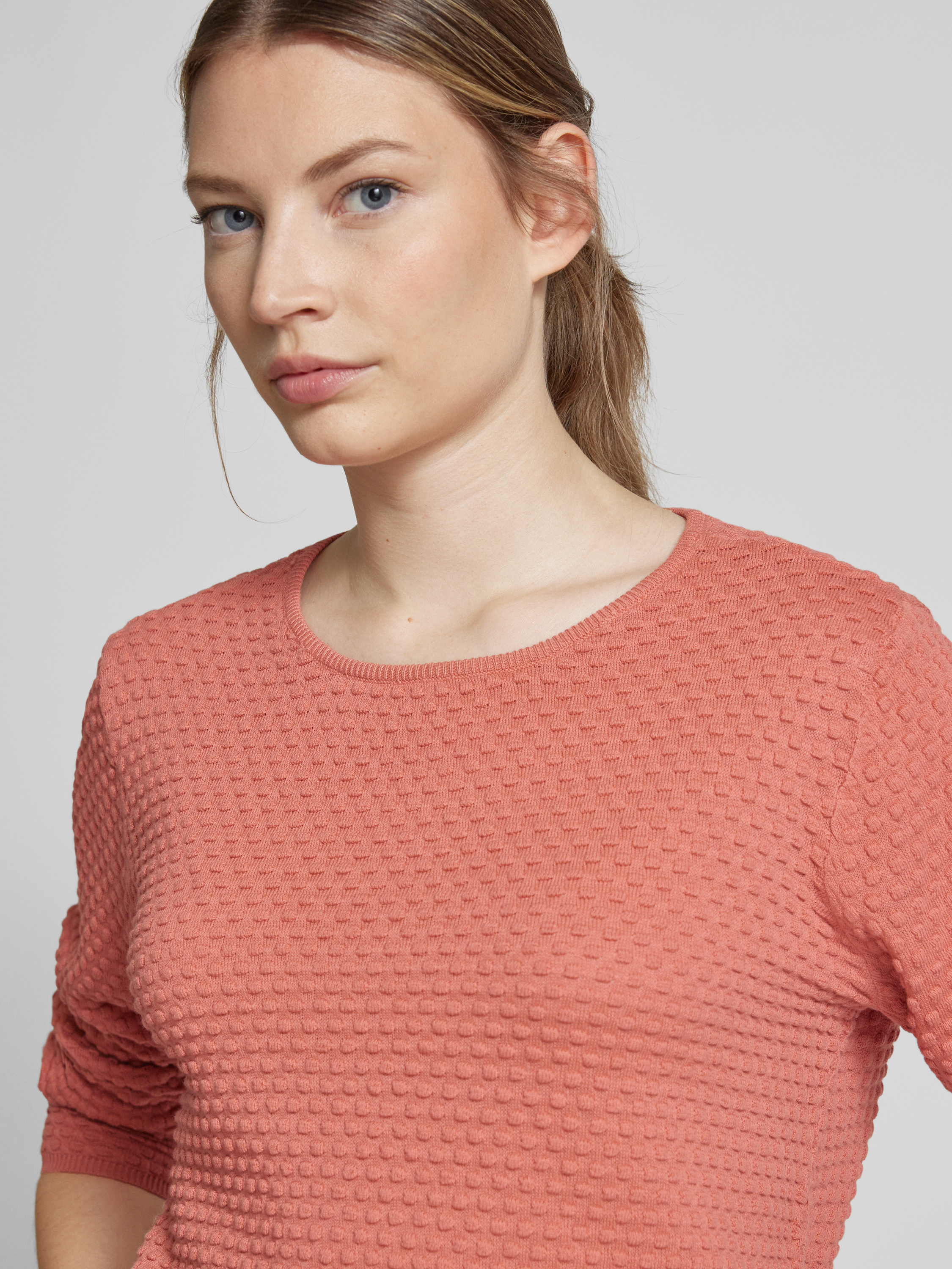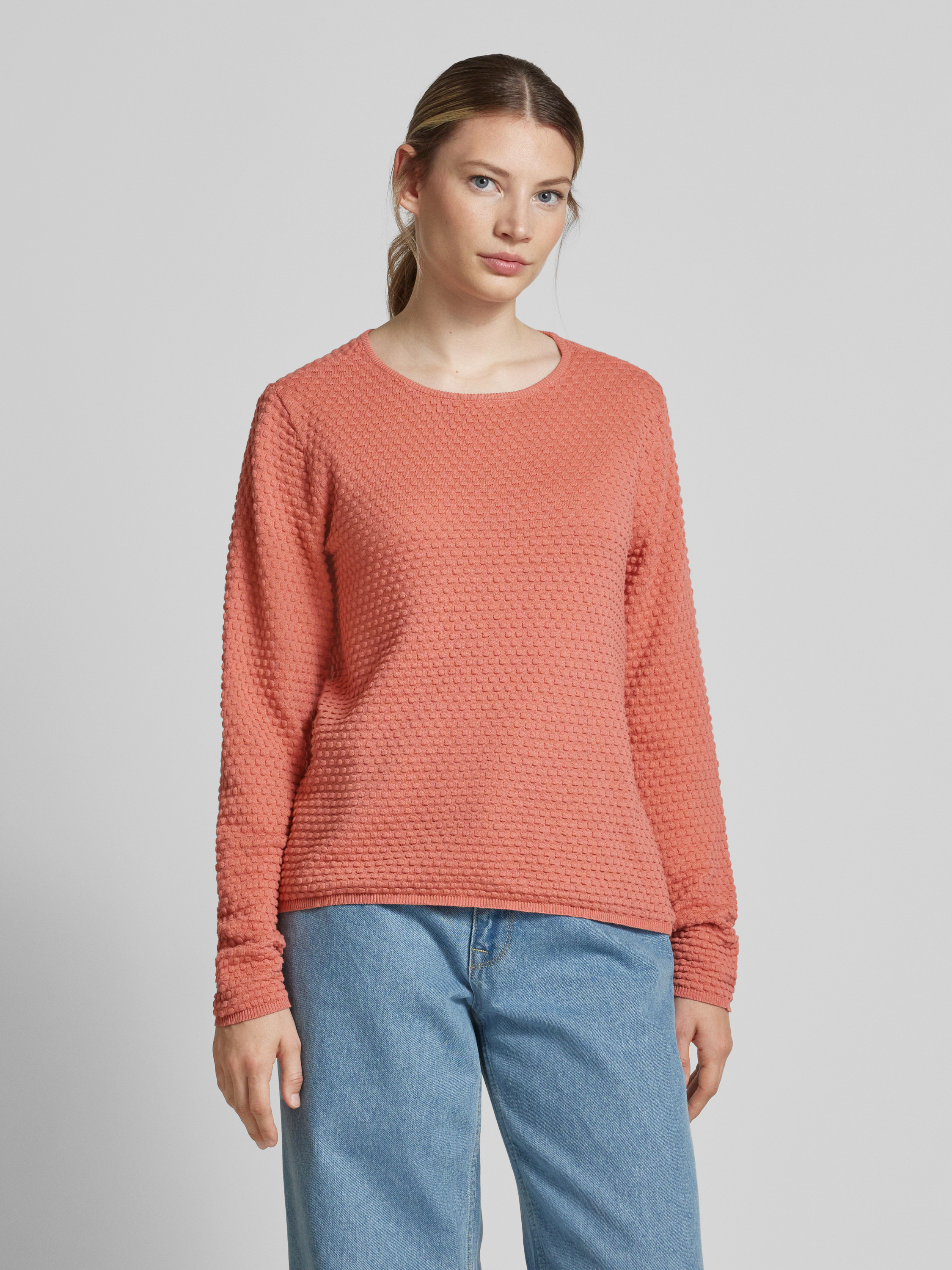 Sweter z dzianiny z prążkowanymi wykończeniami model ‘Dodo’ - brudnoróżowy