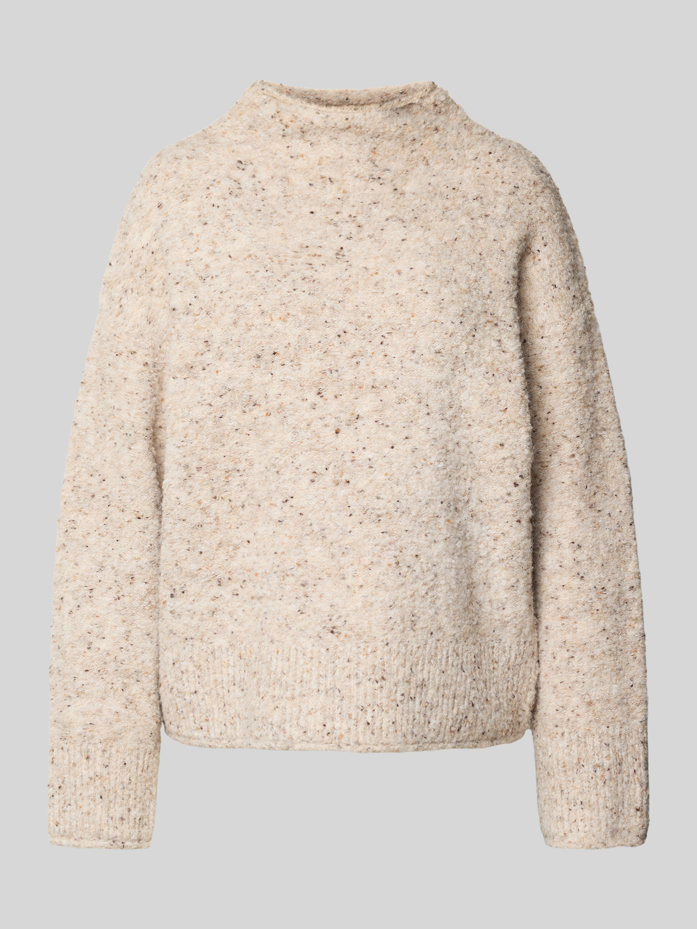 Sweter z dzianiny z prążkowanymi wykończeniami model ‘Grsnemes’ - beżowy