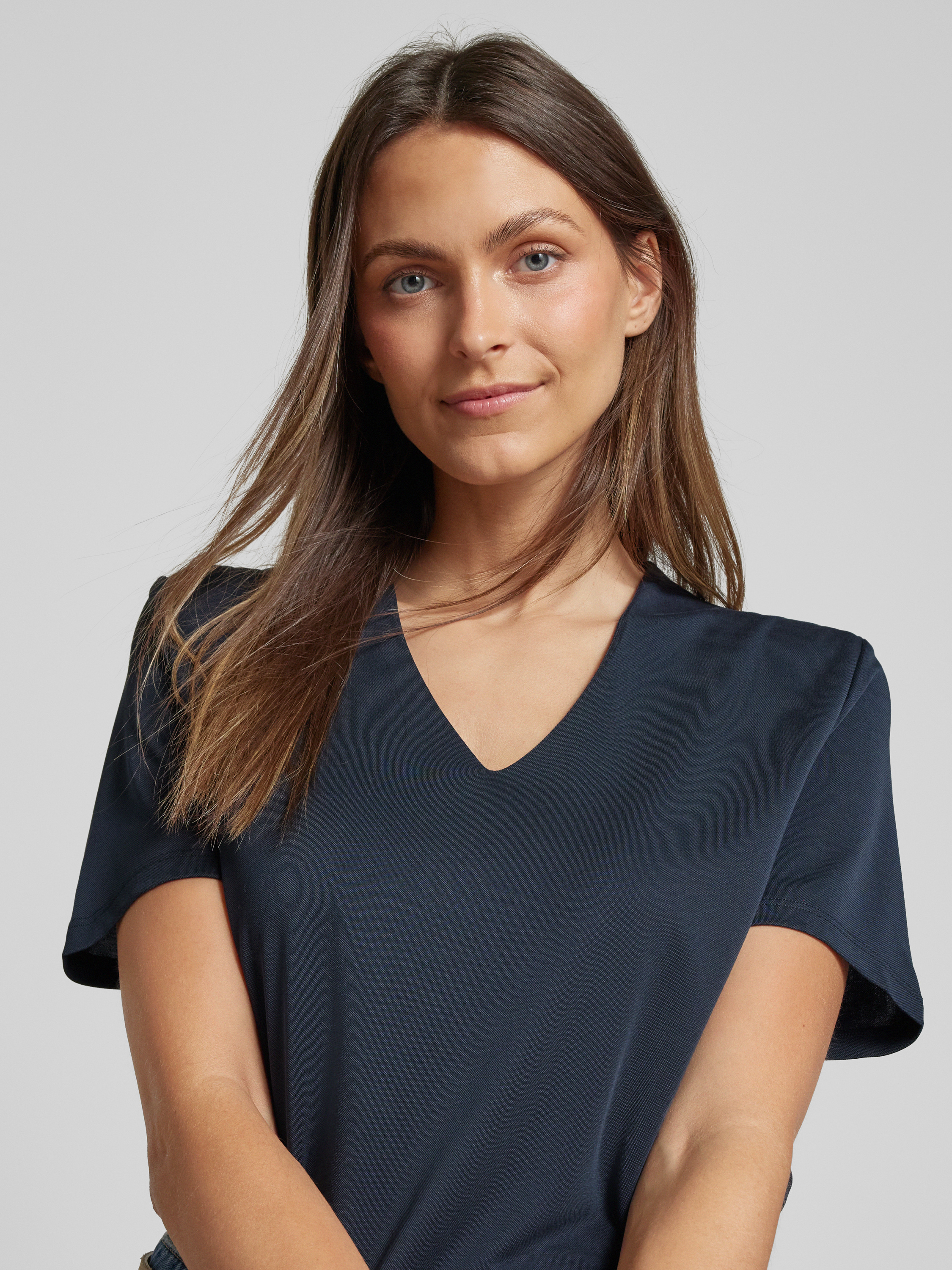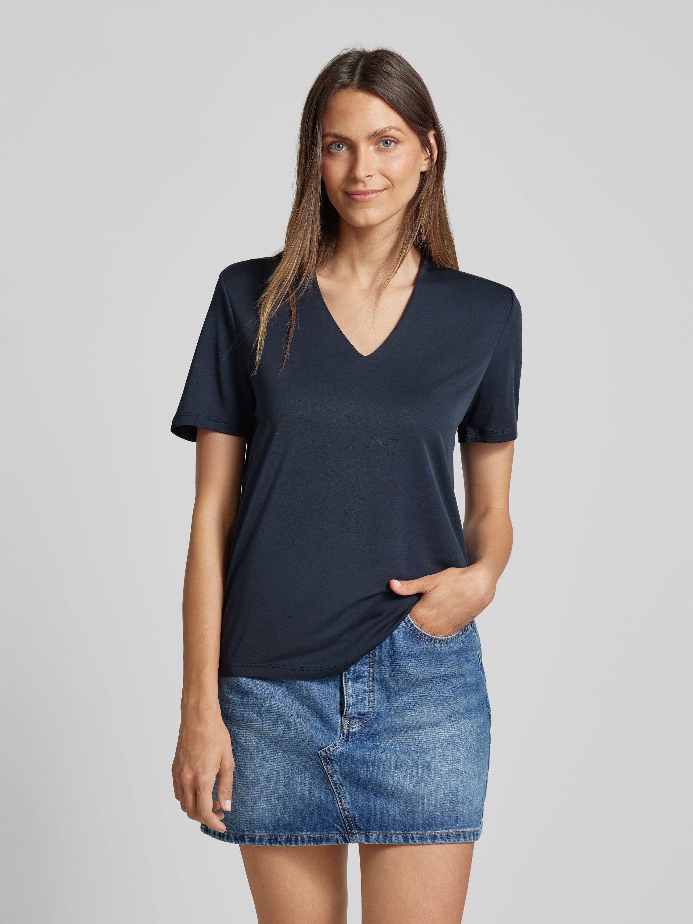 T-shirt z dekoltem w serek - ciemnoniebieski
