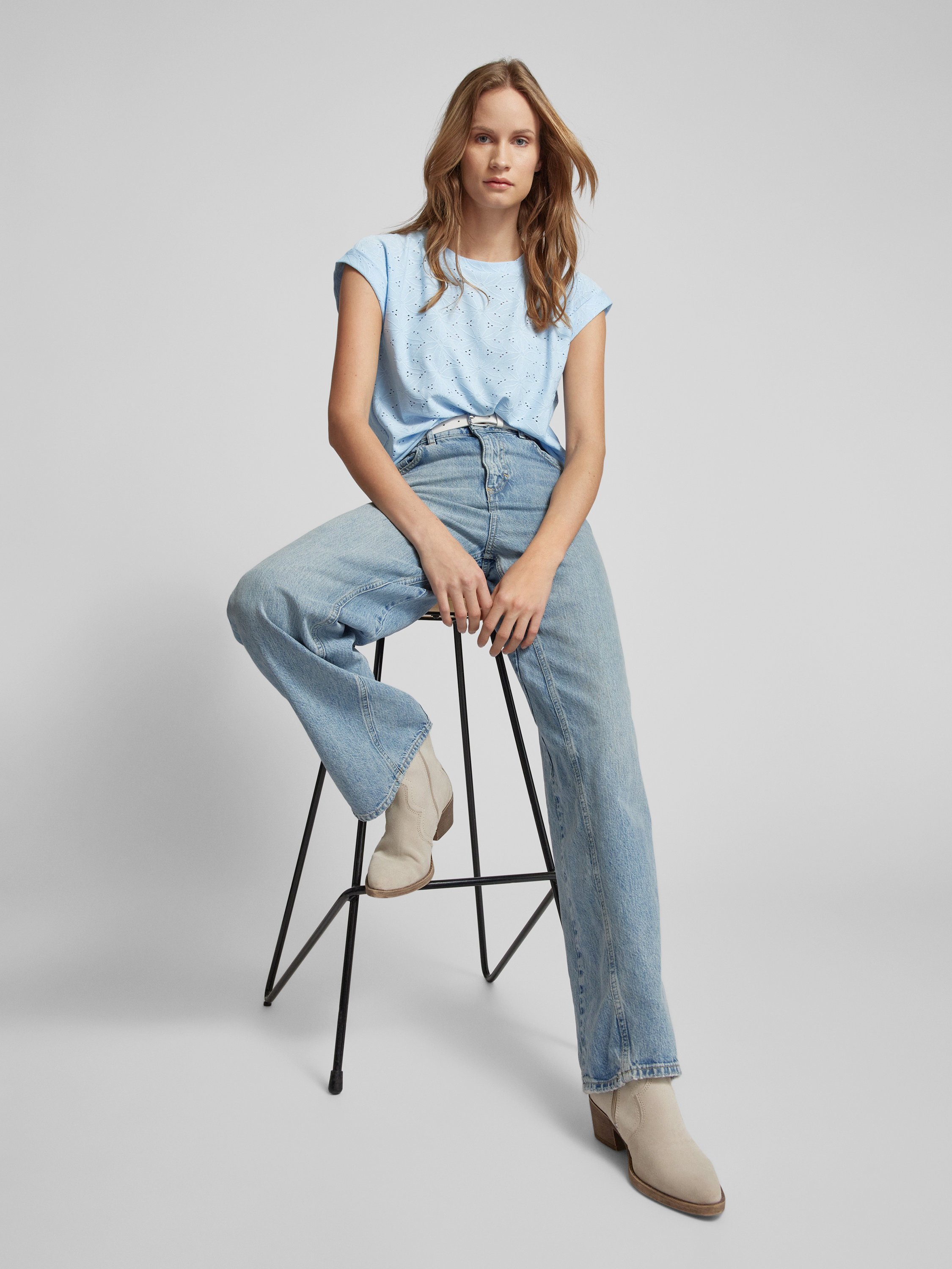 T-shirt z haftem angielskim model ‘Blond’ - jasnoniebieski