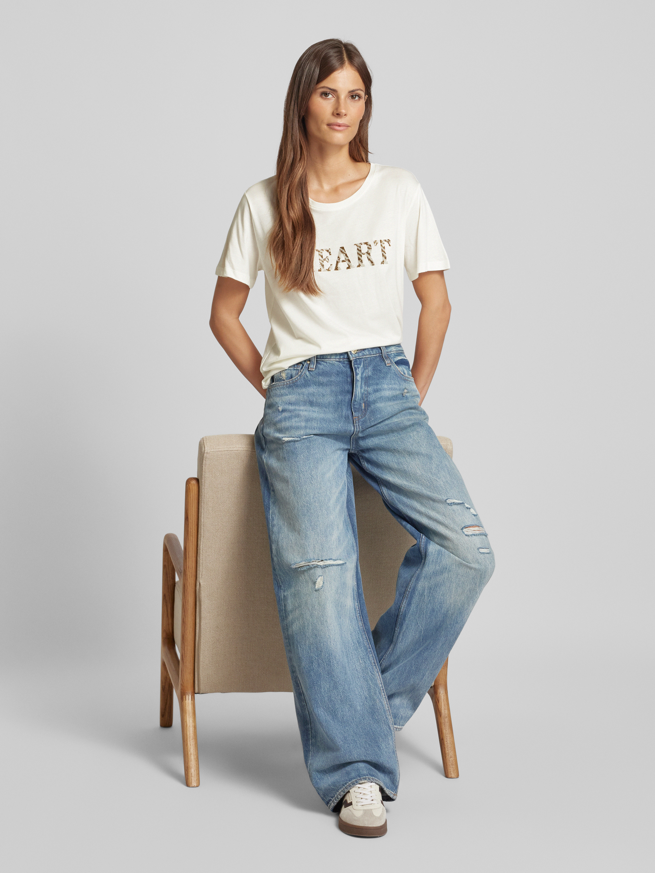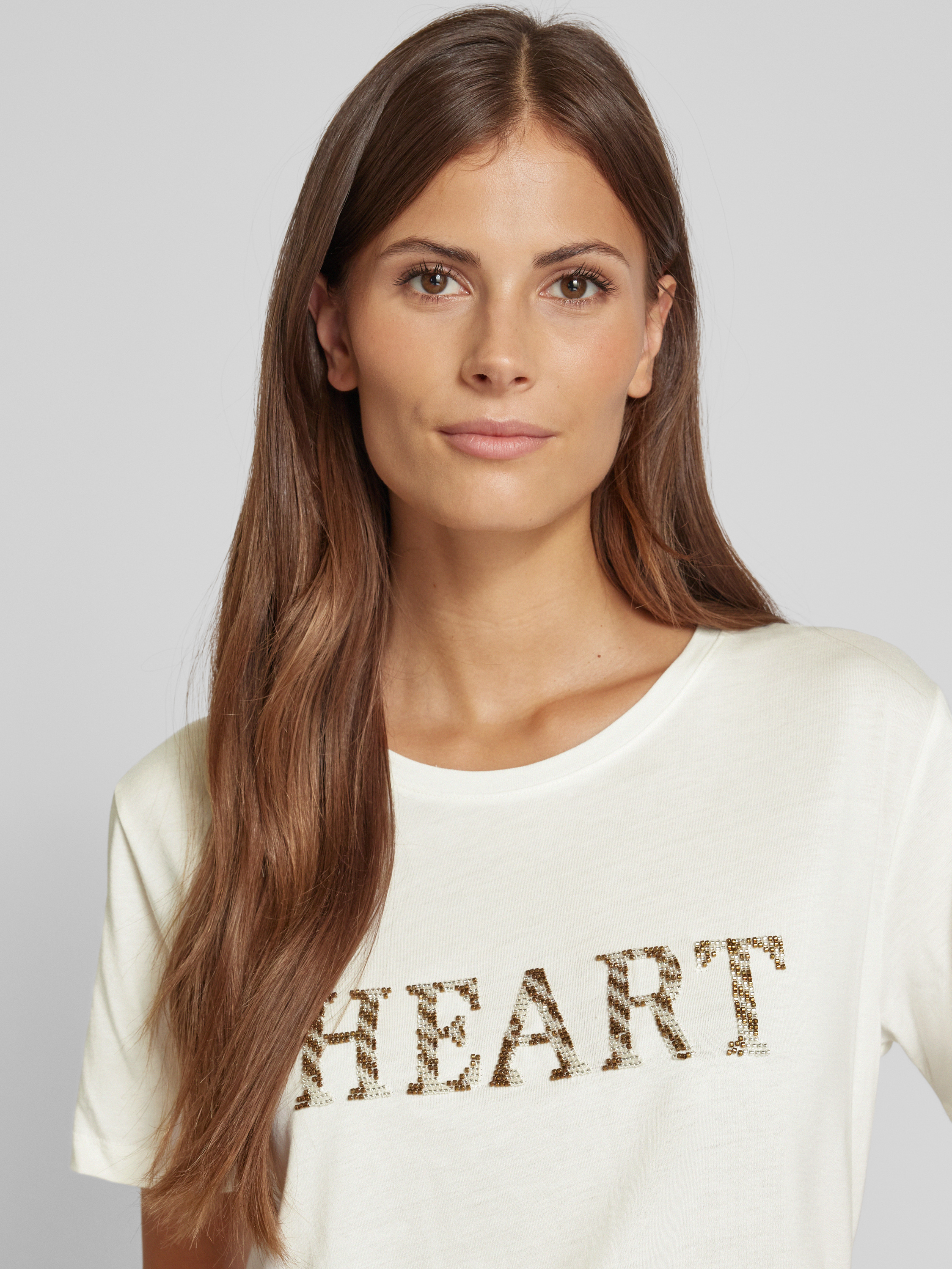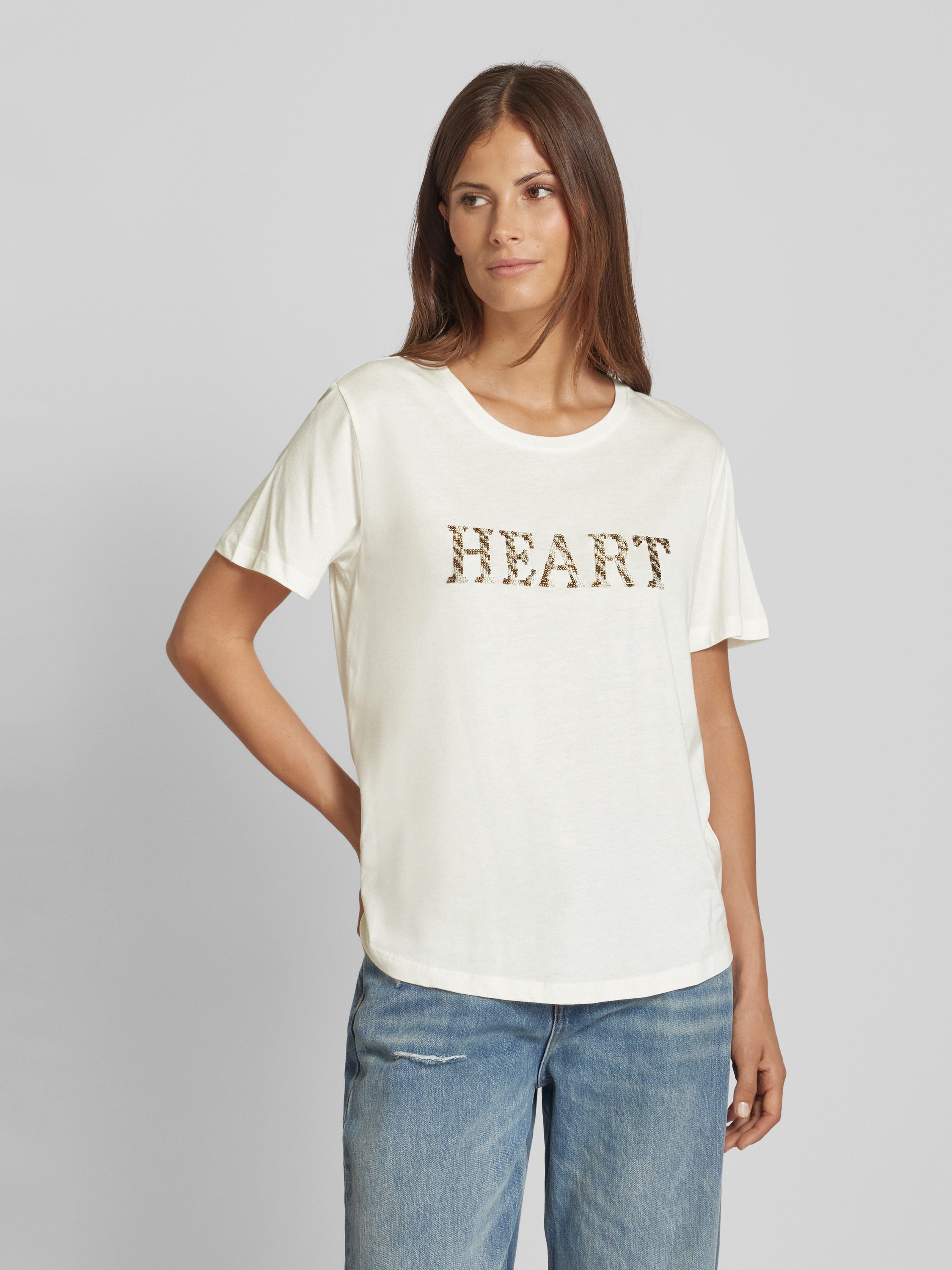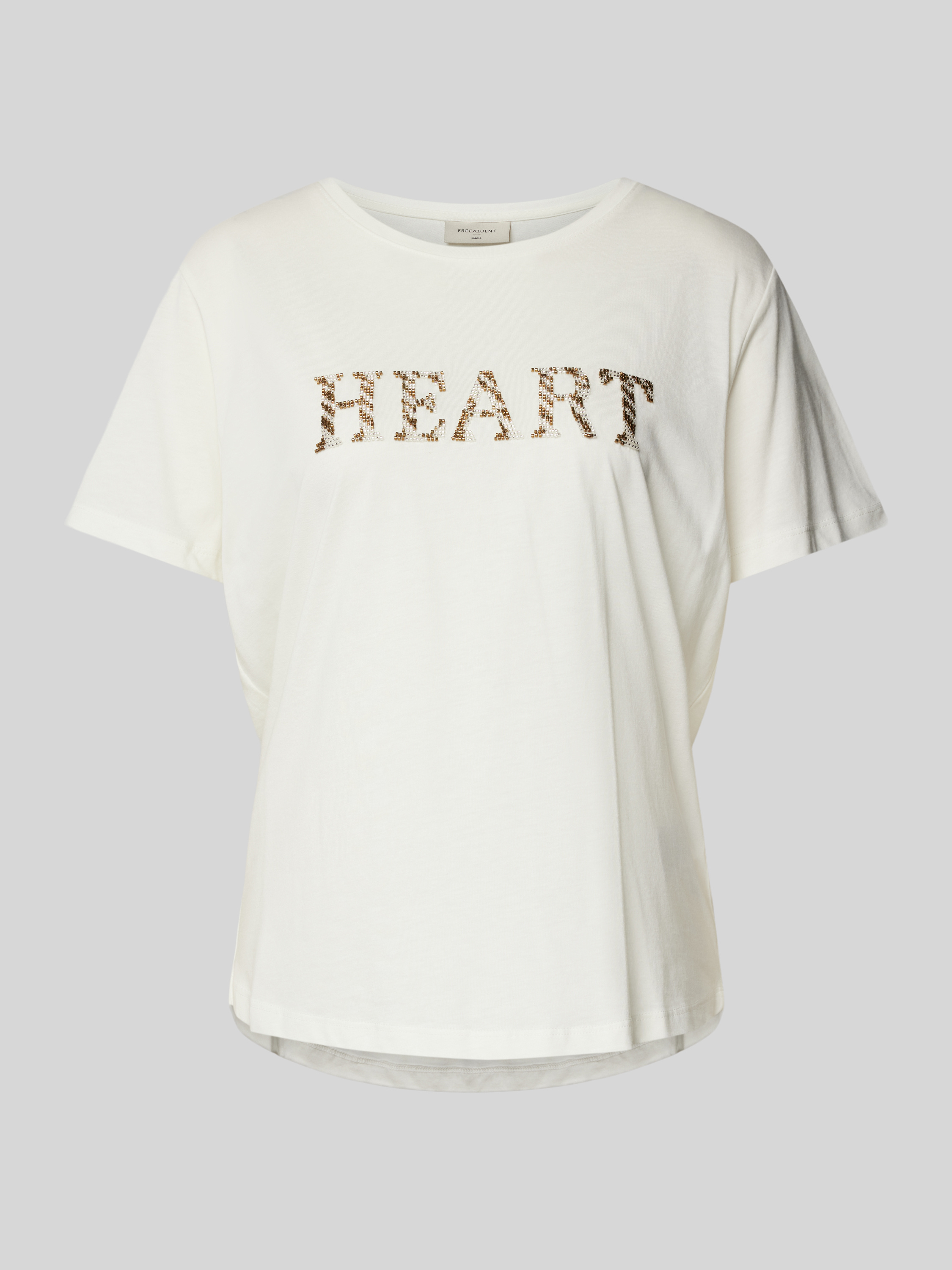 T-shirt z obszyciem perełkami model ‘FQGaya’ - écru